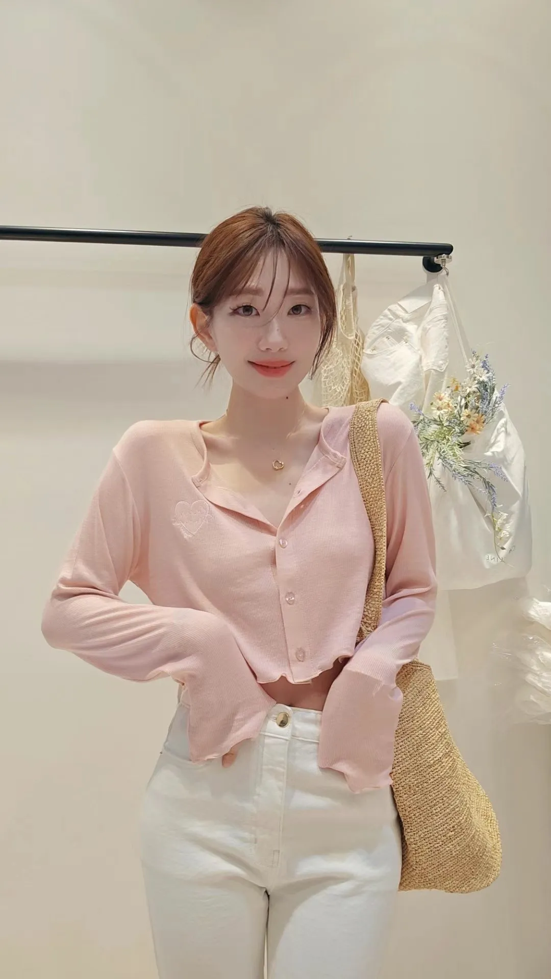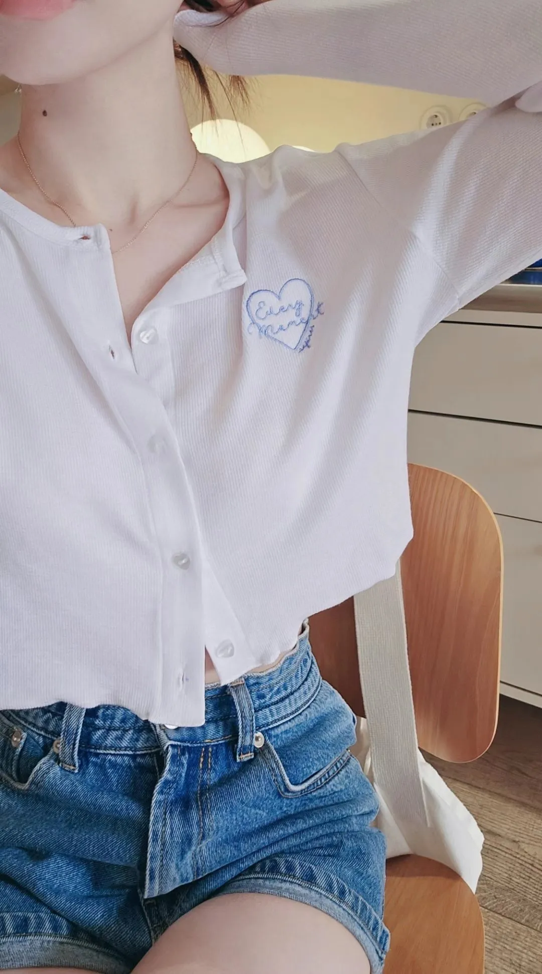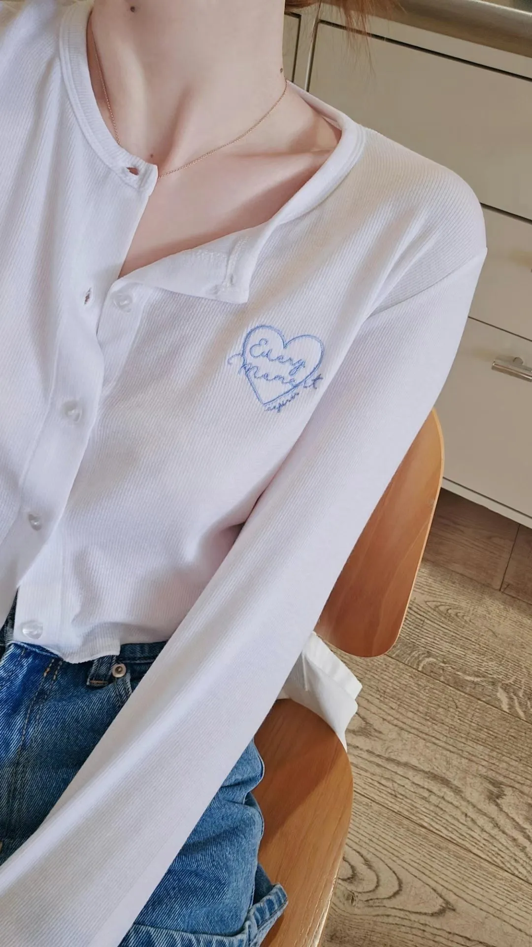 胸前有手繪愛心字母的刺繡設計,愛心型釦子