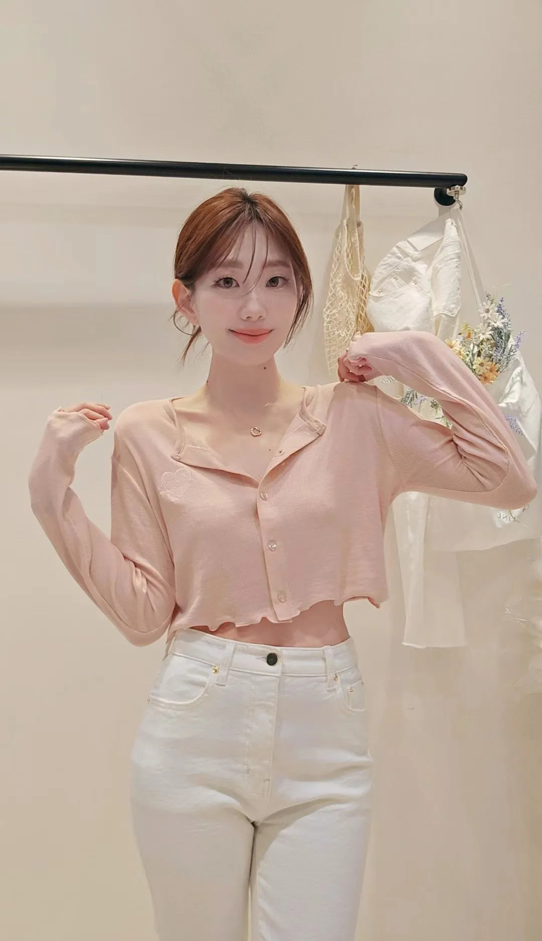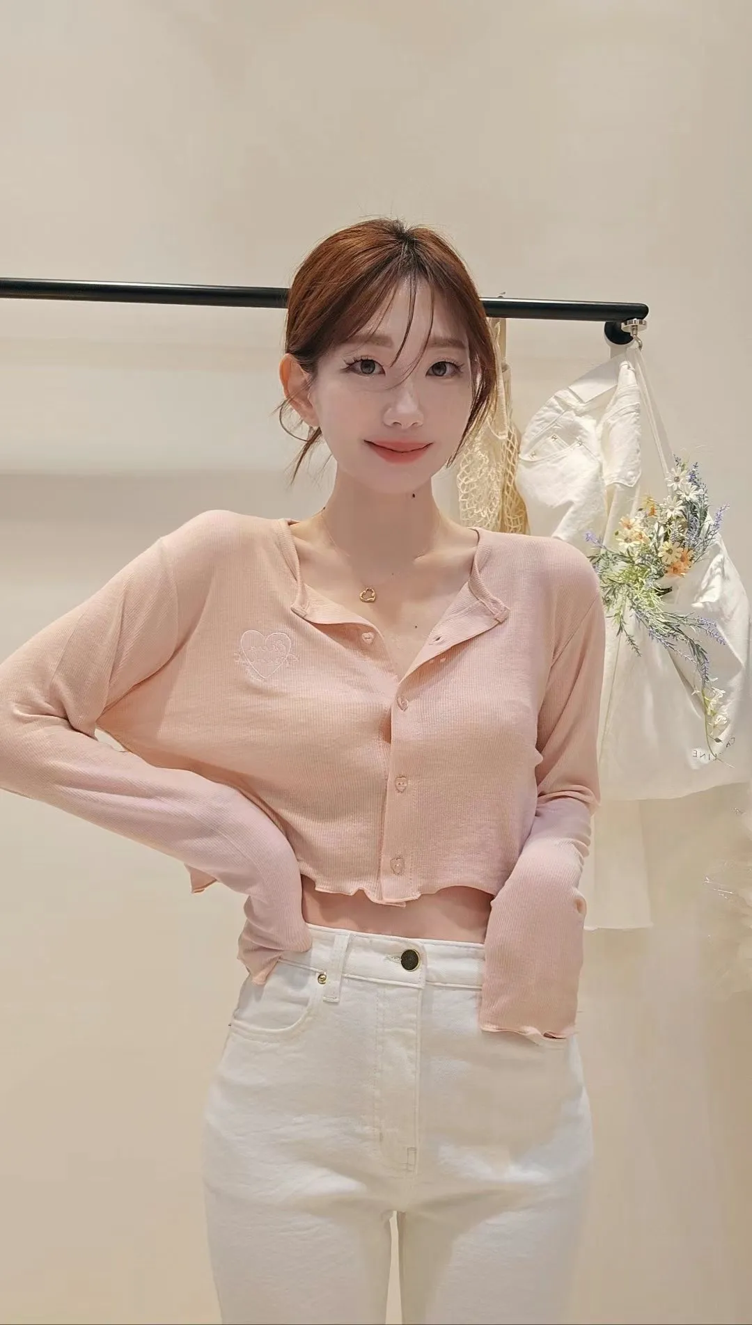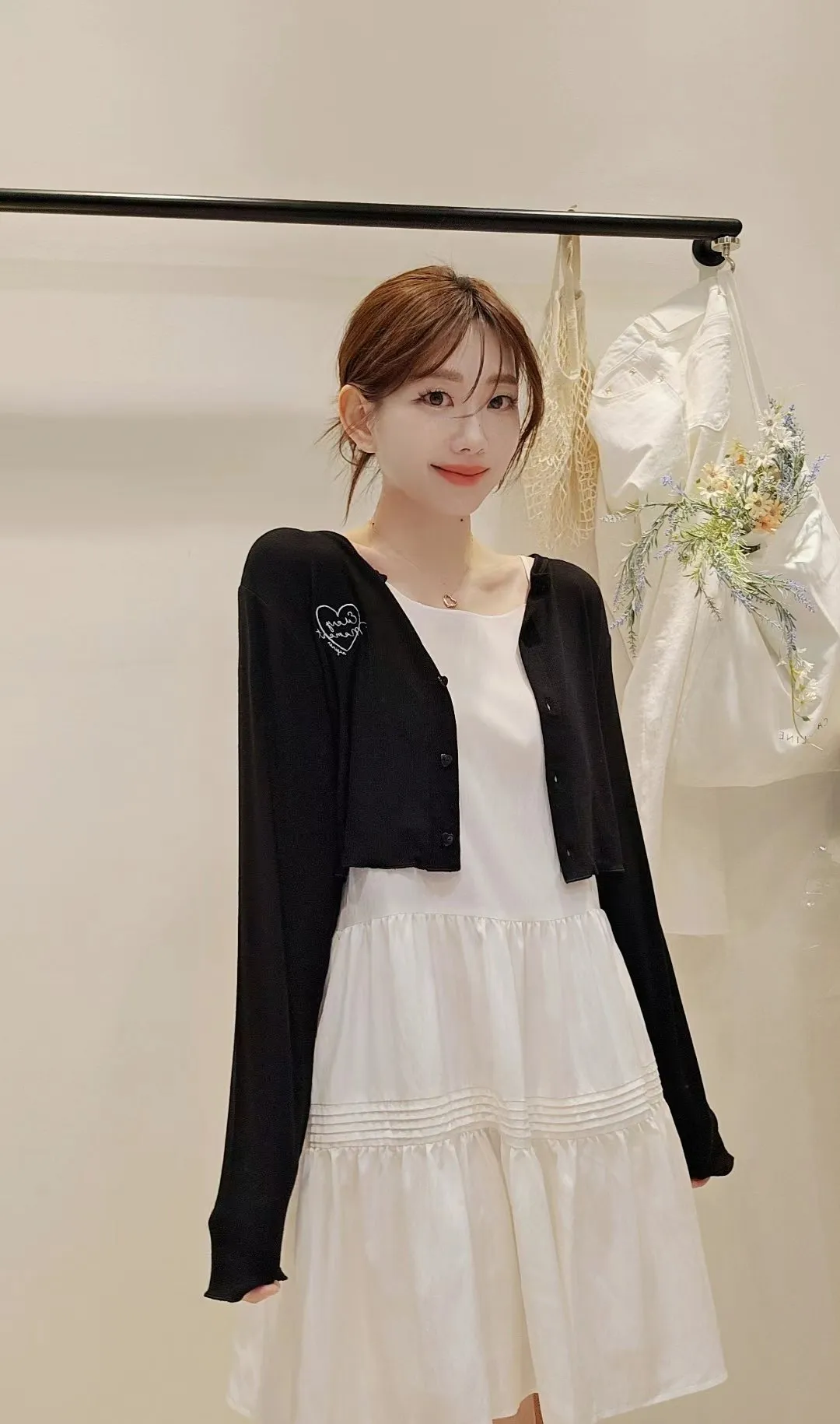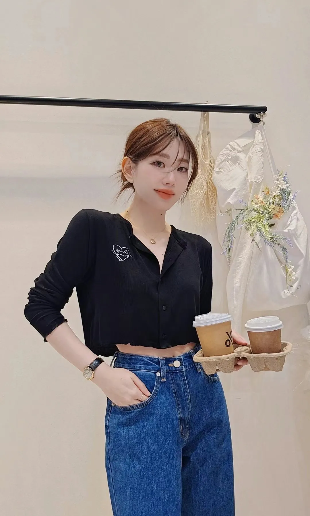 胸前有手繪愛心字母的刺繡設計,愛心型釦子