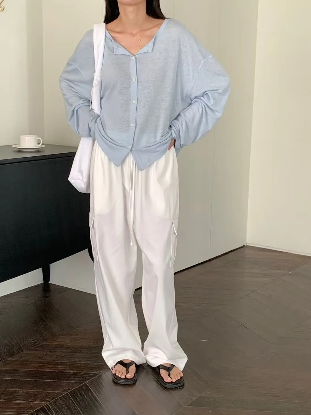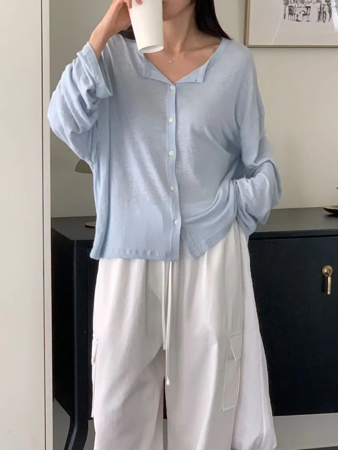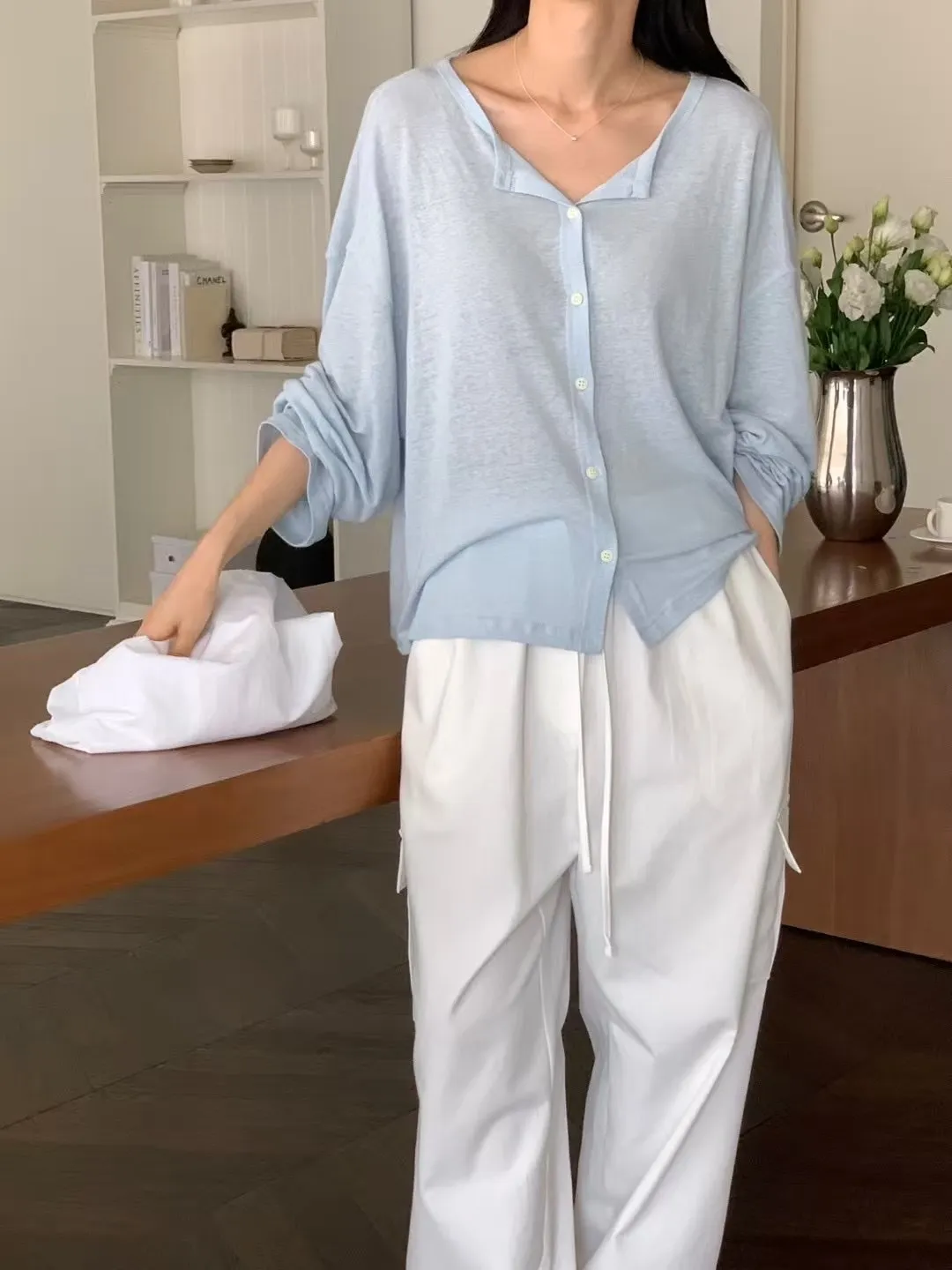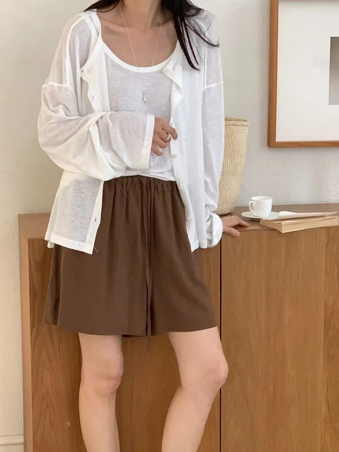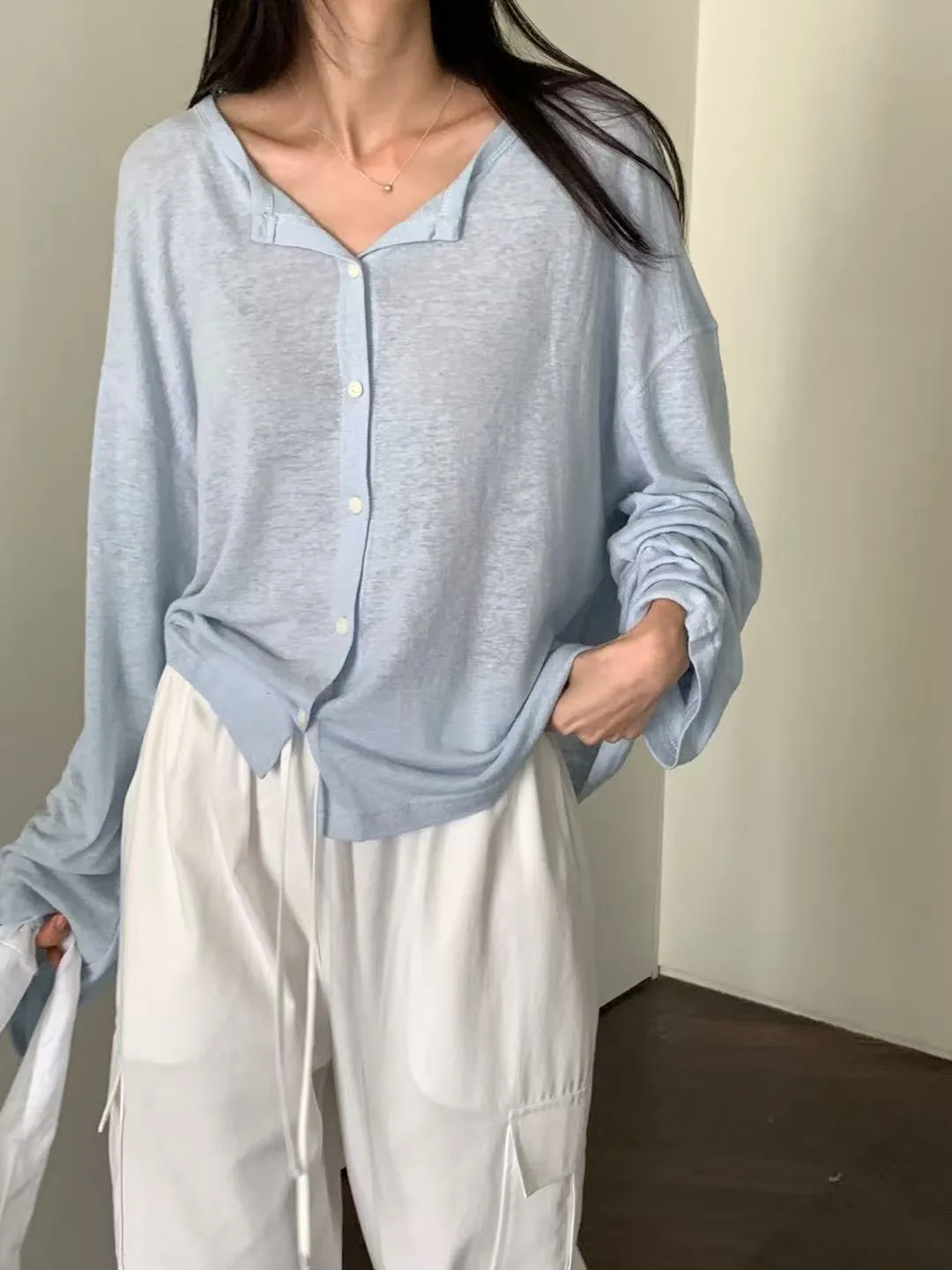 J24店長推薦!夏日防曬小釦開襟亞麻罩衫外套