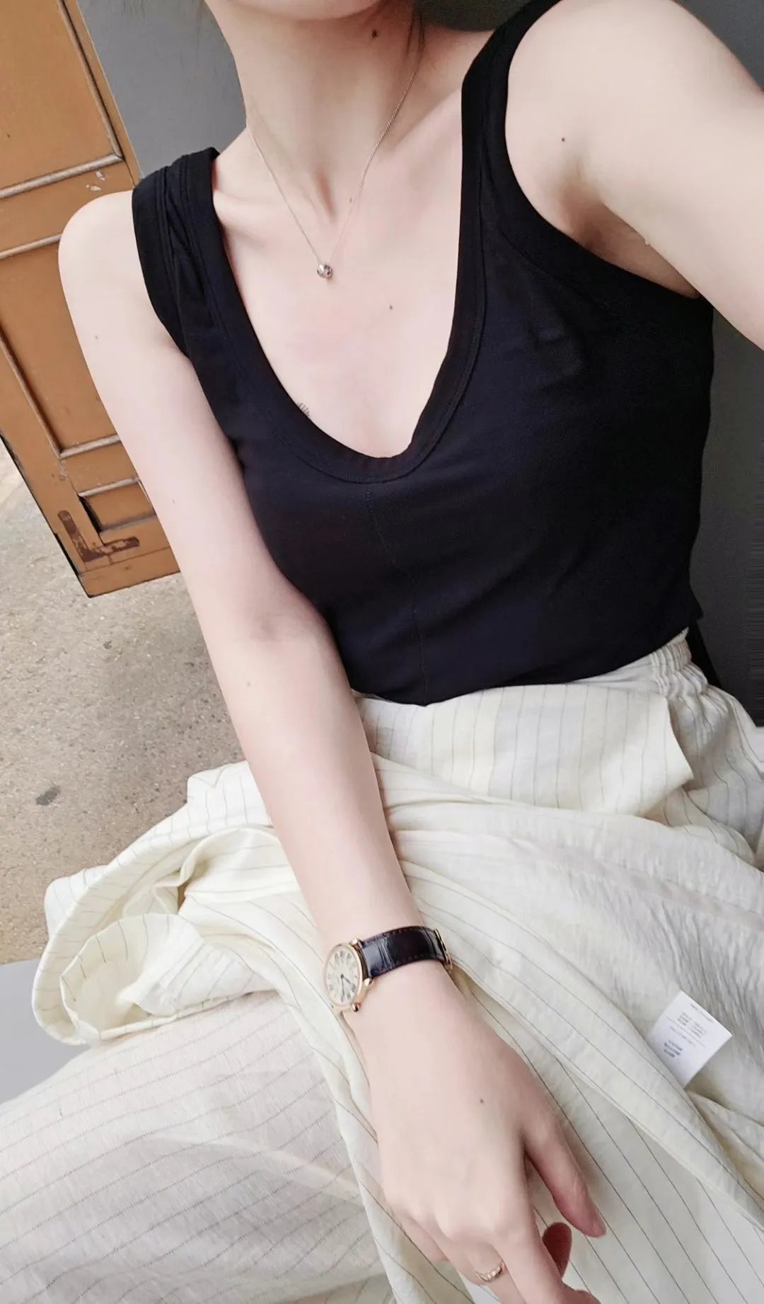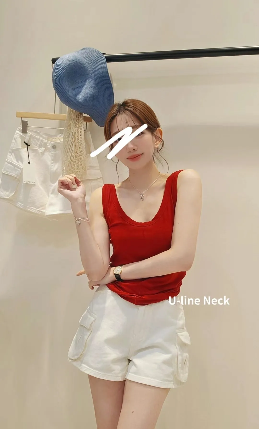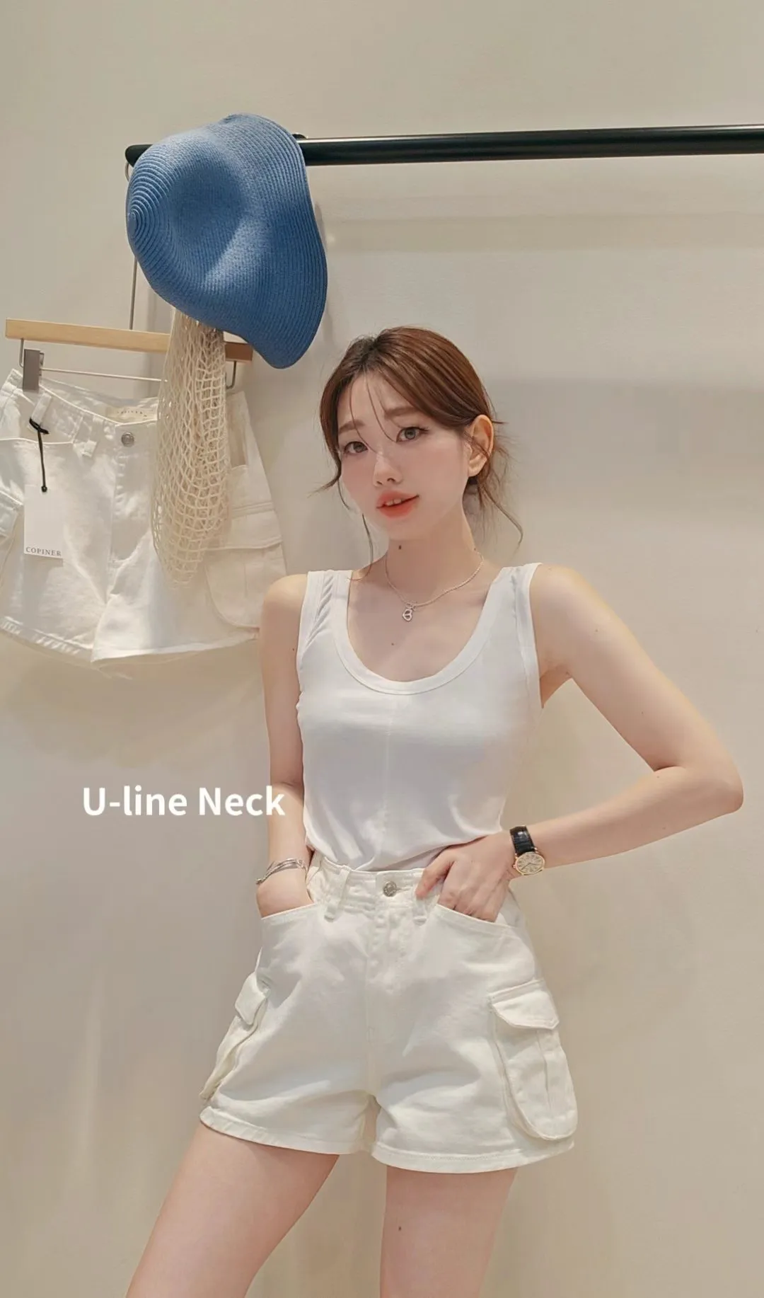 方領+U領的雙面穿背心,兩面中間都有裝飾車線