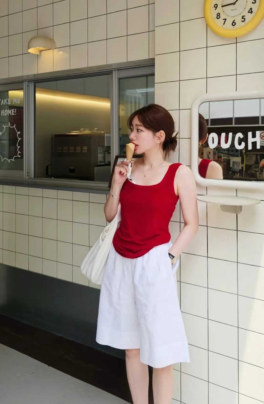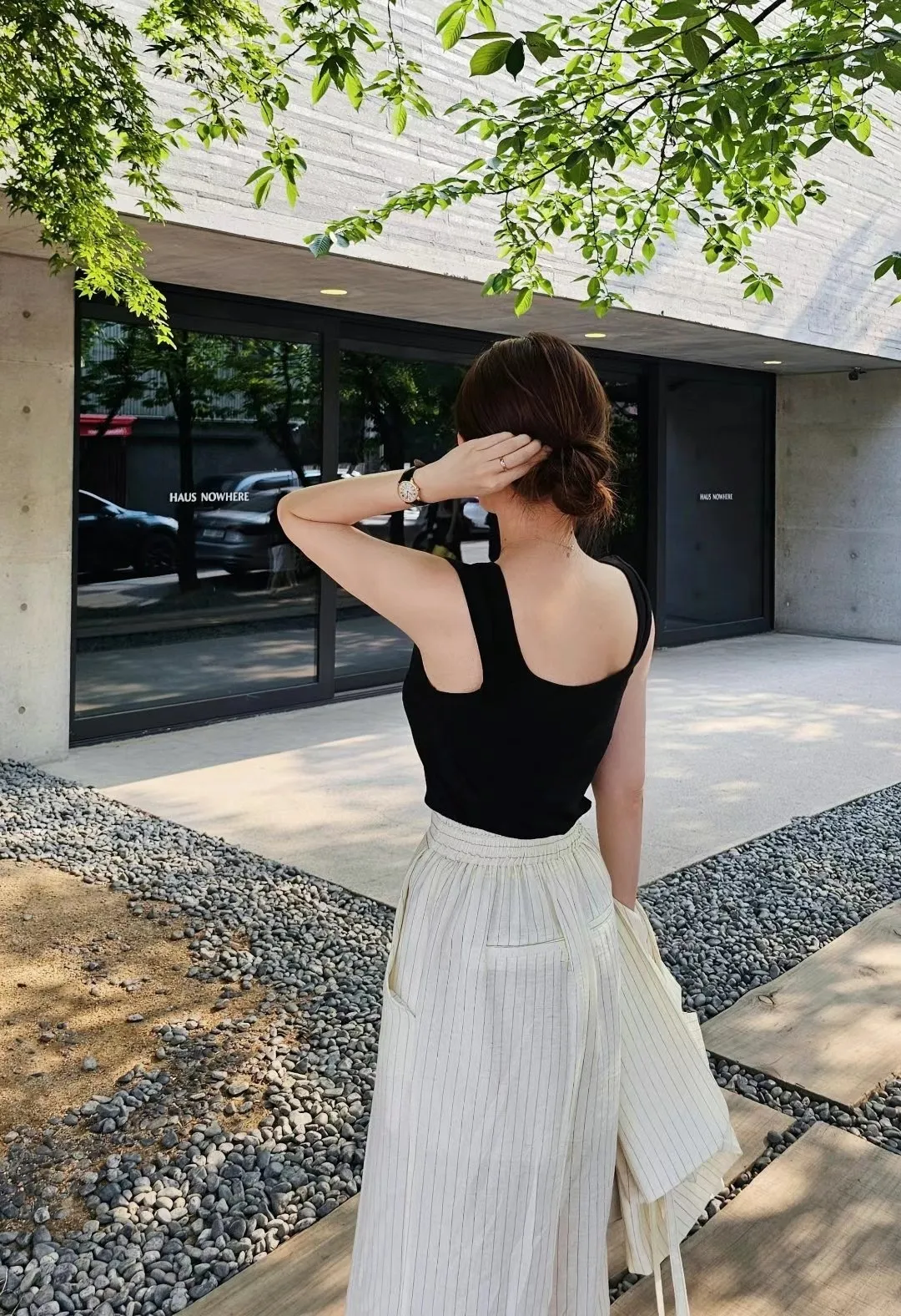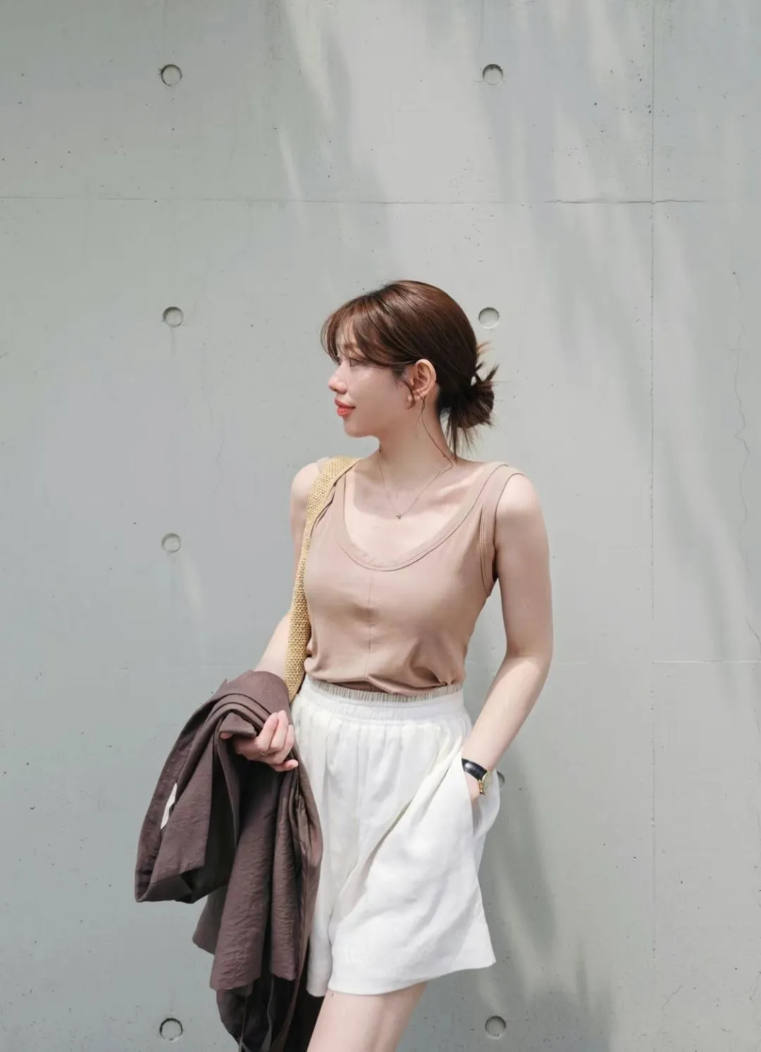 方領+U領的雙面穿背心,兩面中間都有裝飾車線