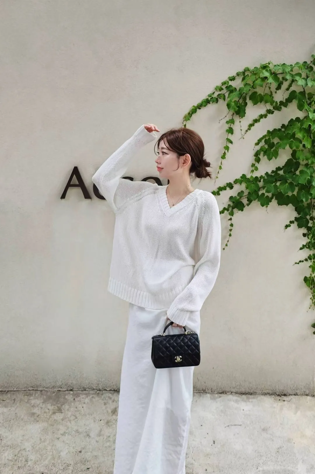 基礎經典V領針織衫版型,隨性慵懶鬆弛感滿滿