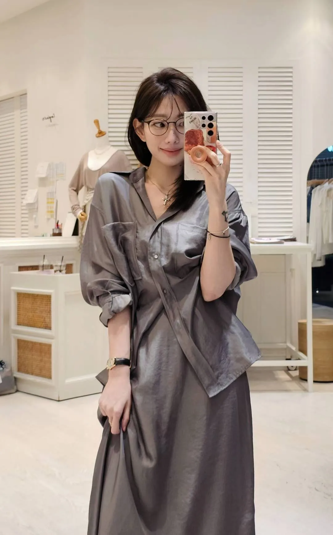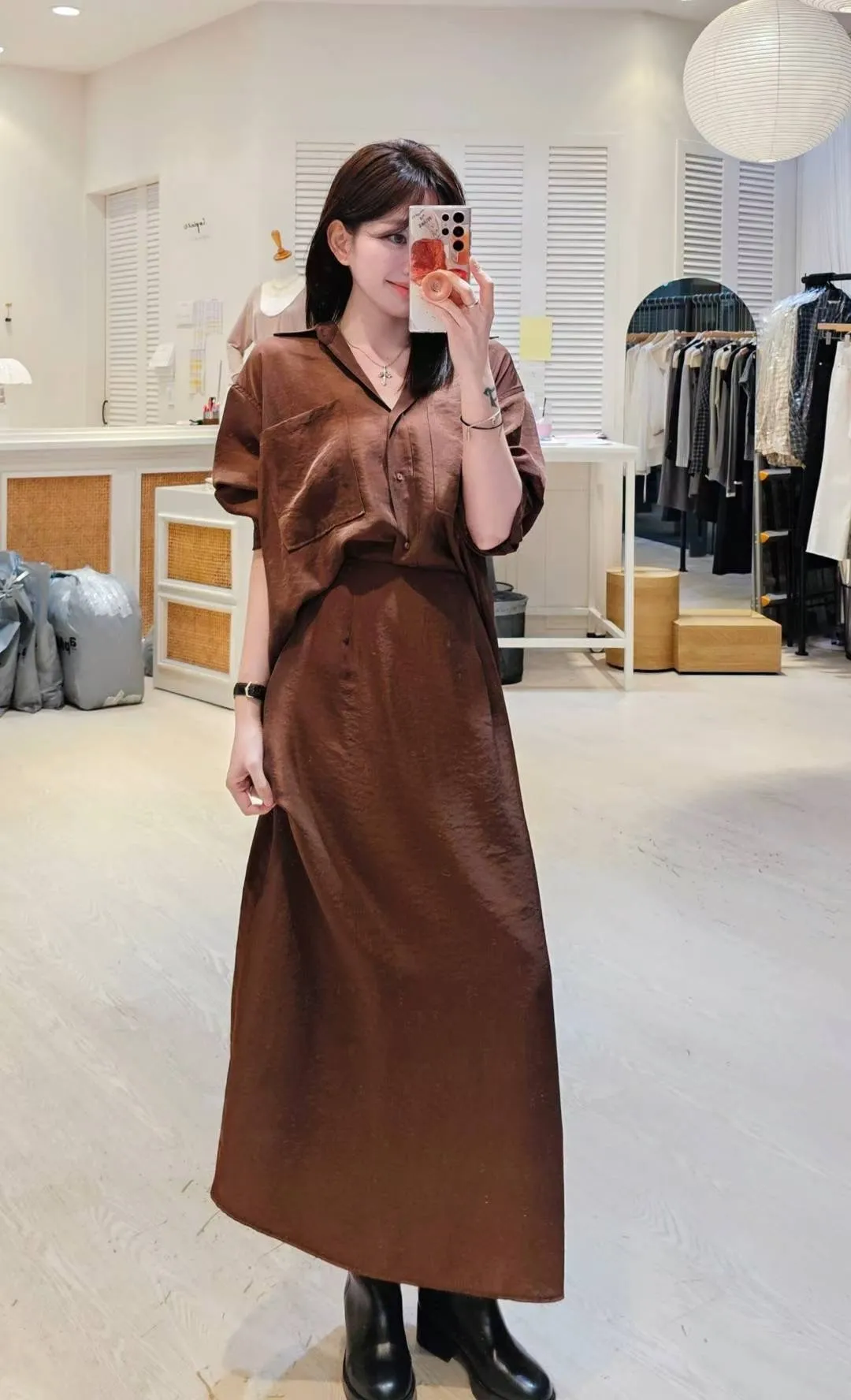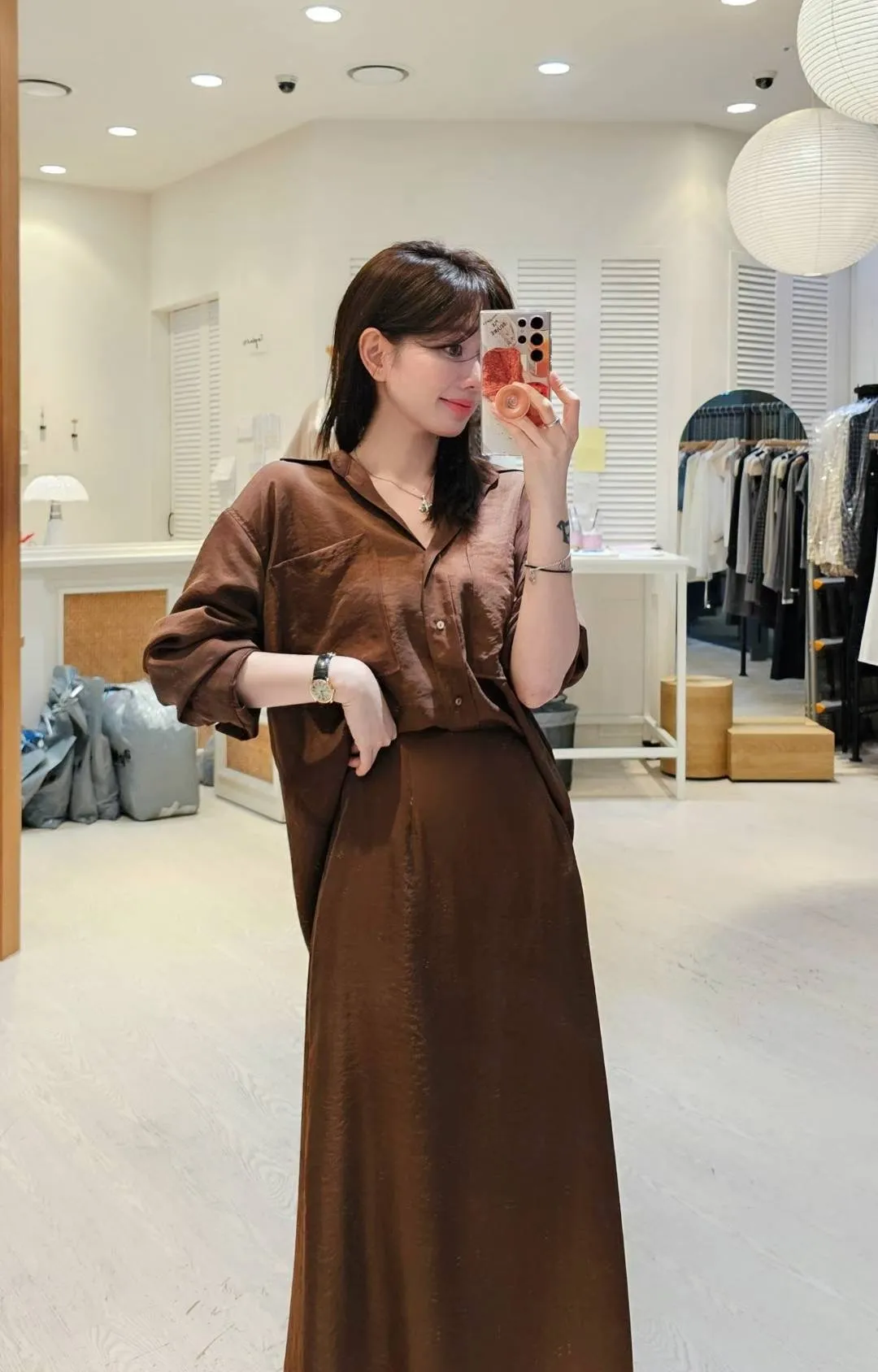 爆款的緞面長裙出同布料襯衫了,廢土系高級時髦色調🍂🍂