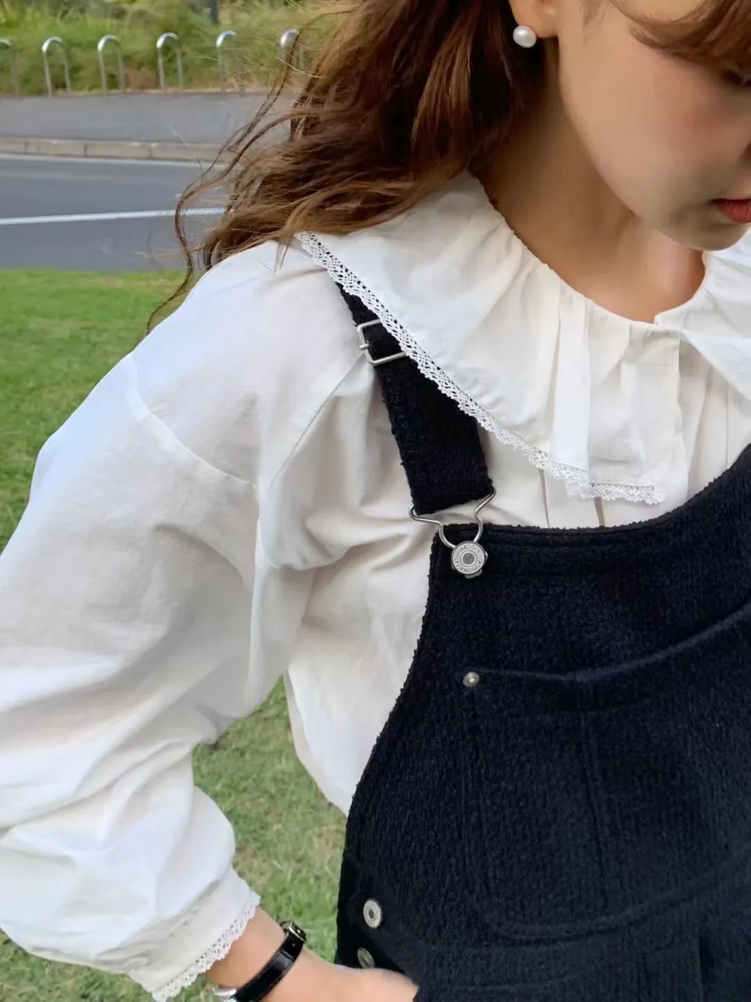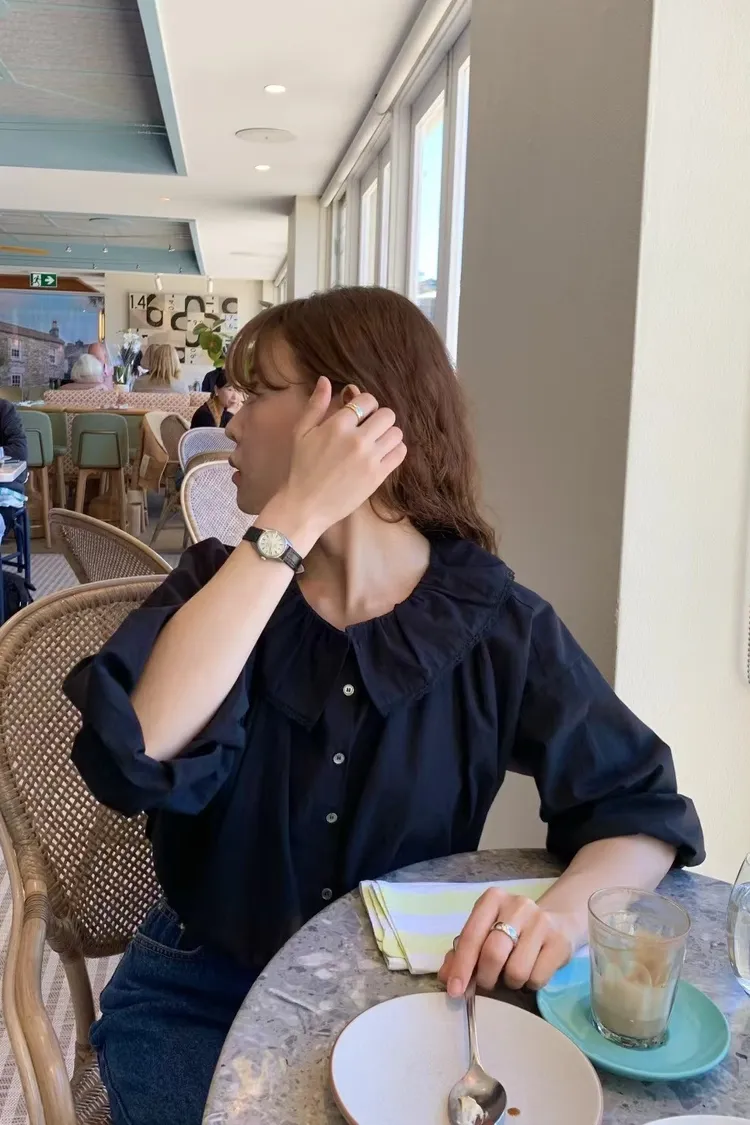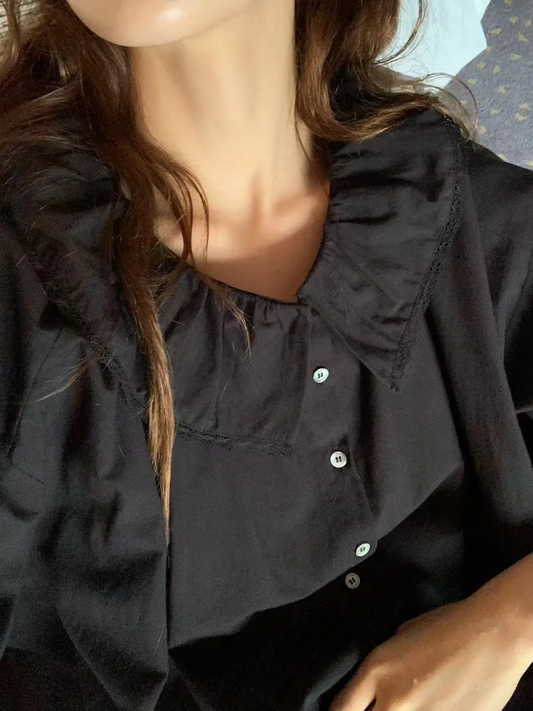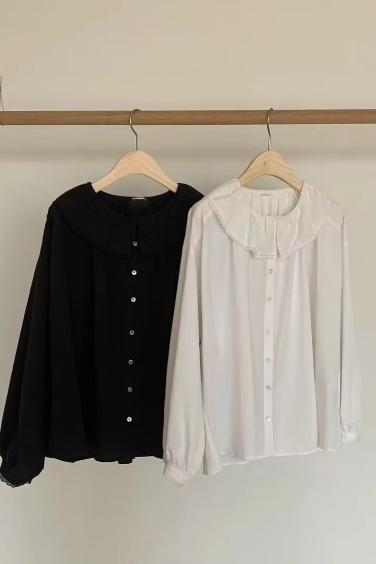 S37歐膩大推!甜美韓國小姊姊小蕾絲領片罩衫上衣