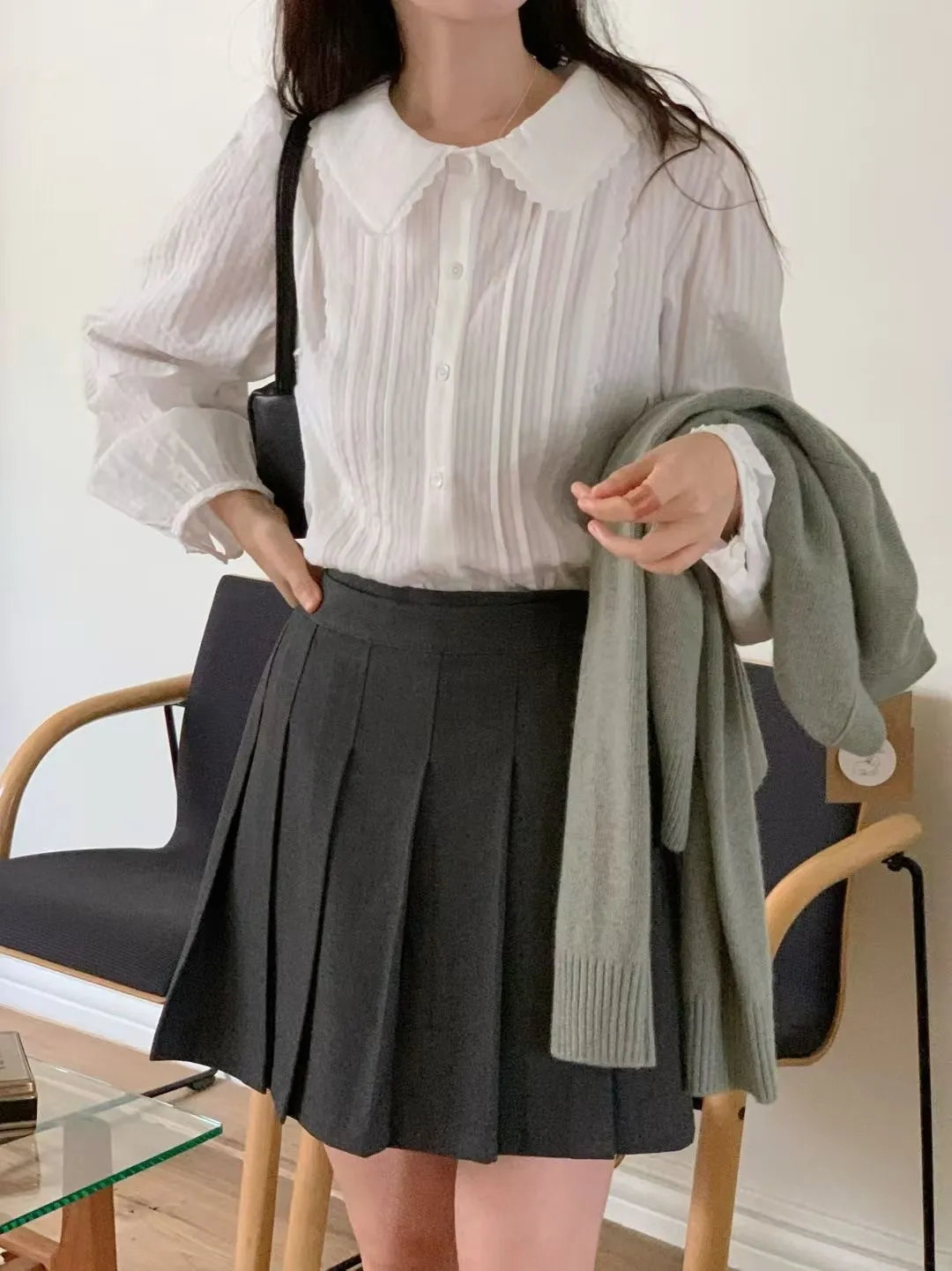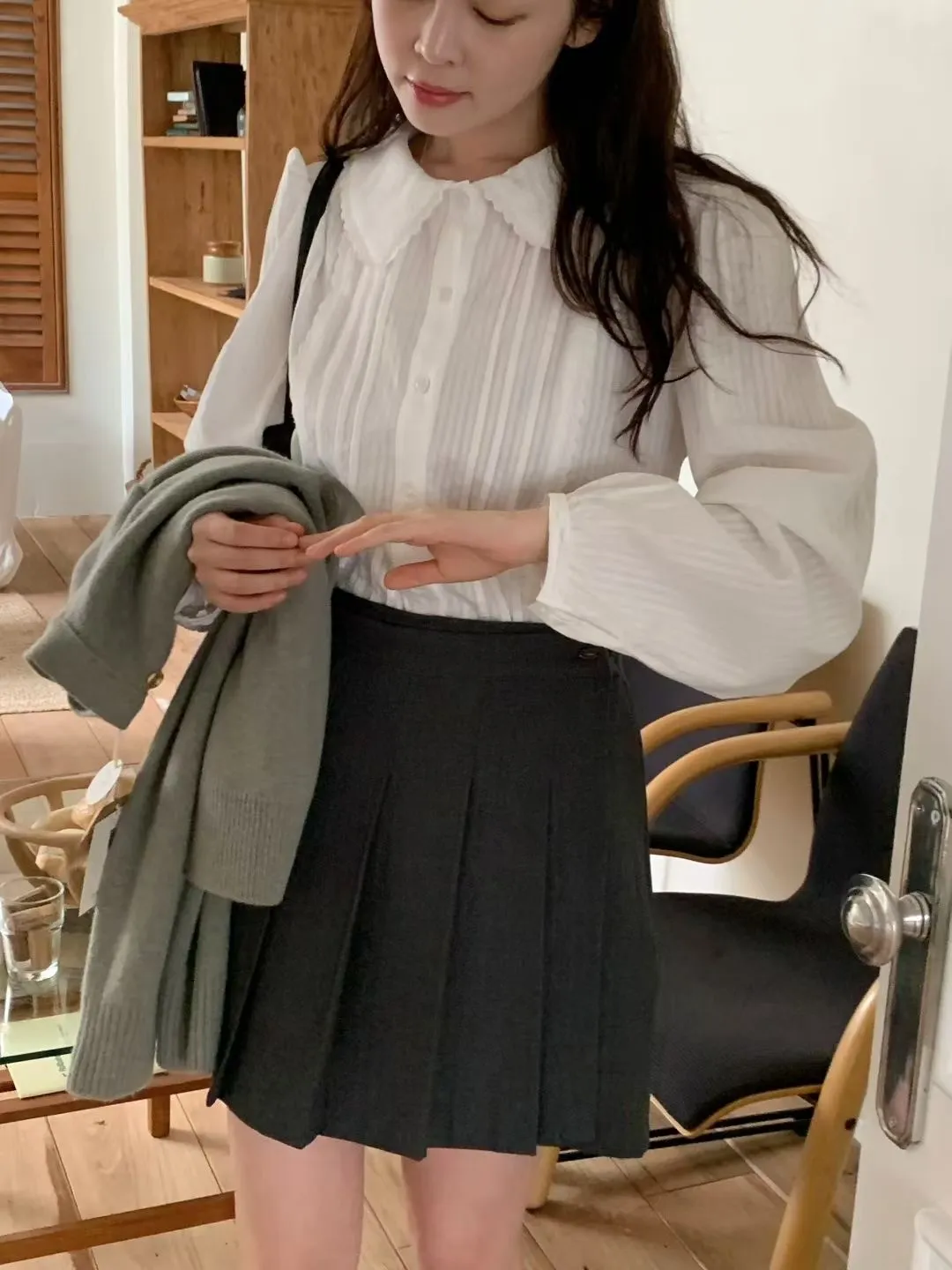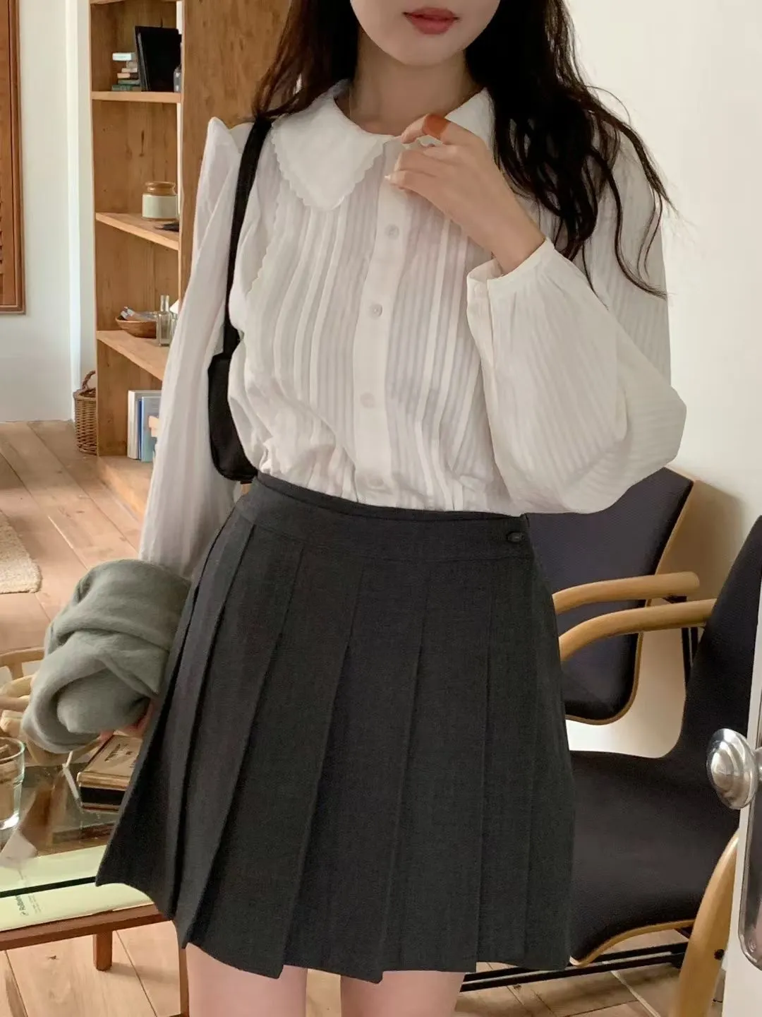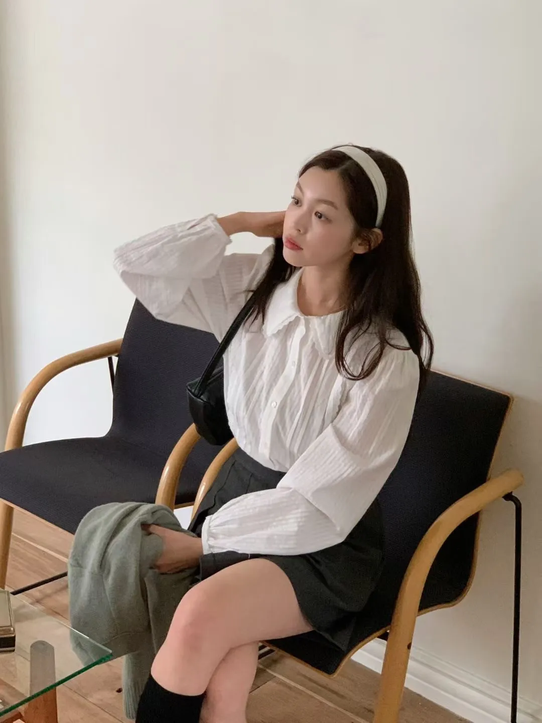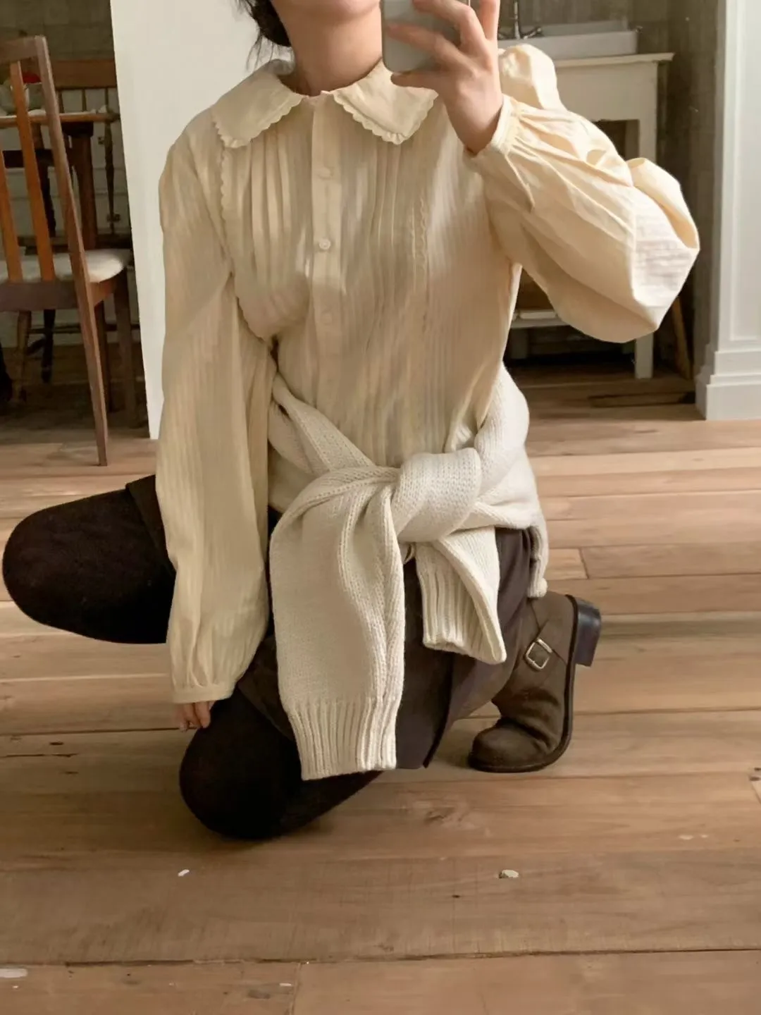 C09歐膩推薦!直條壓紋蕾絲滾邊長袖襯衫