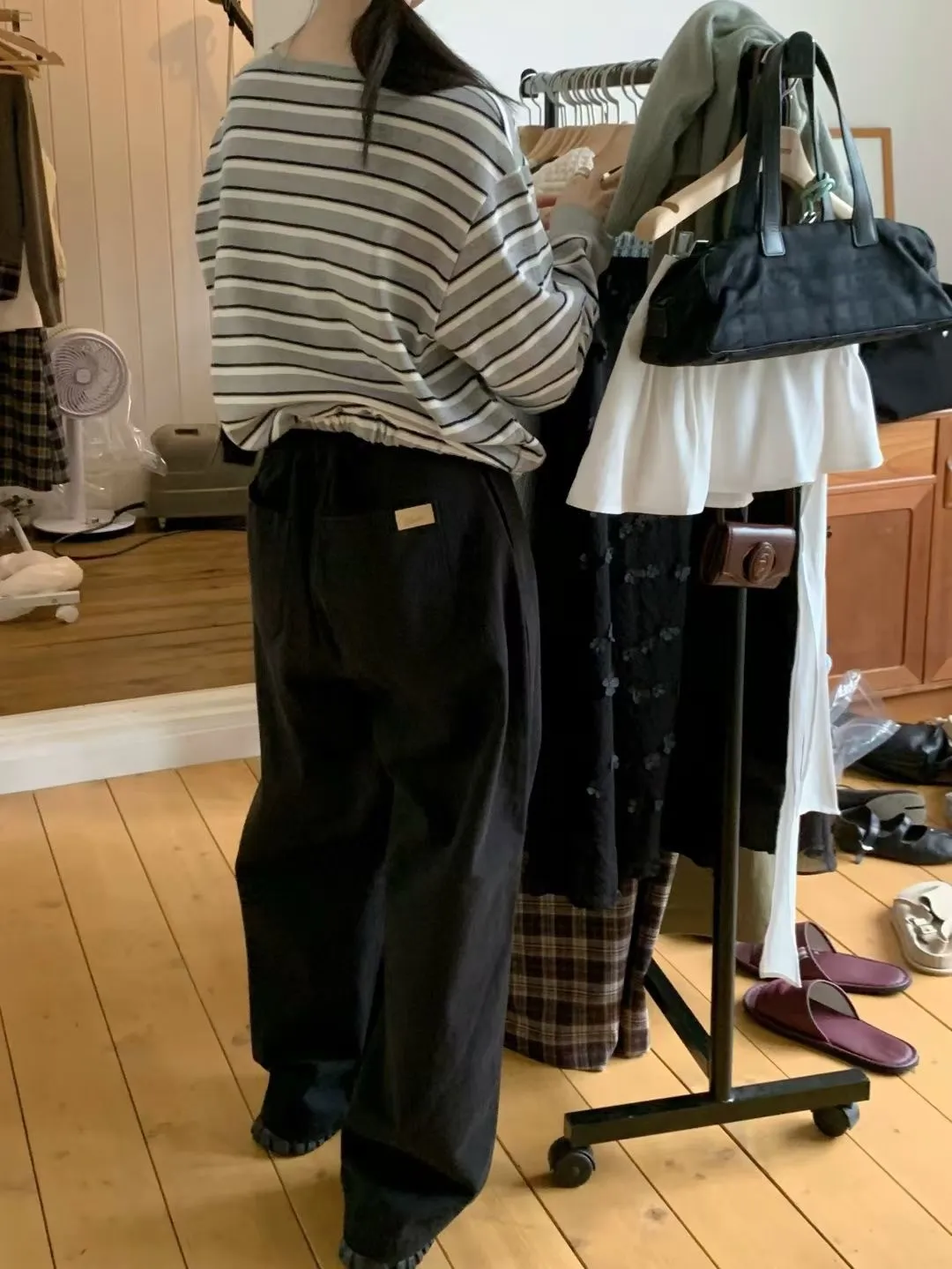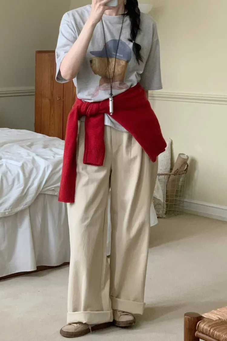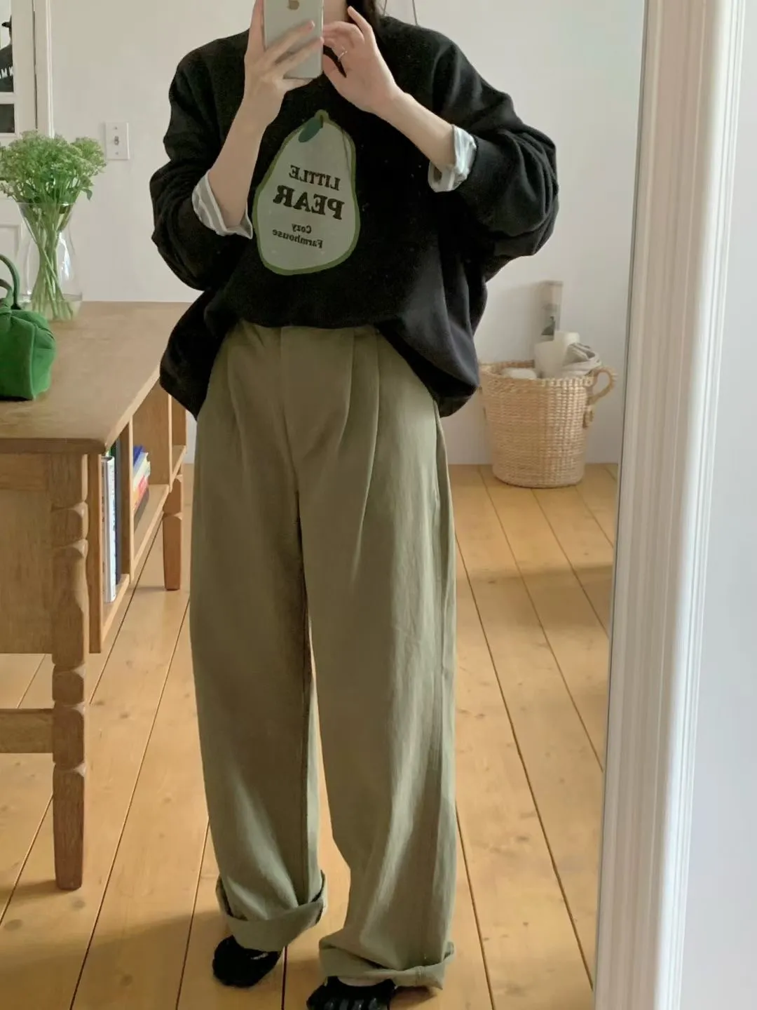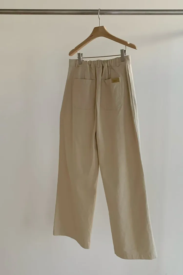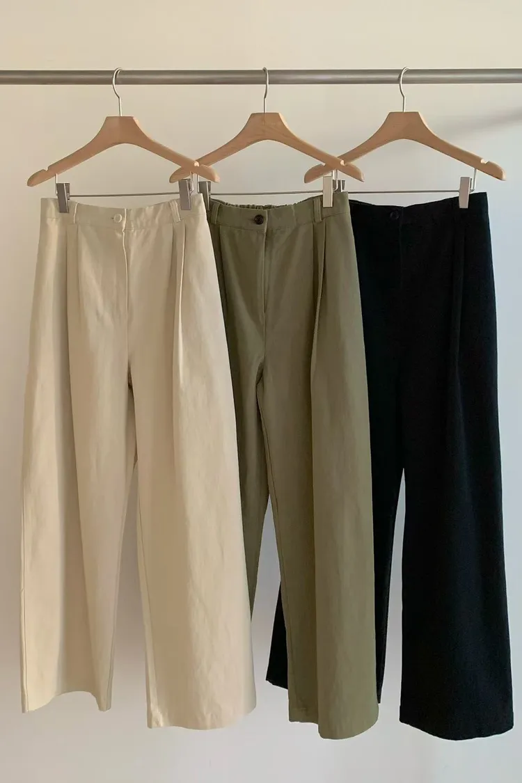 C10立體打褶後口袋設計斜紋布挺版寬褲