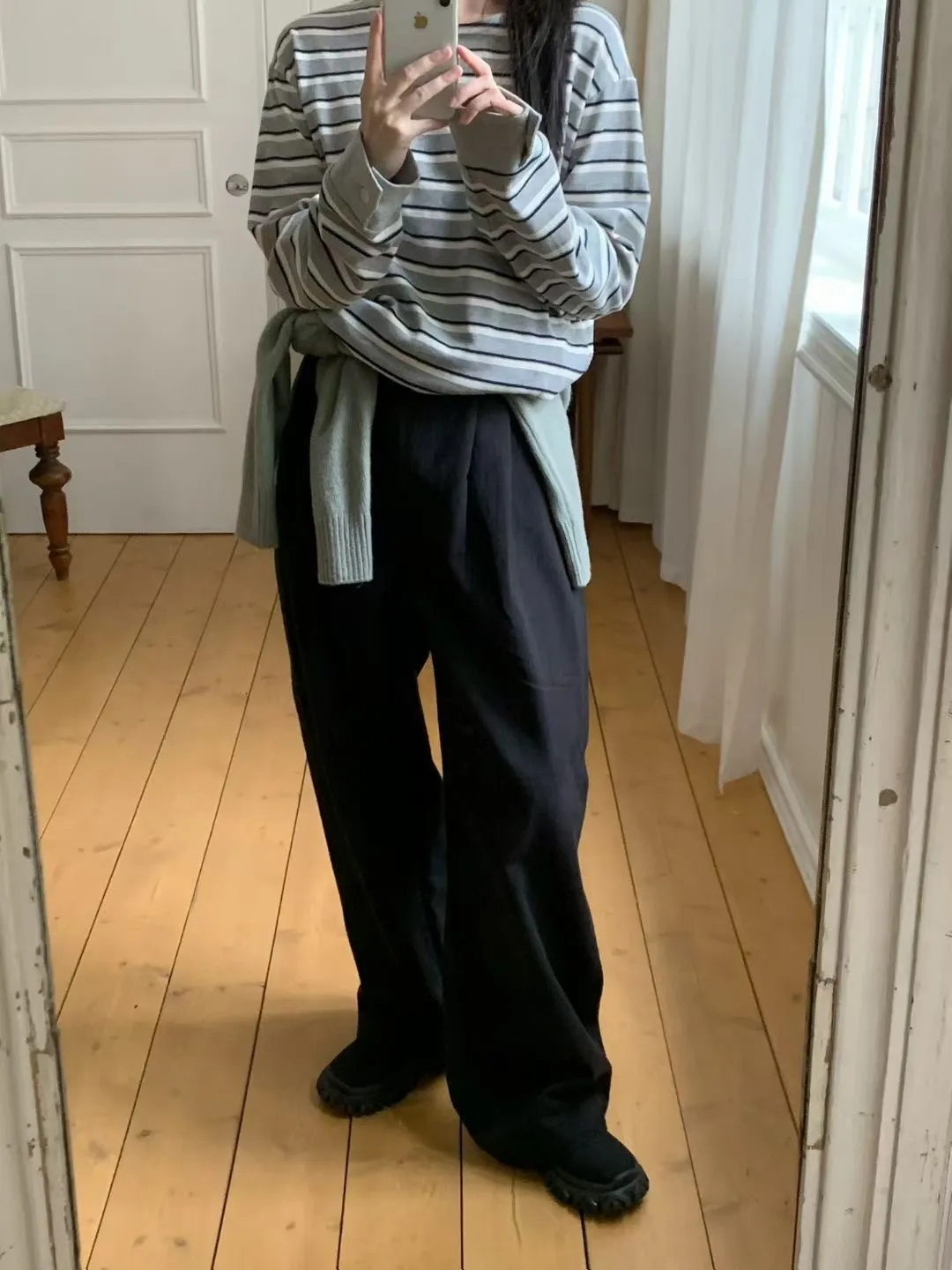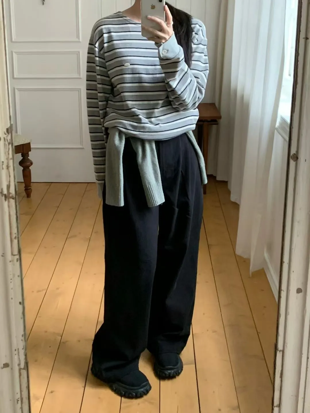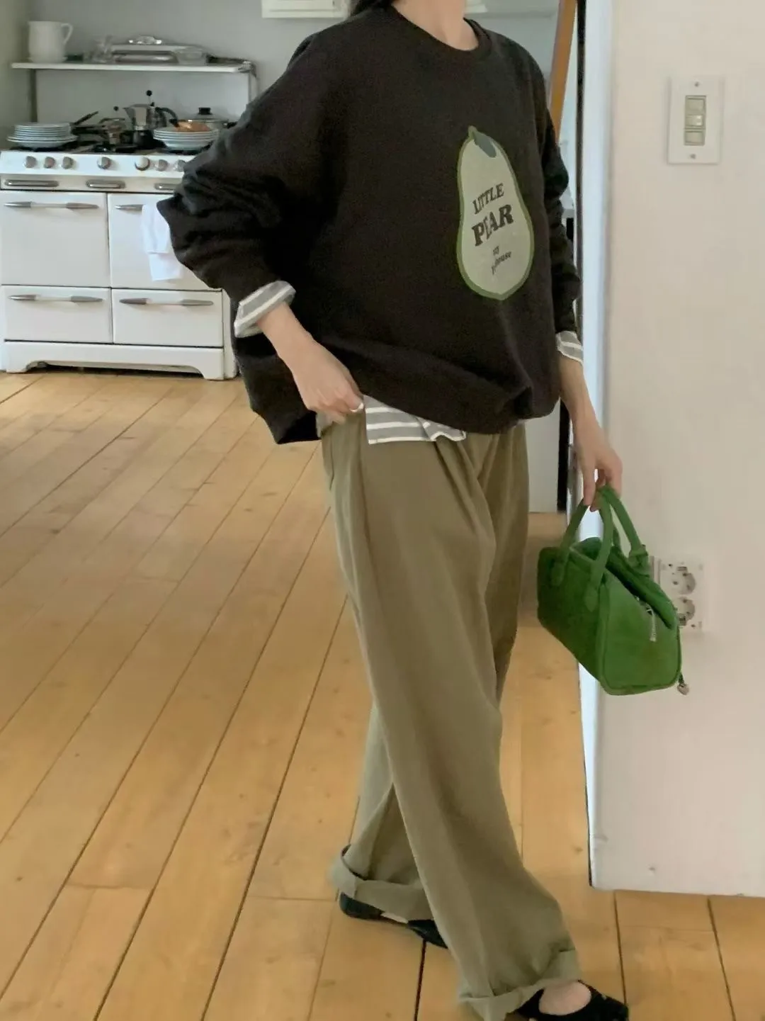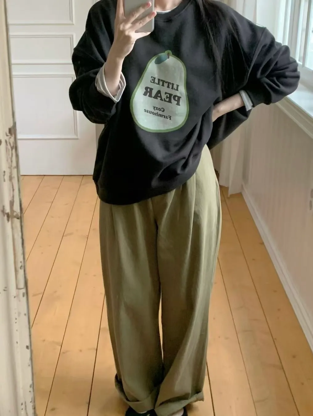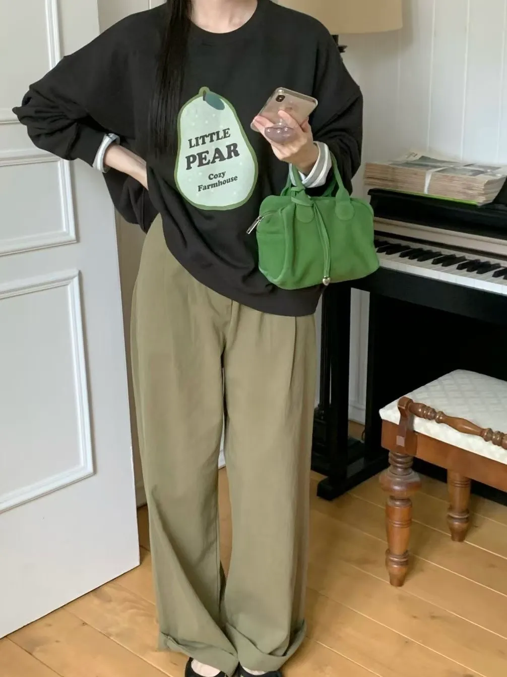 C10立體打褶後口袋設計斜紋布挺版寬褲