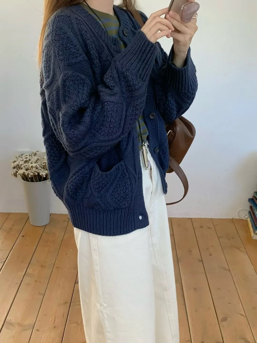 C13店長推薦!日系小口袋麻花編織羊毛外套