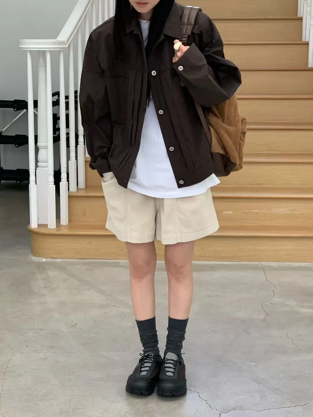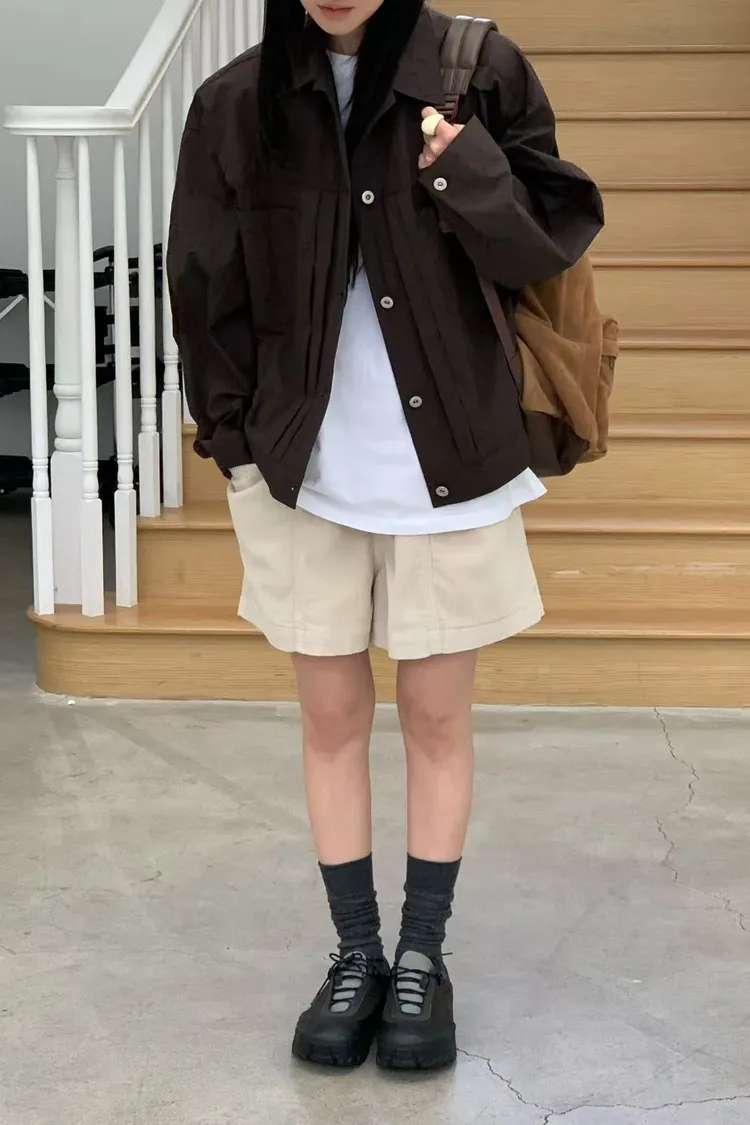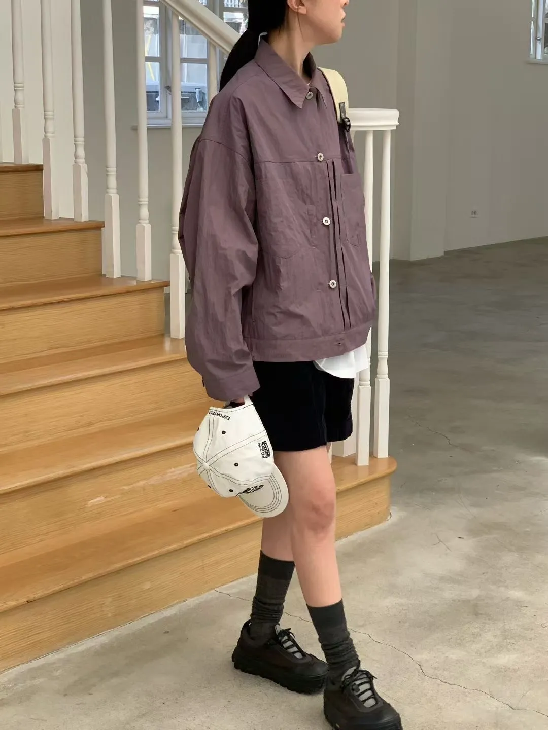 C24歐膩推薦!時髦的平口袋設計挺版紗紗布外套