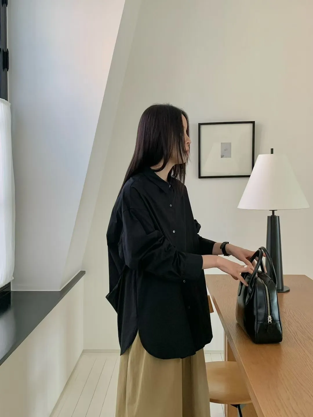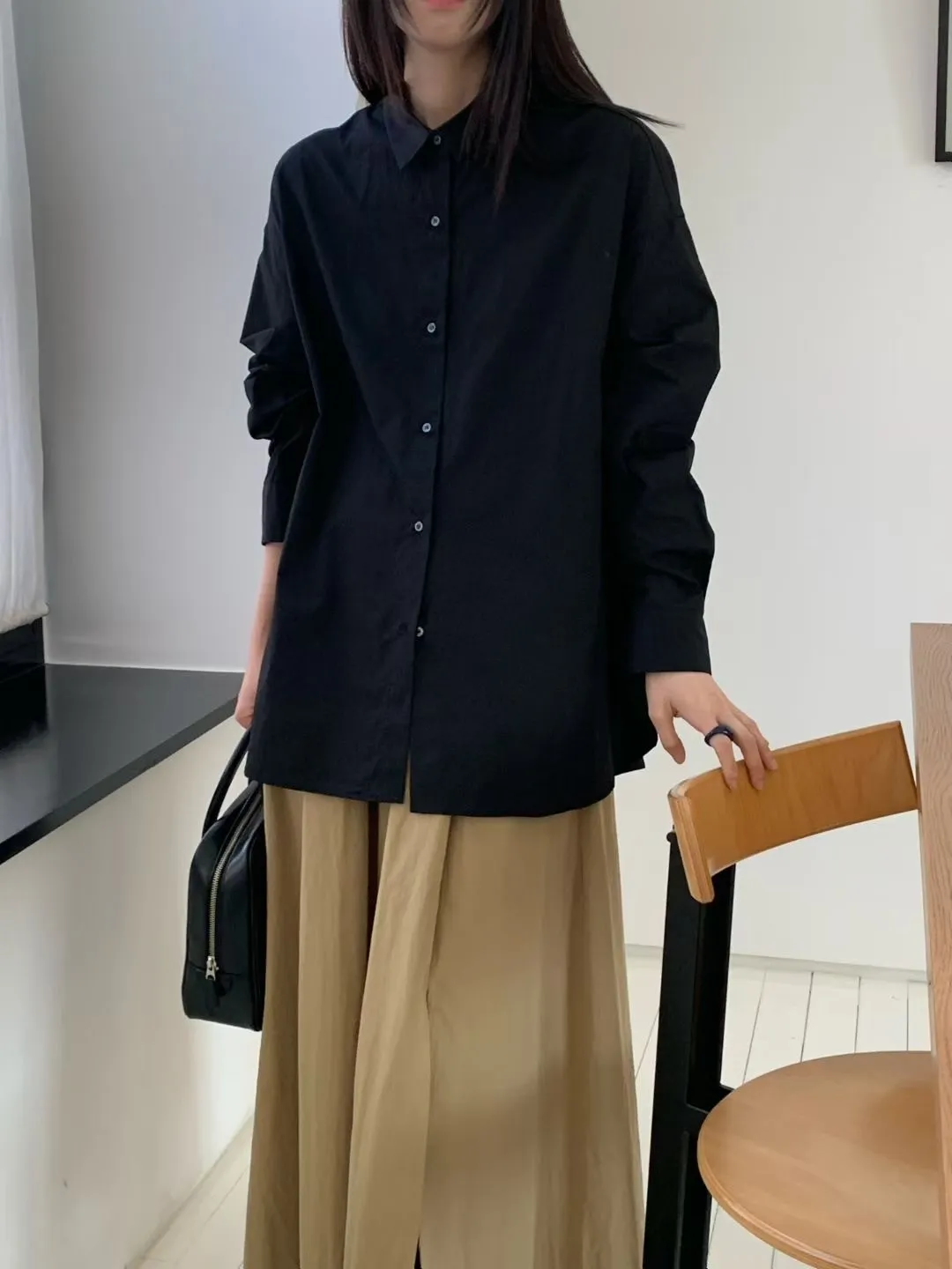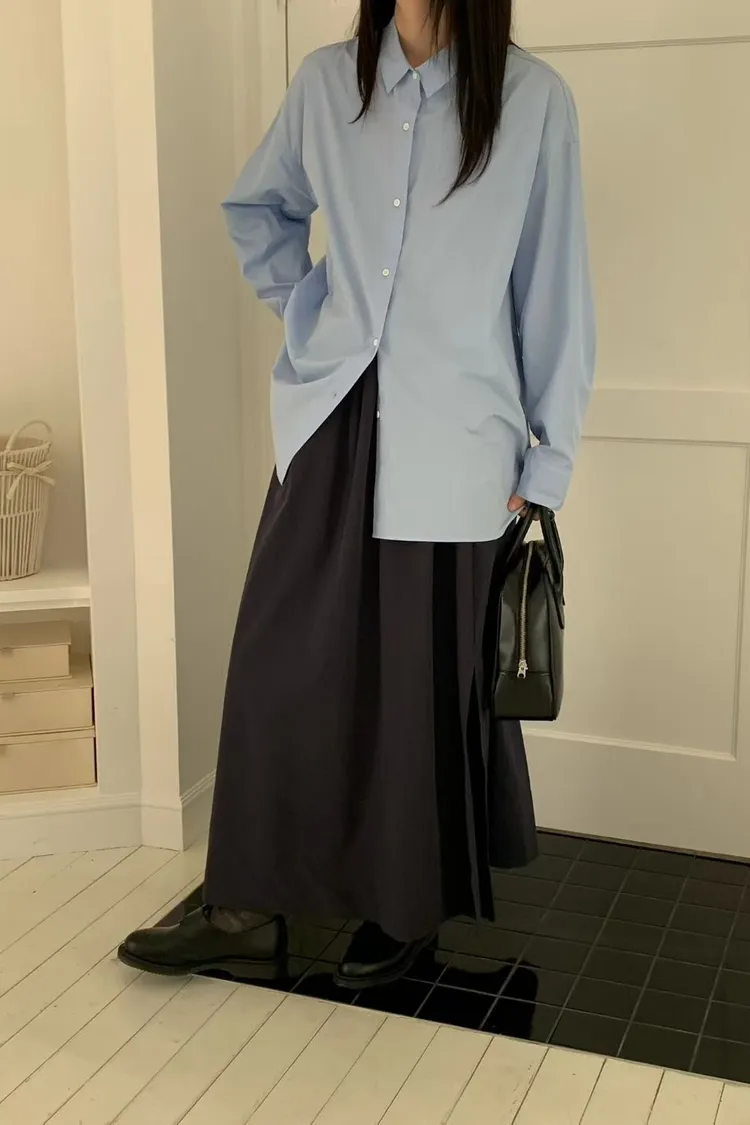 C25簡約小尖領設計感秋冬長袖襯衫