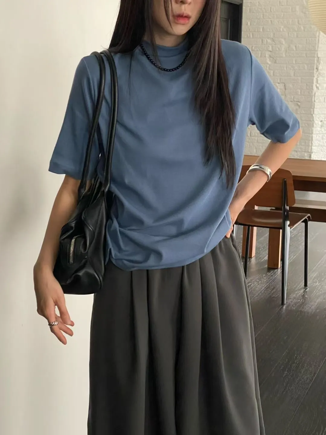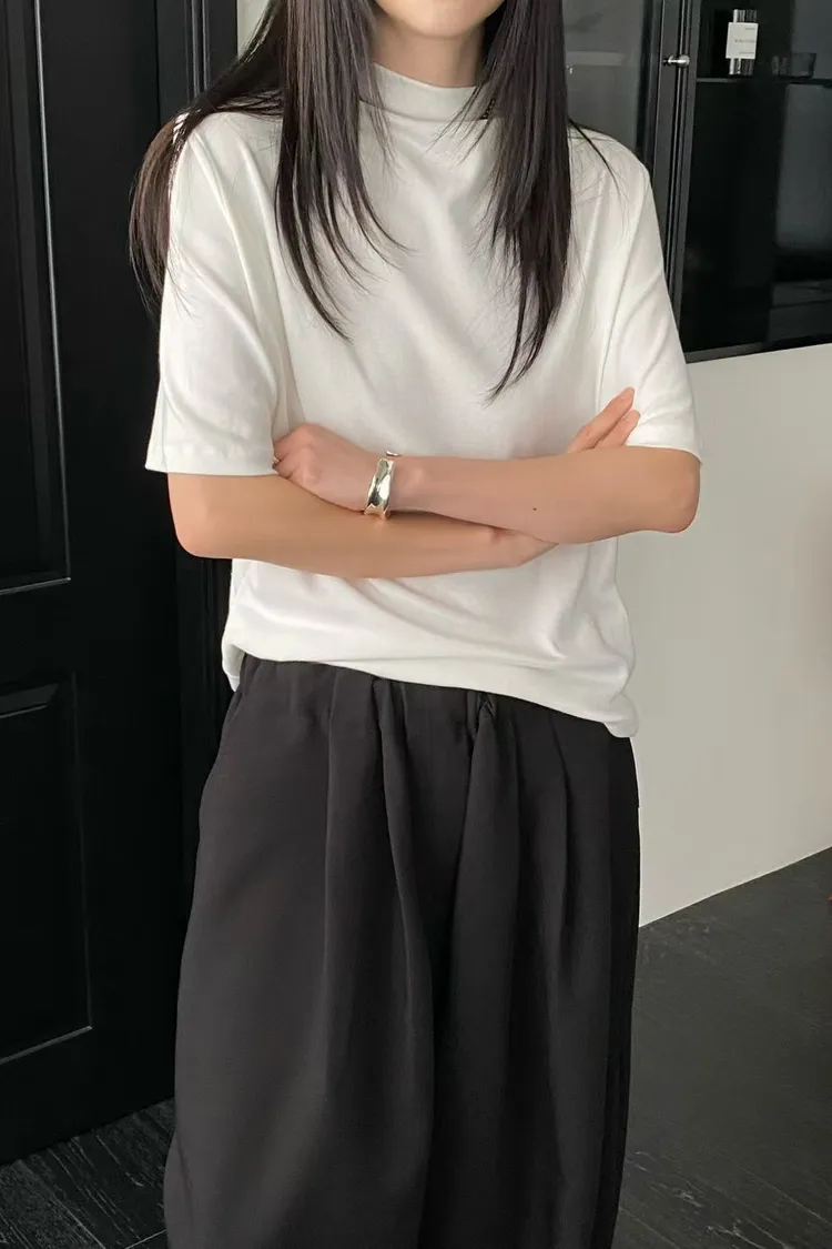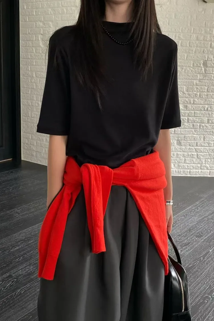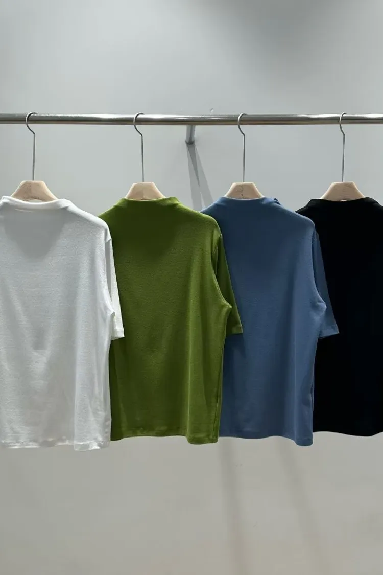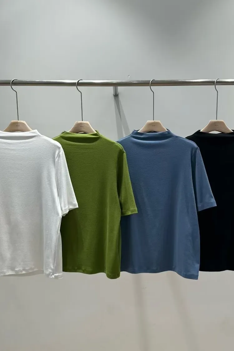 C29小立領設計莫代爾棉五分袖上衣