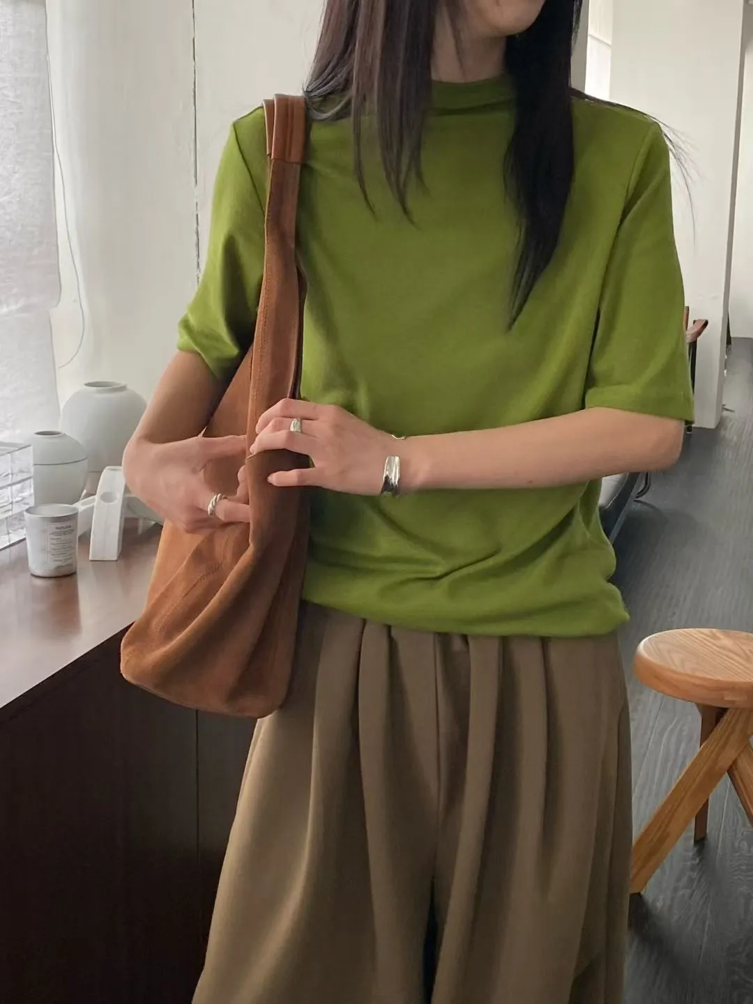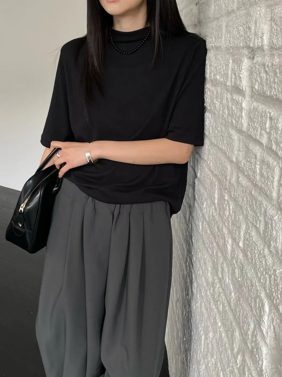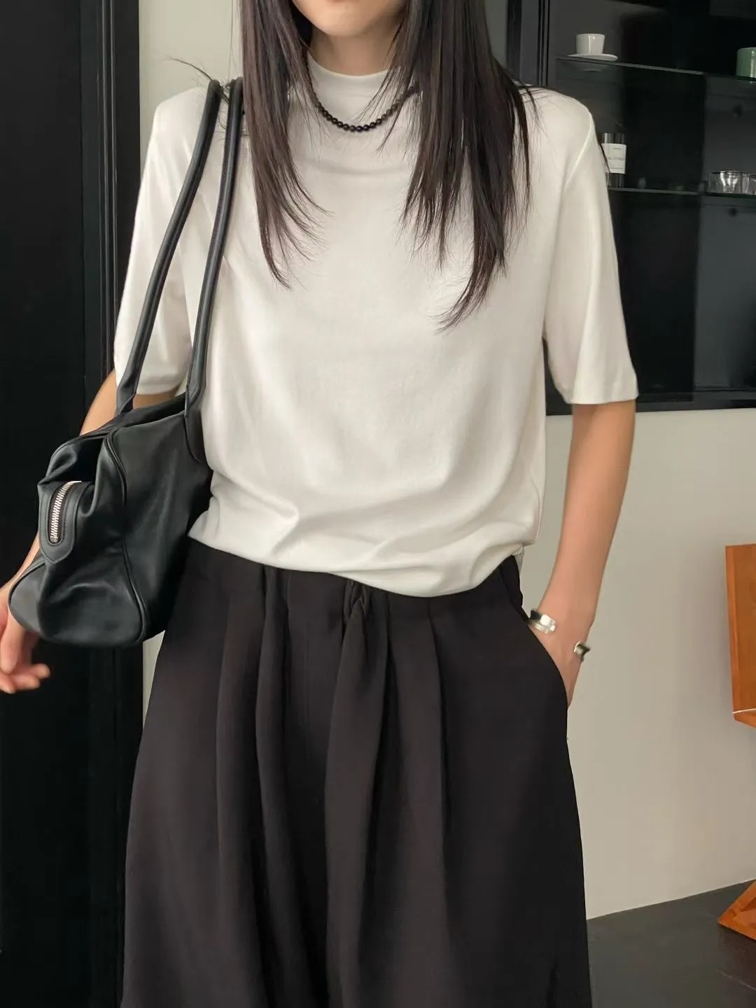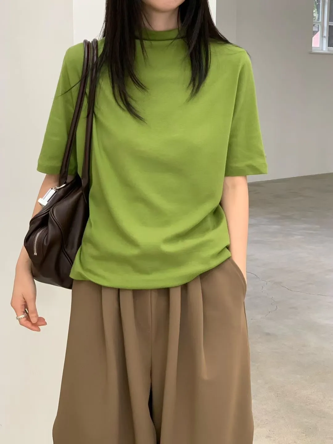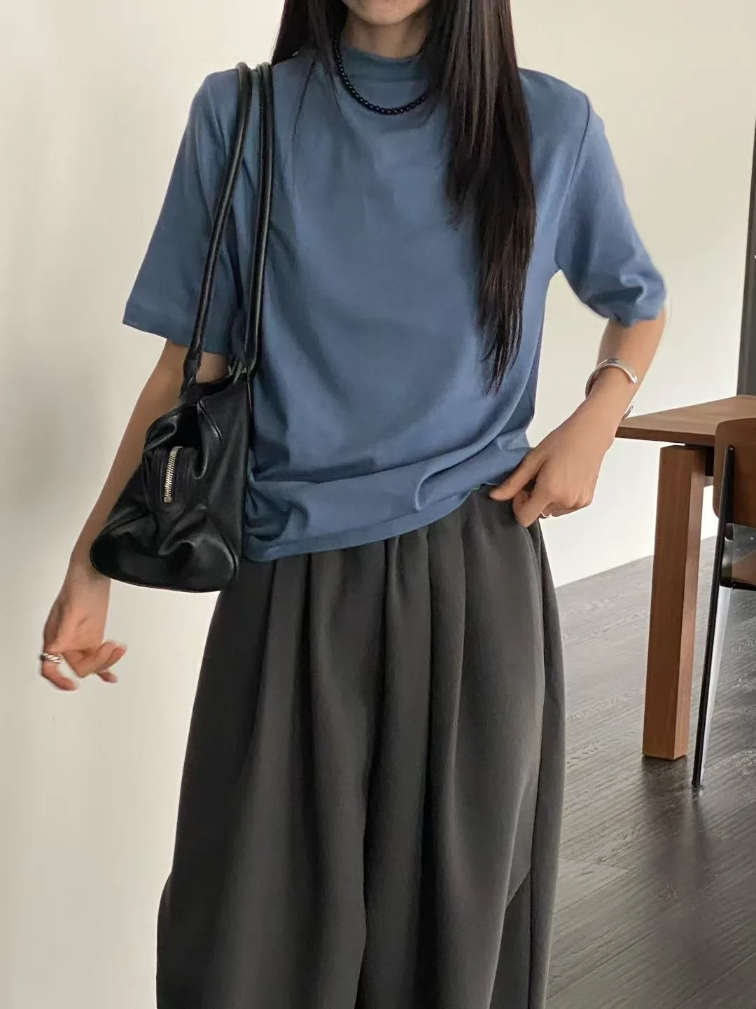 C29小立領設計莫代爾棉五分袖上衣