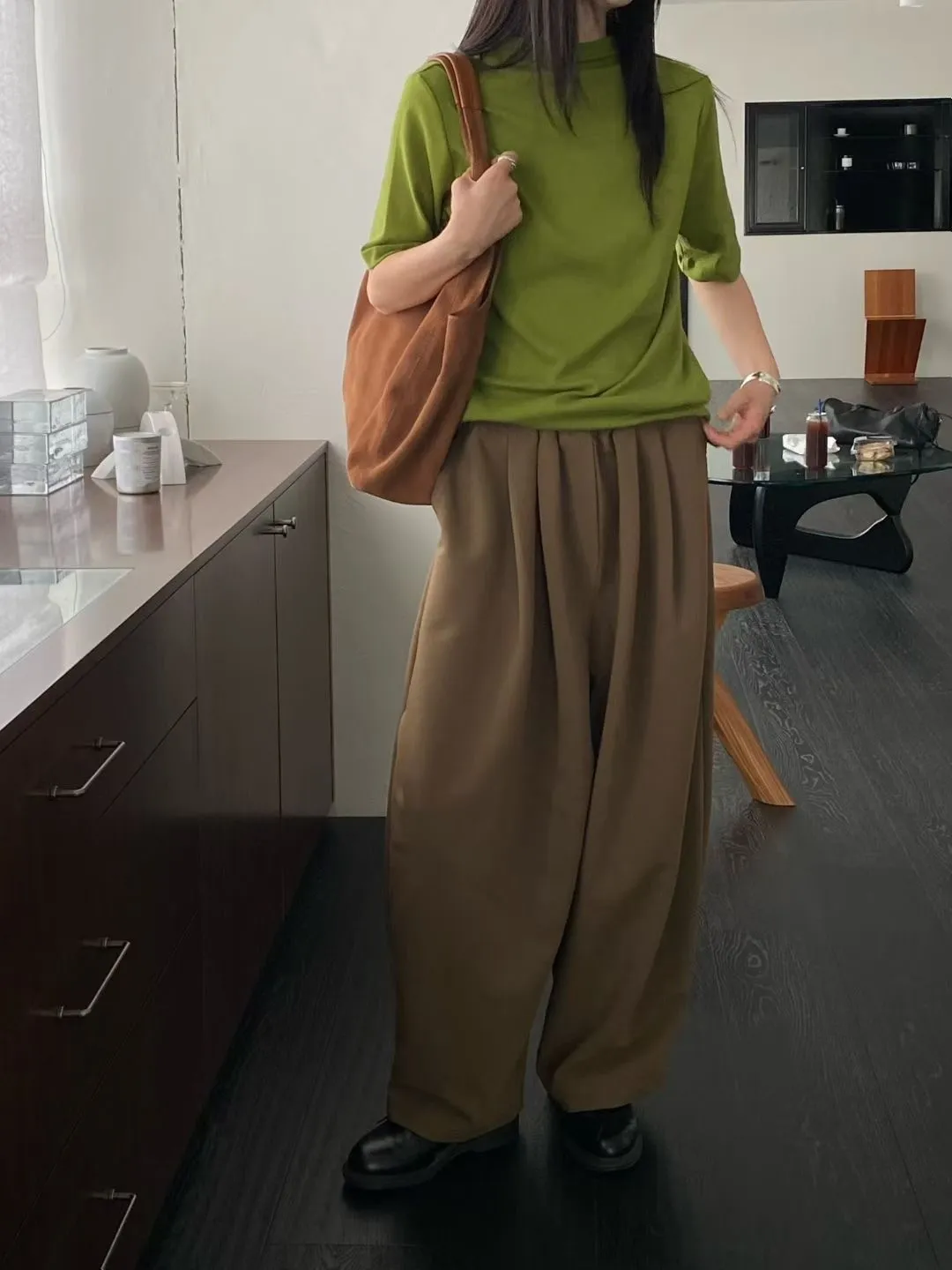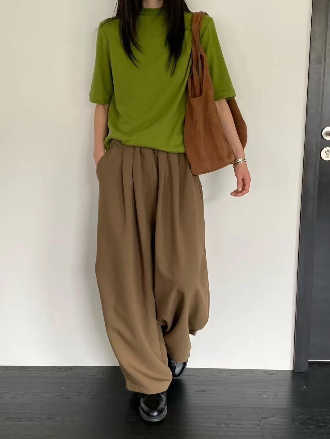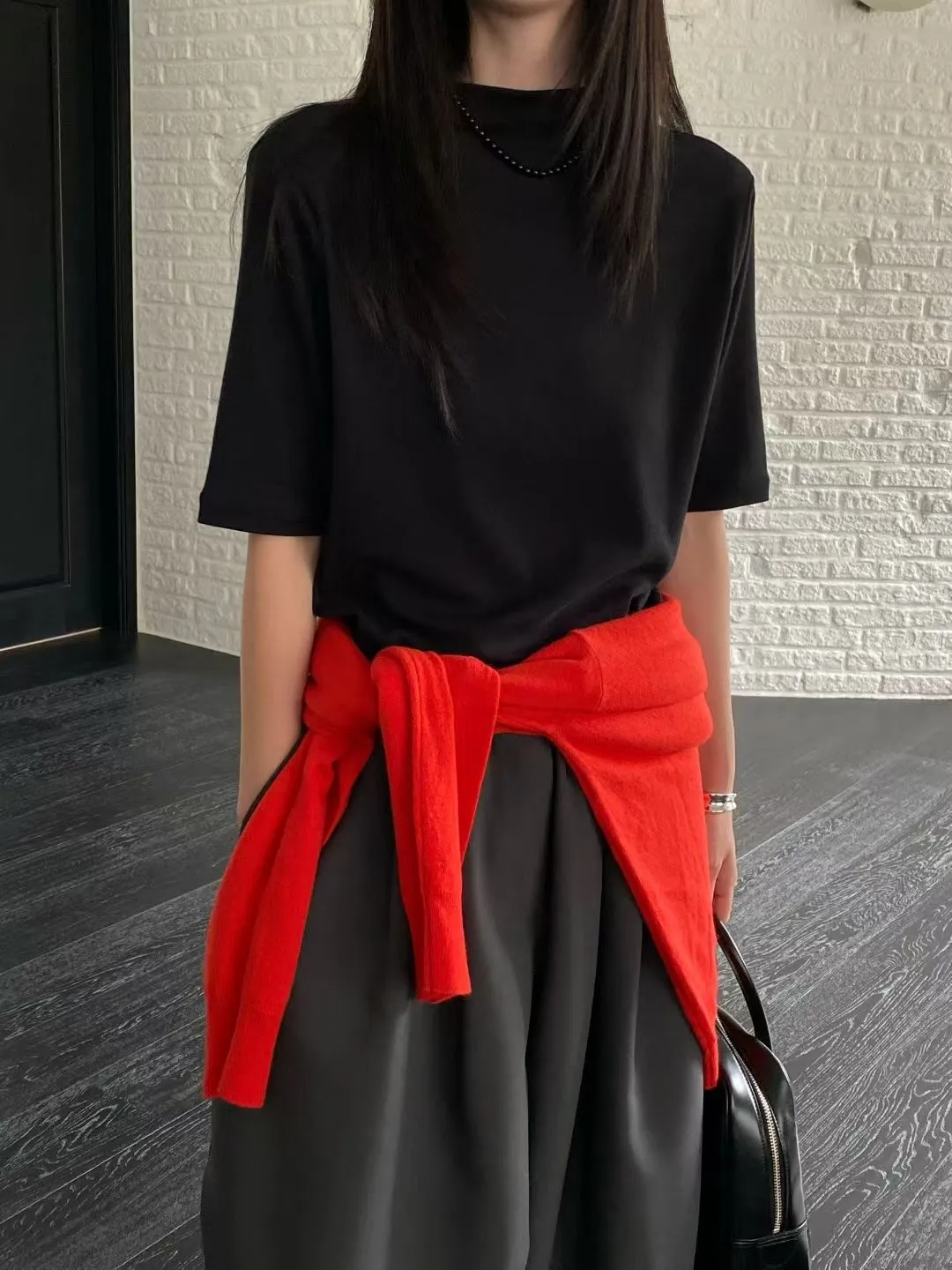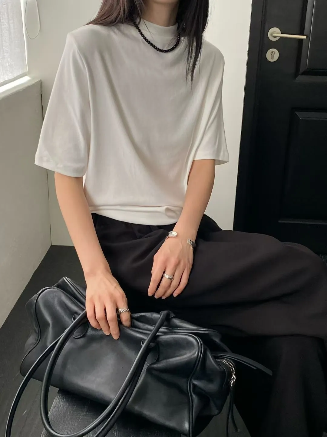 C29小立領設計莫代爾棉五分袖上衣