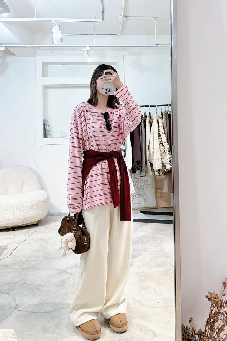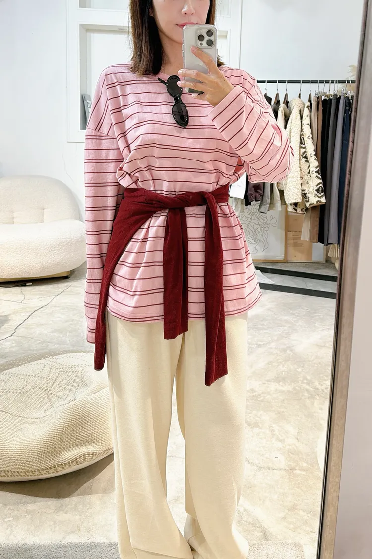 C33日常包色款推薦!細條紋休閒miu系棉質圓領長T