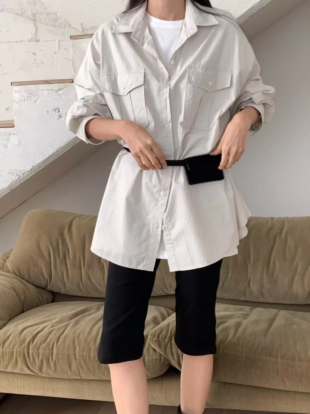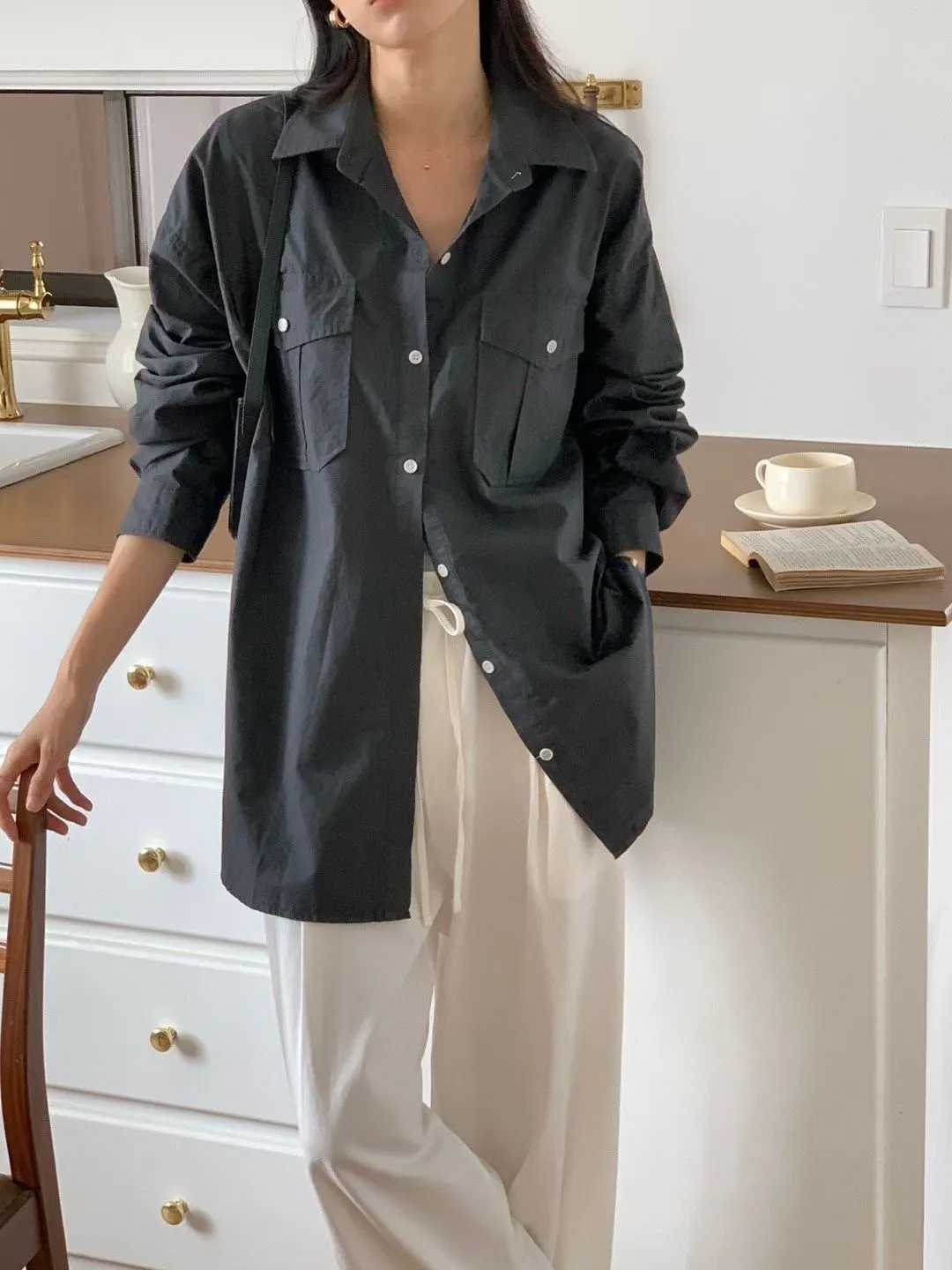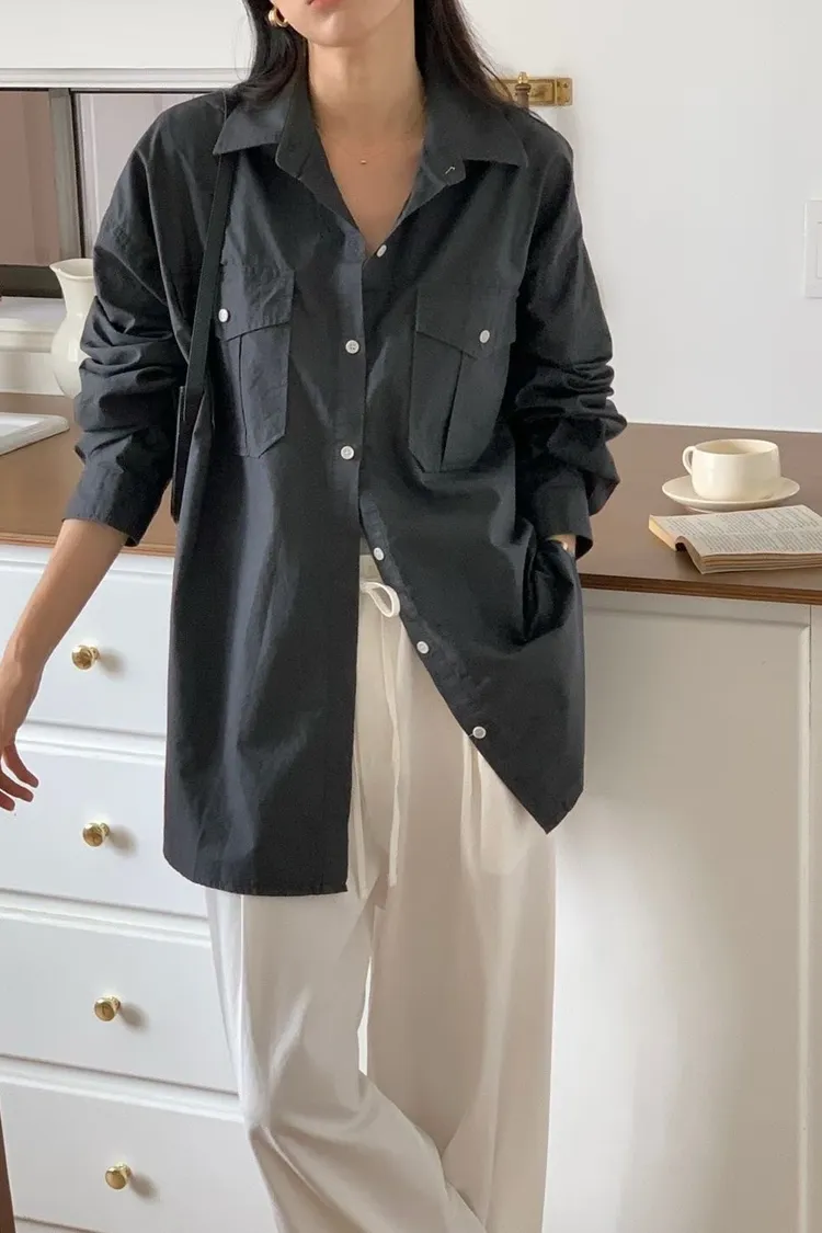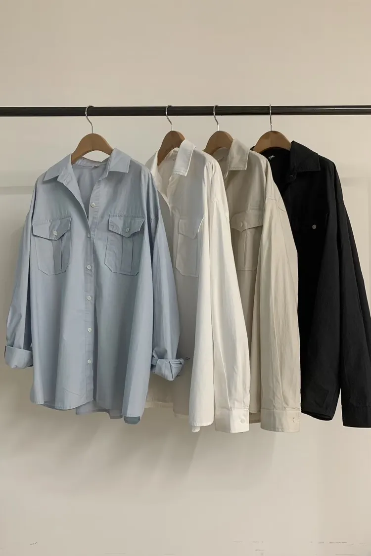 C36高級感up 雙口袋設計顯瘦好看的長袖襯衫