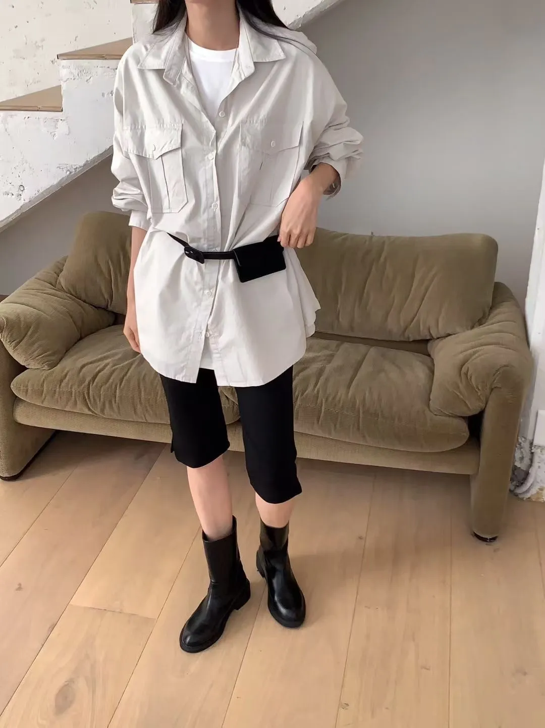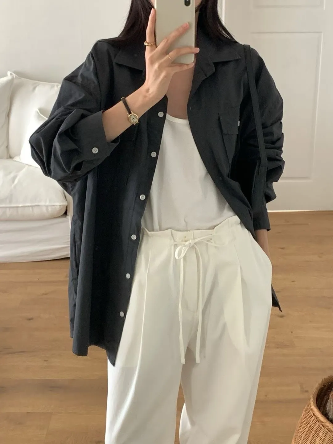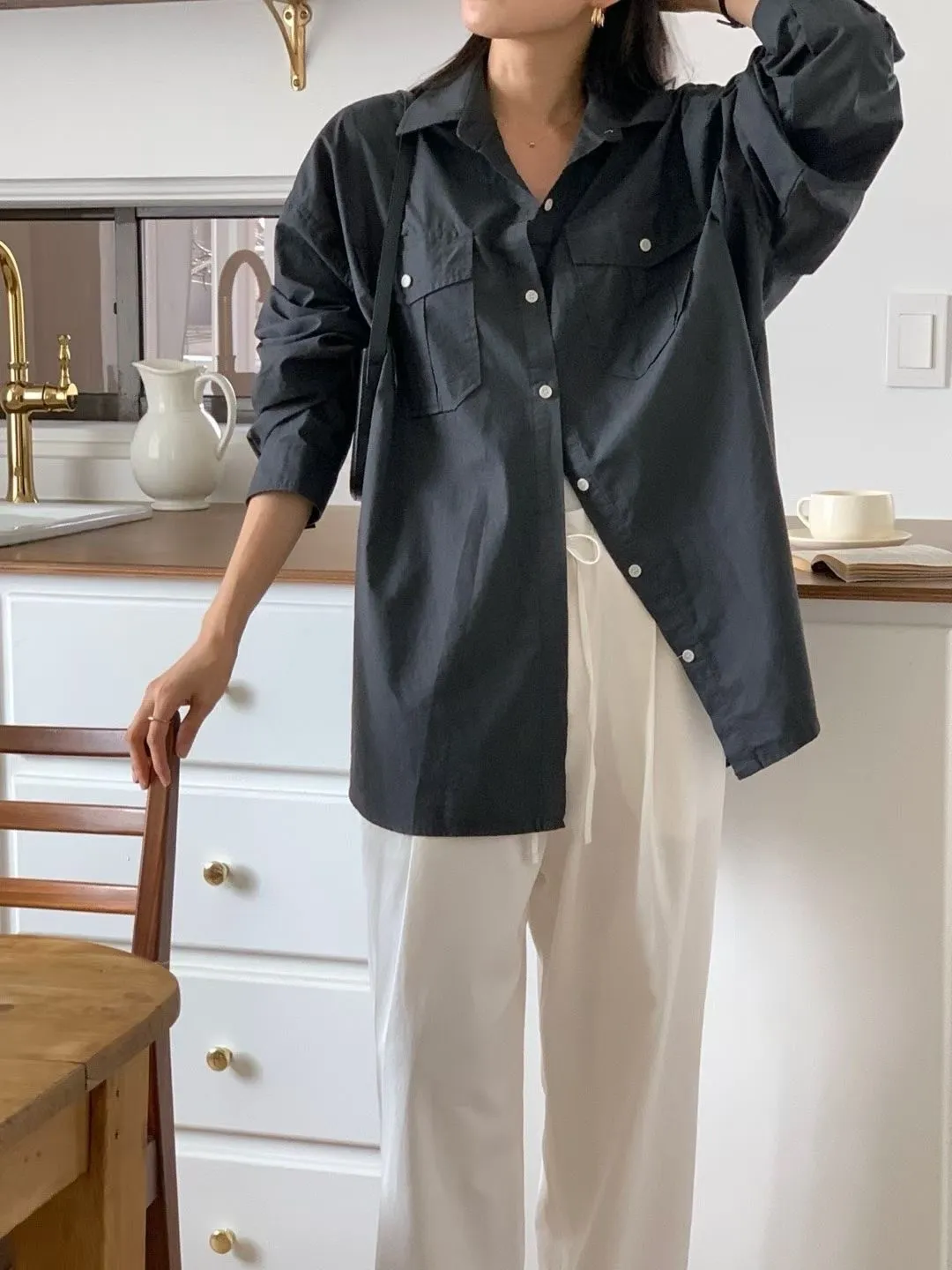C36高級感up 雙口袋設計顯瘦好看的長袖襯衫