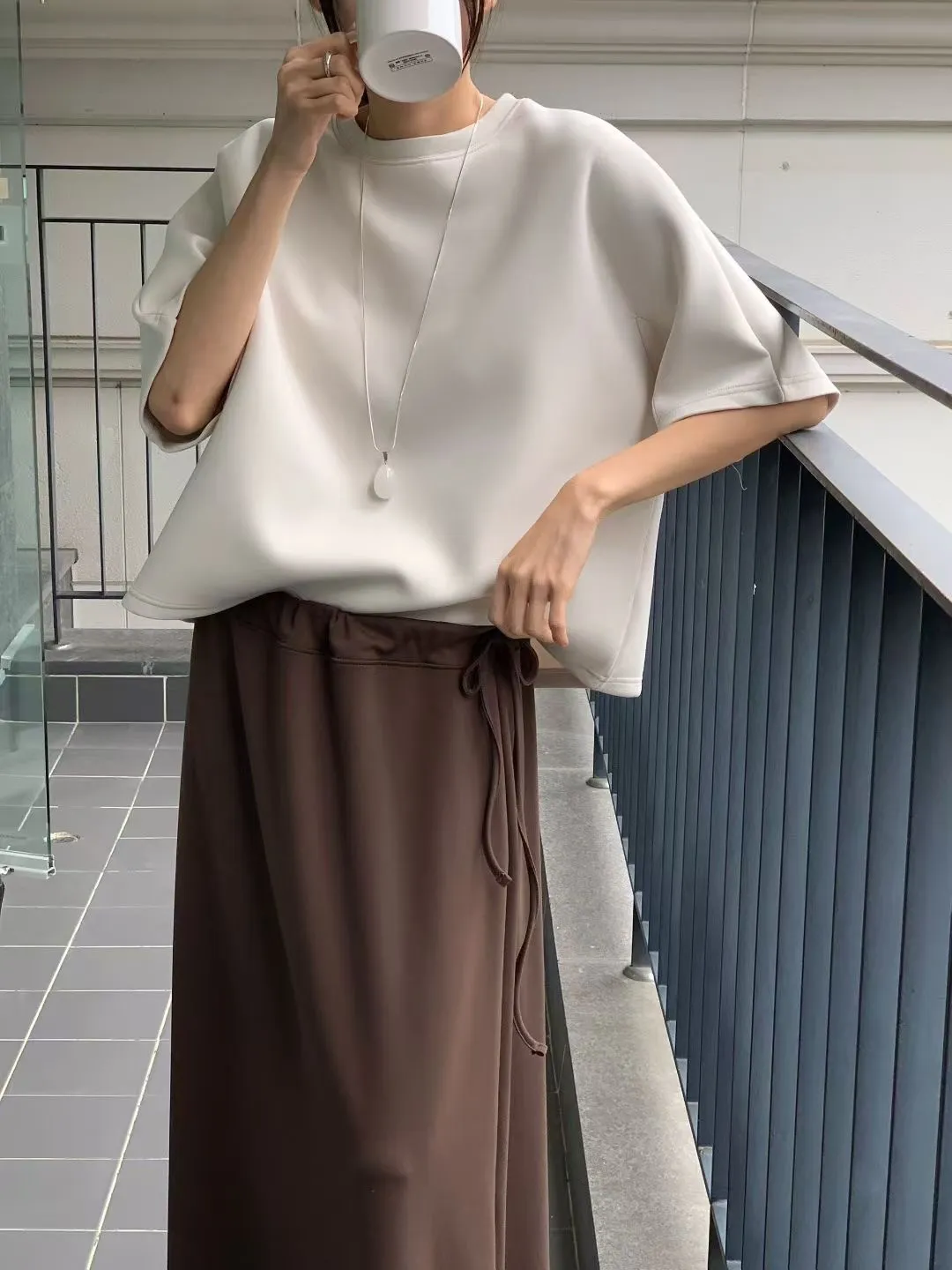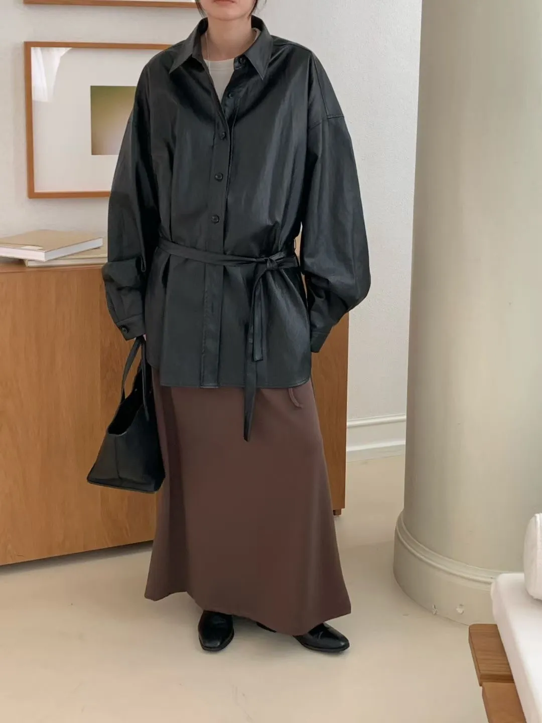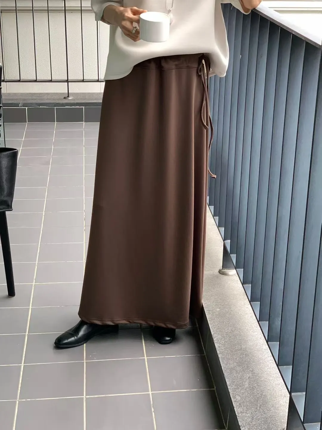 C40本季必備*高級色調腰綁帶設計彈性長裙