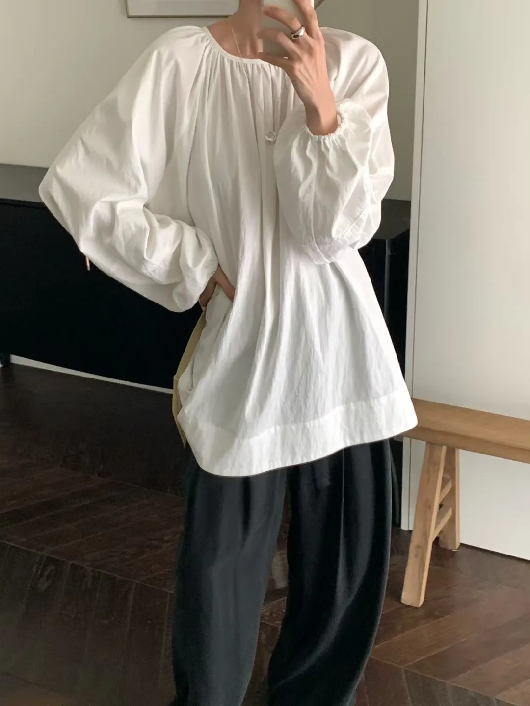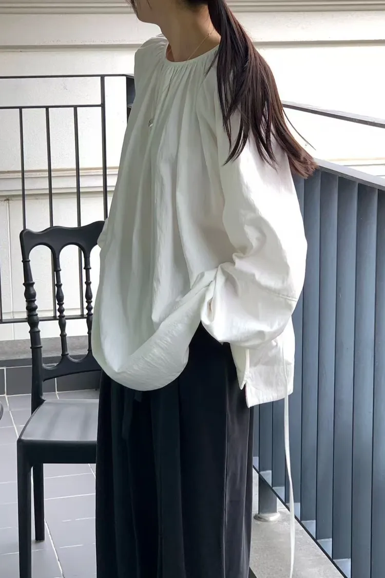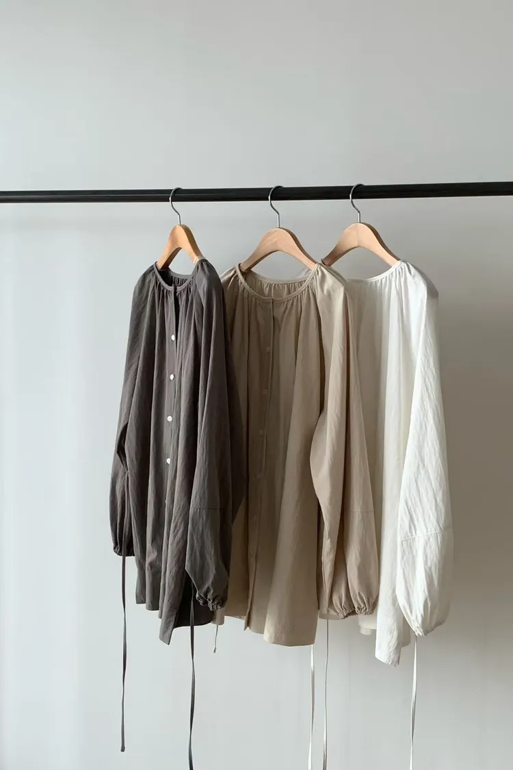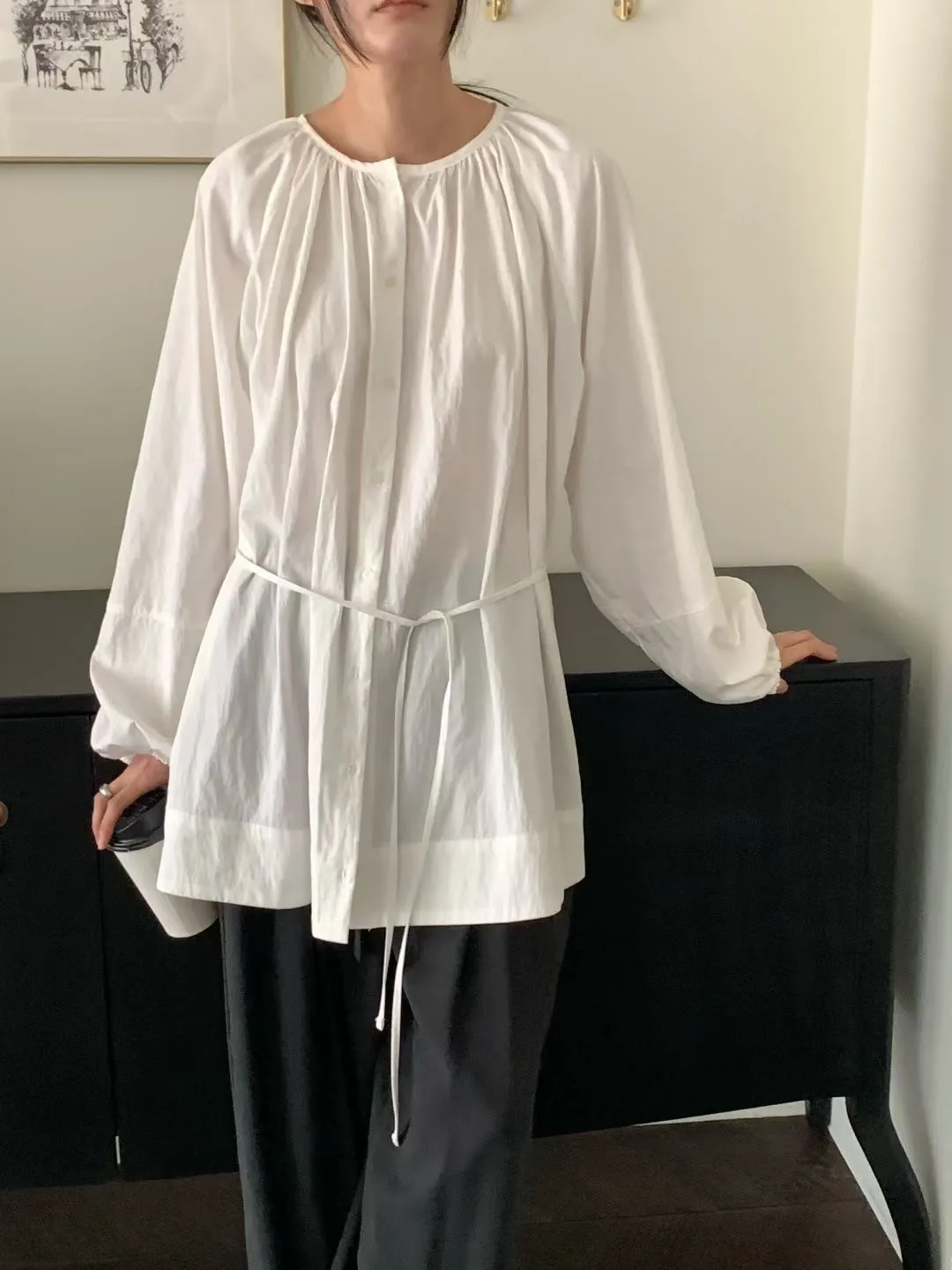C44微甜浪漫小釦設計長版罩衫上衣/附綁帶