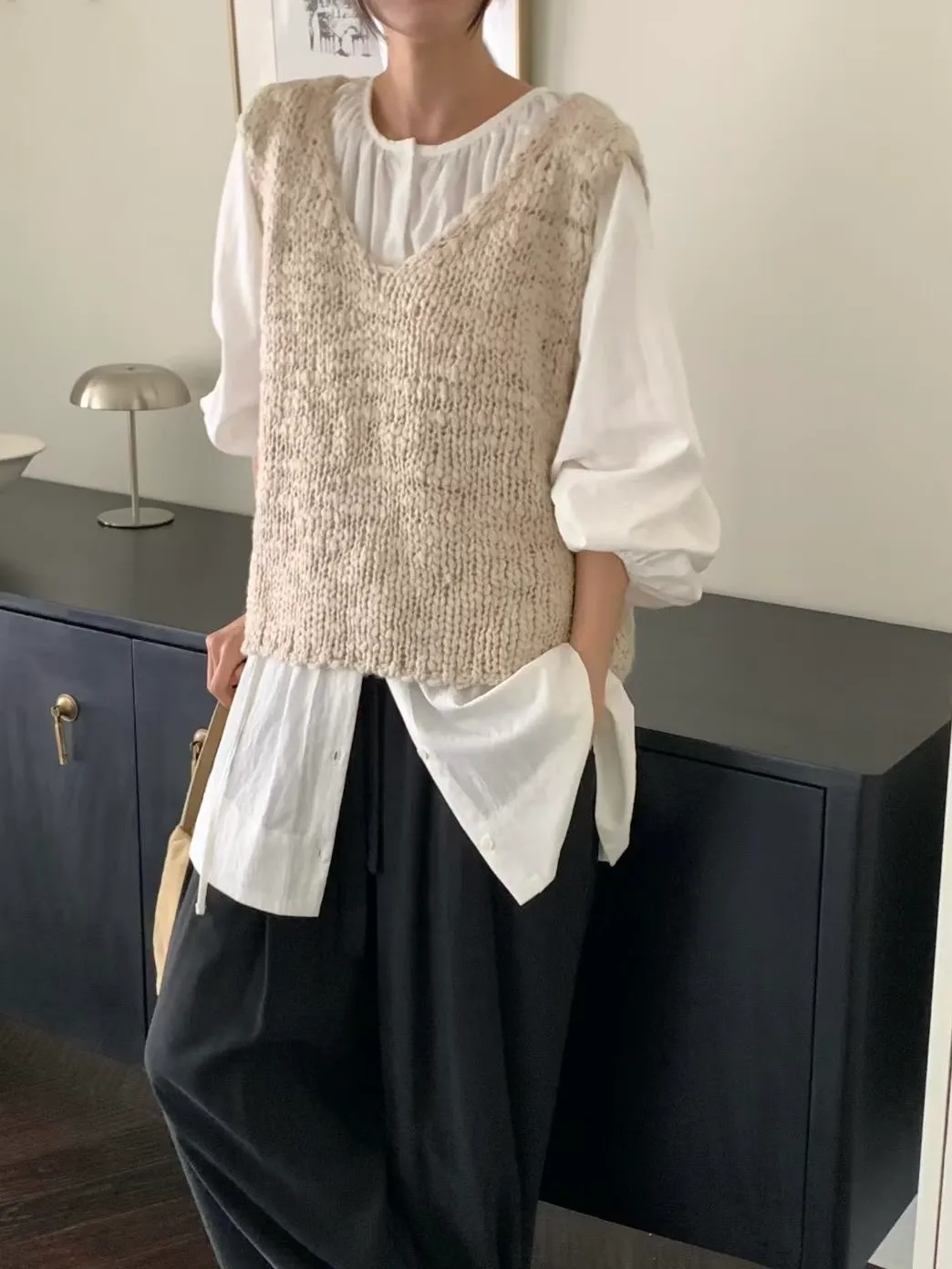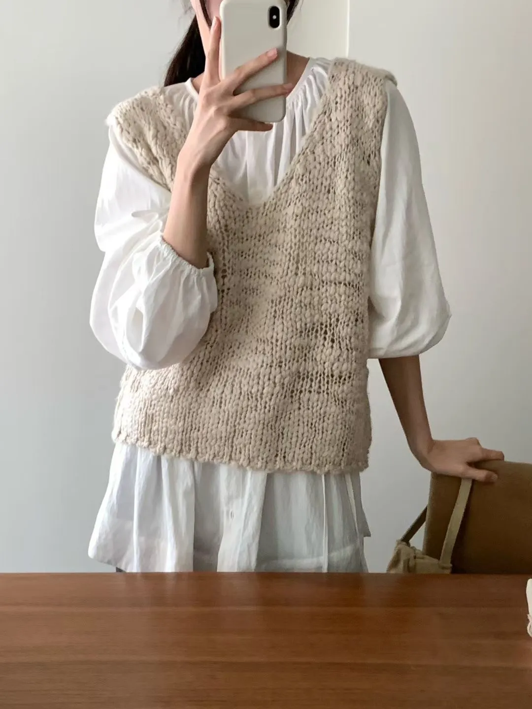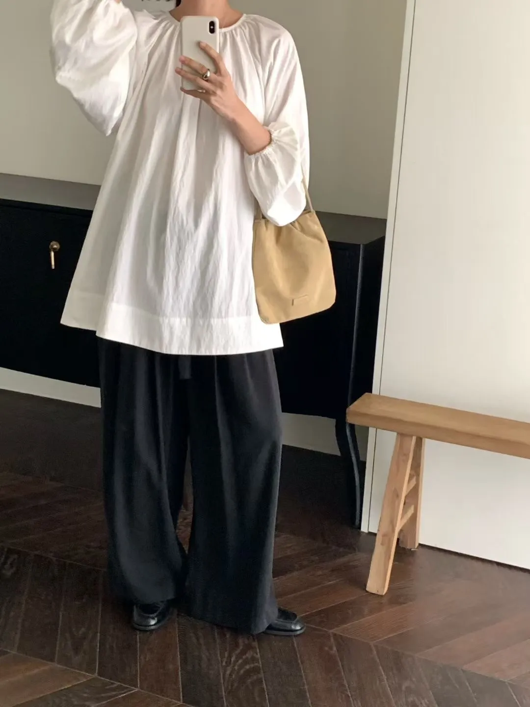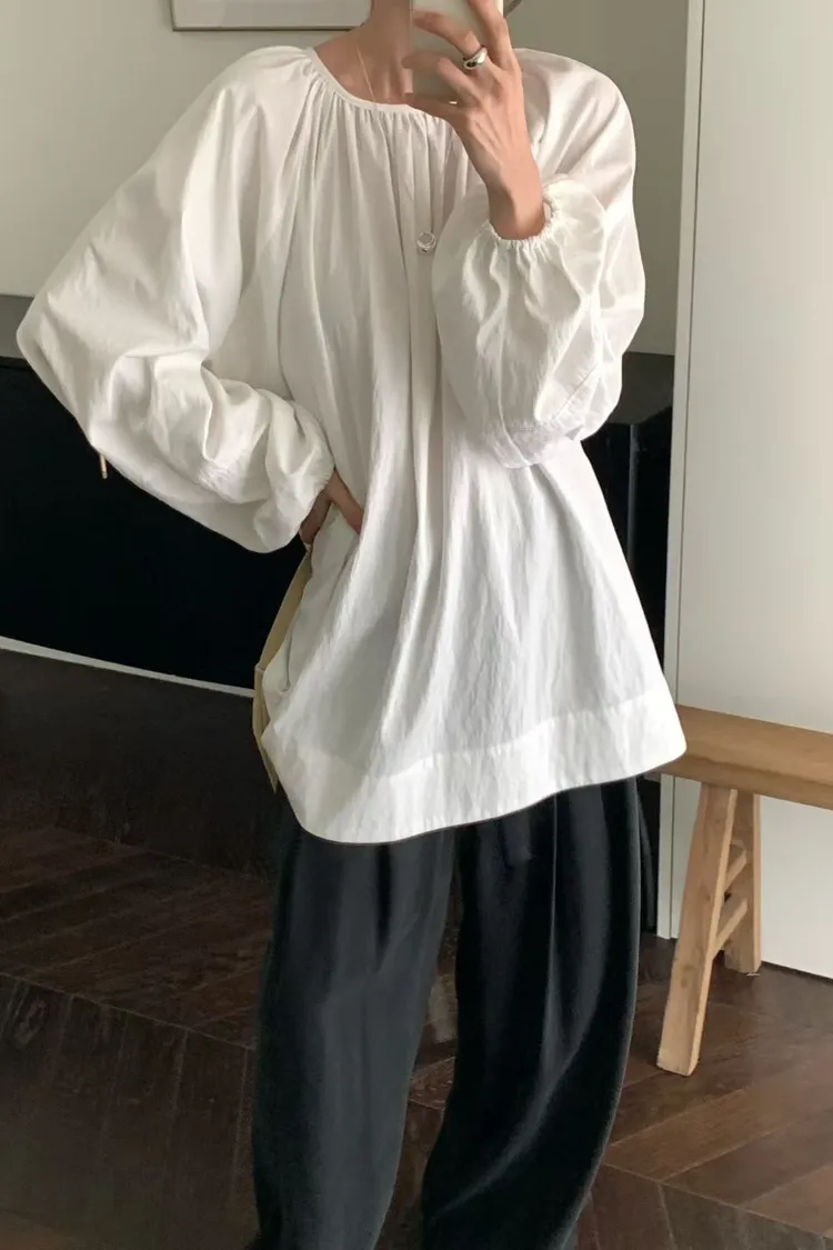 C44微甜浪漫小釦設計長版罩衫上衣/附綁帶