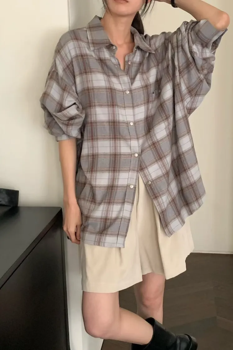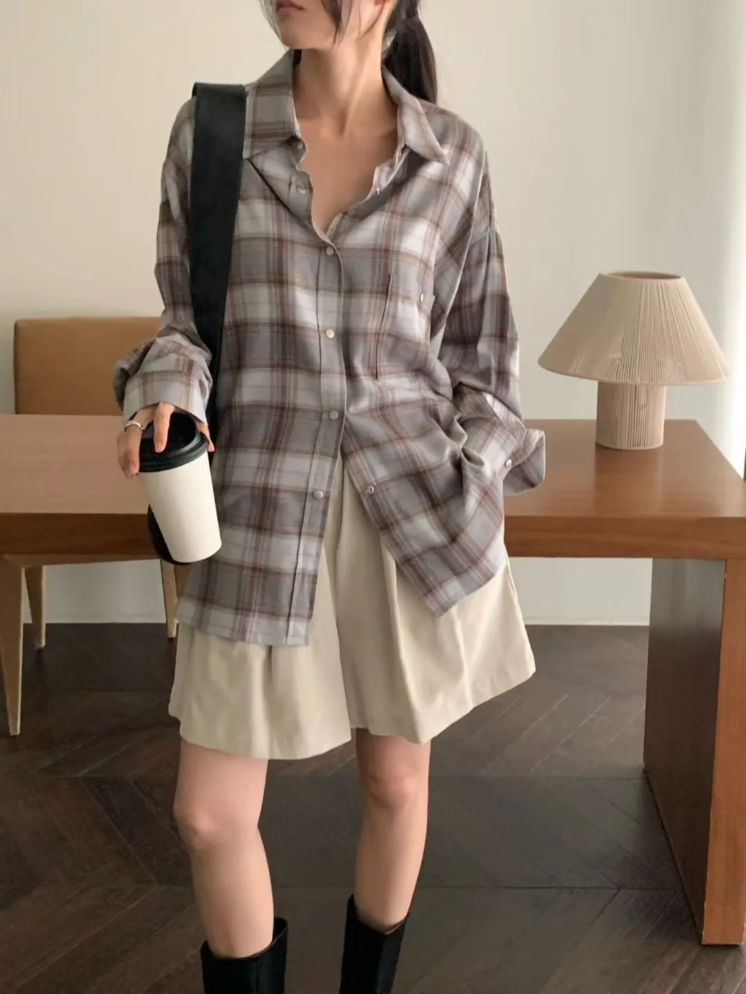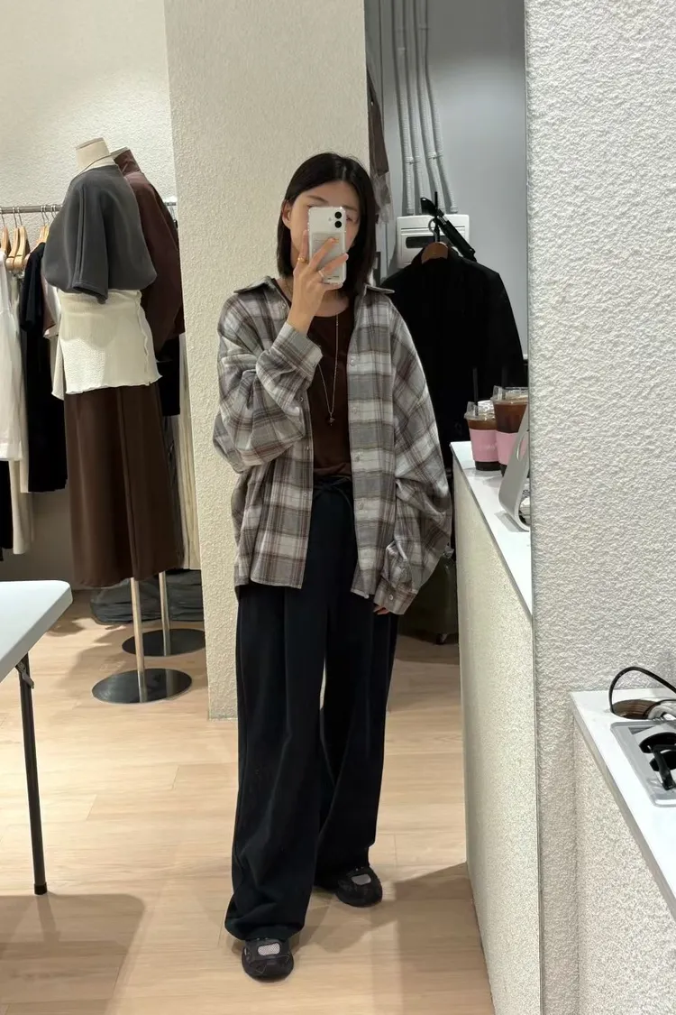 C48店長真愛*又甜又鹽的高級格紋配色刷毛格紋襯衫