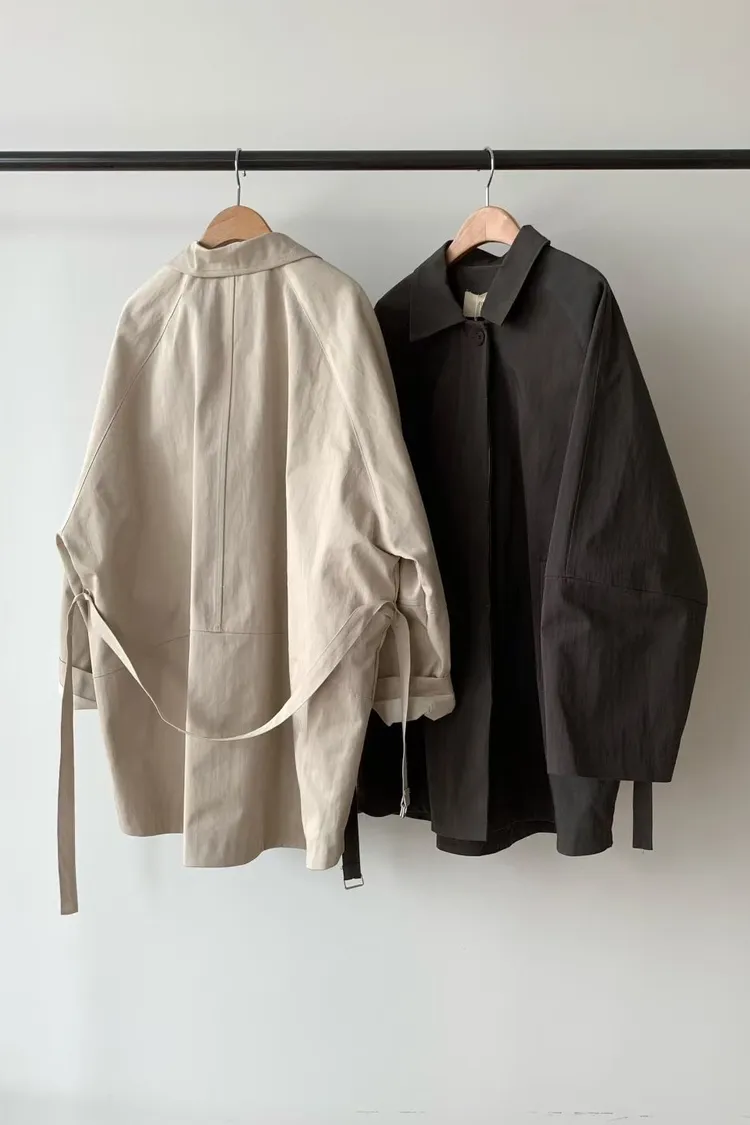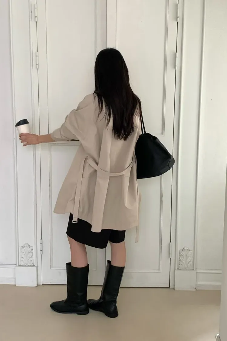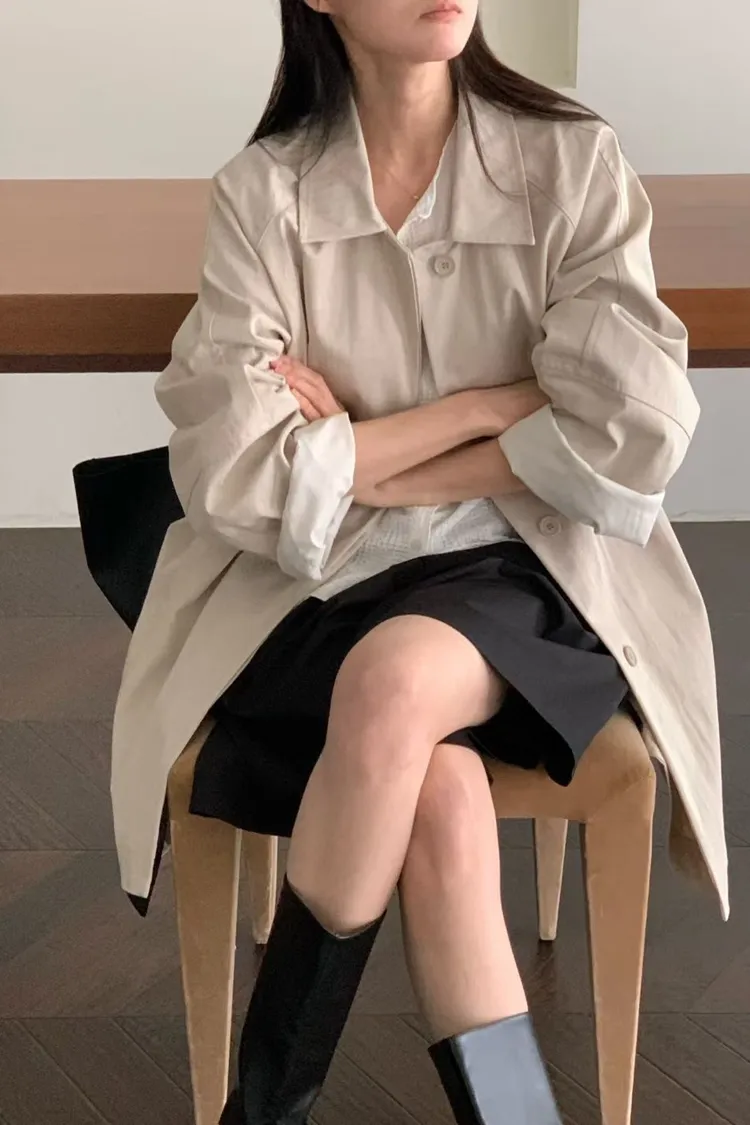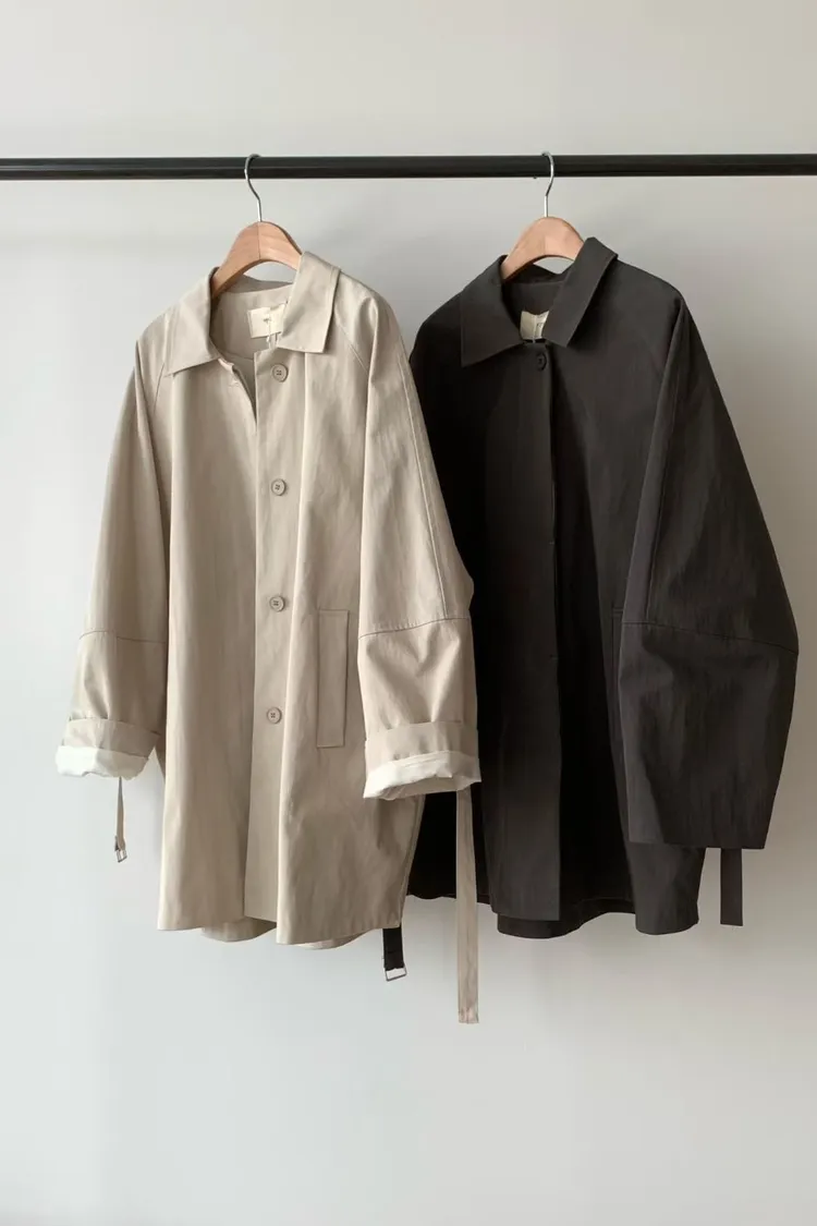 C49高級感up微中長版單牌釦綁帶風衣外套
