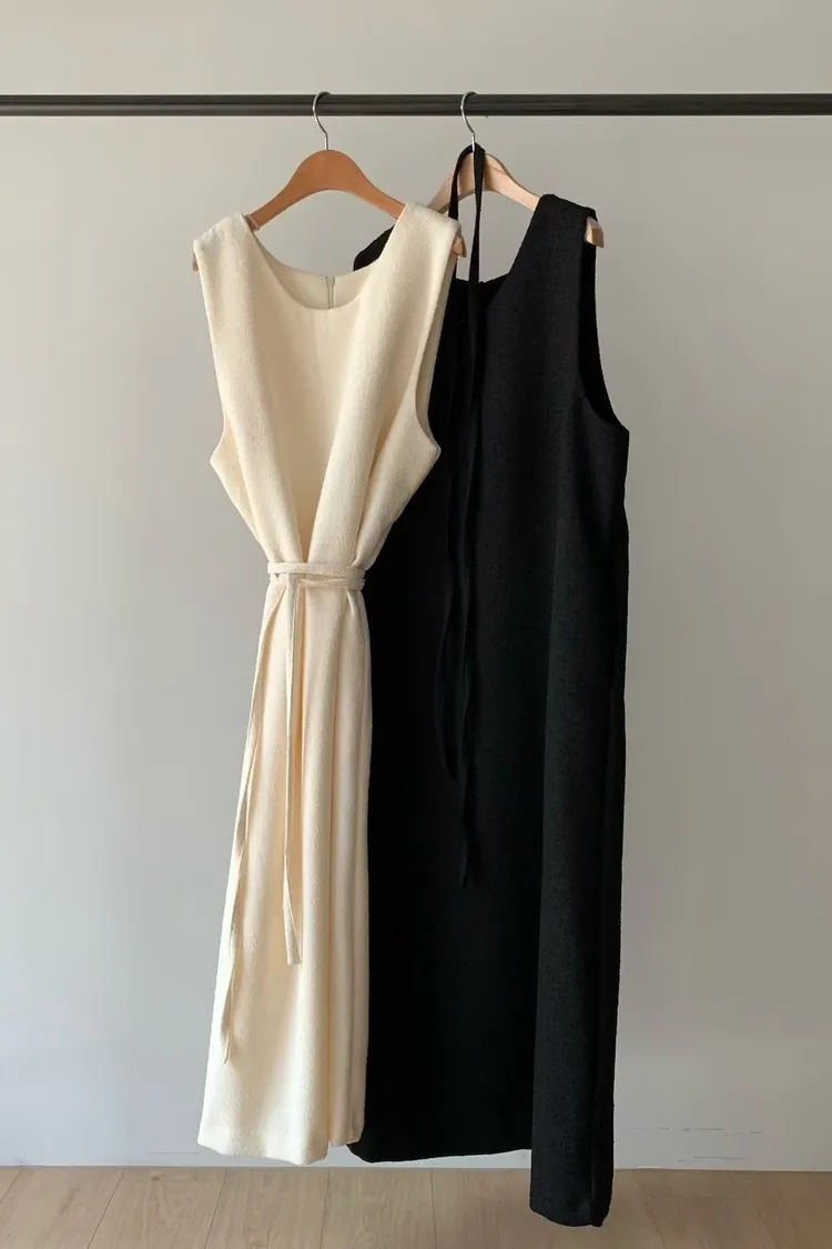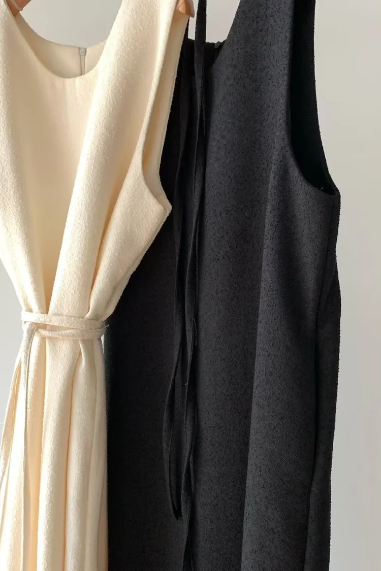 C55超美必收!混羊毛立體感背心長洋裝/附綁帶