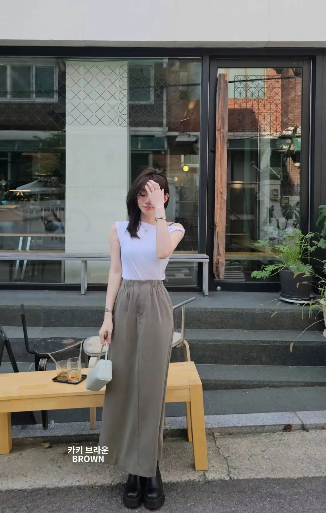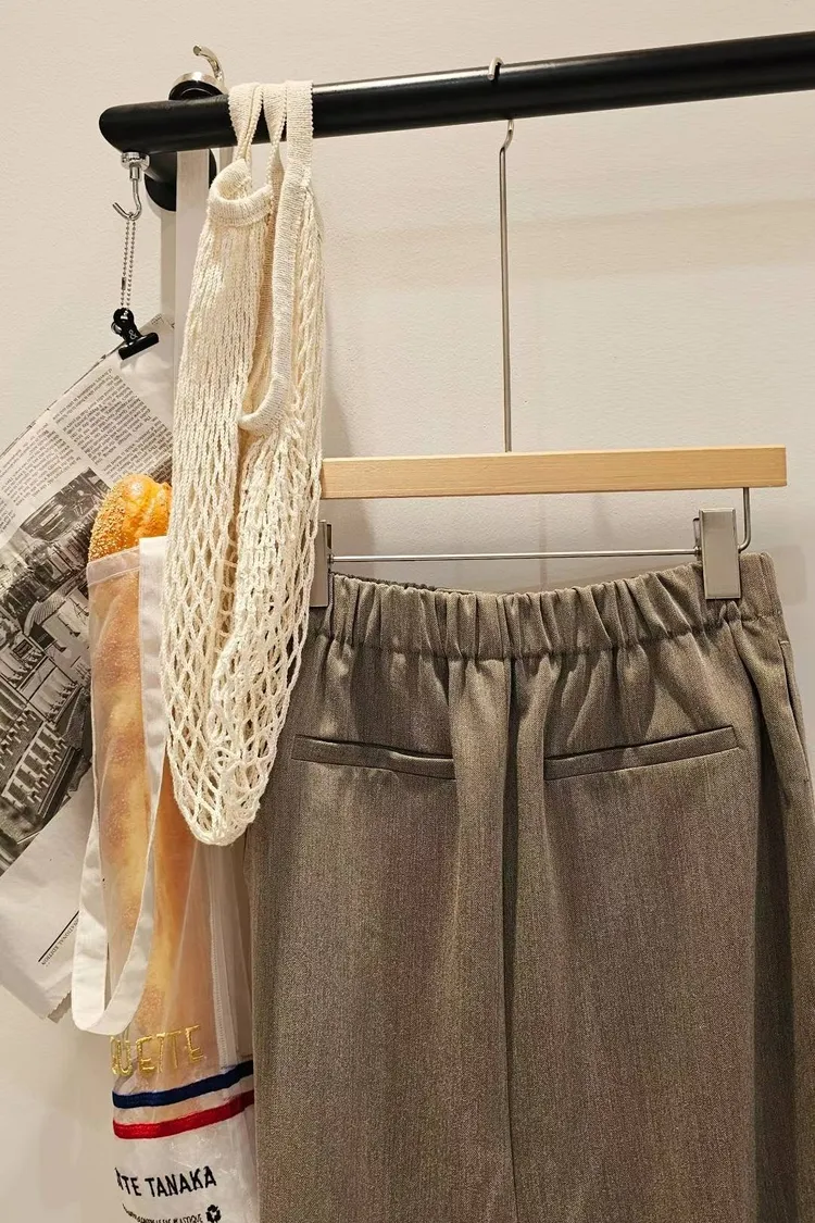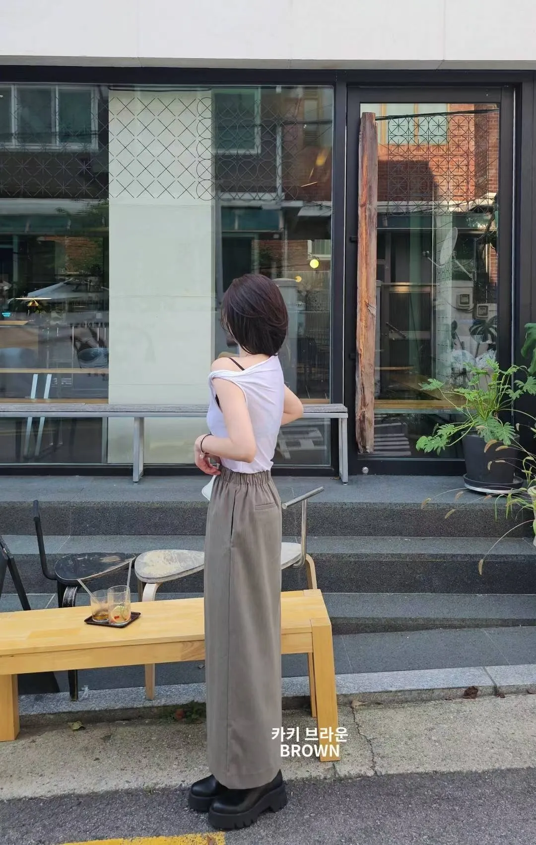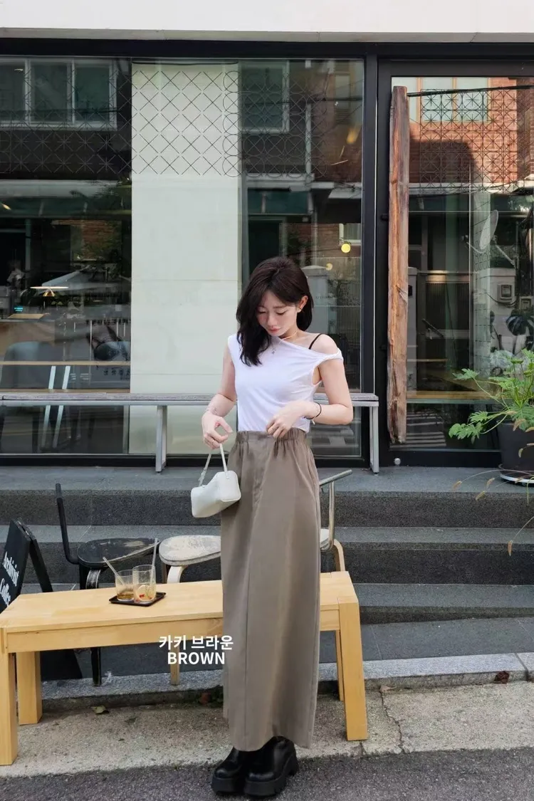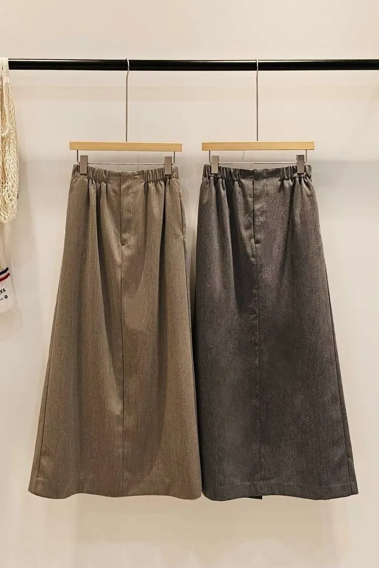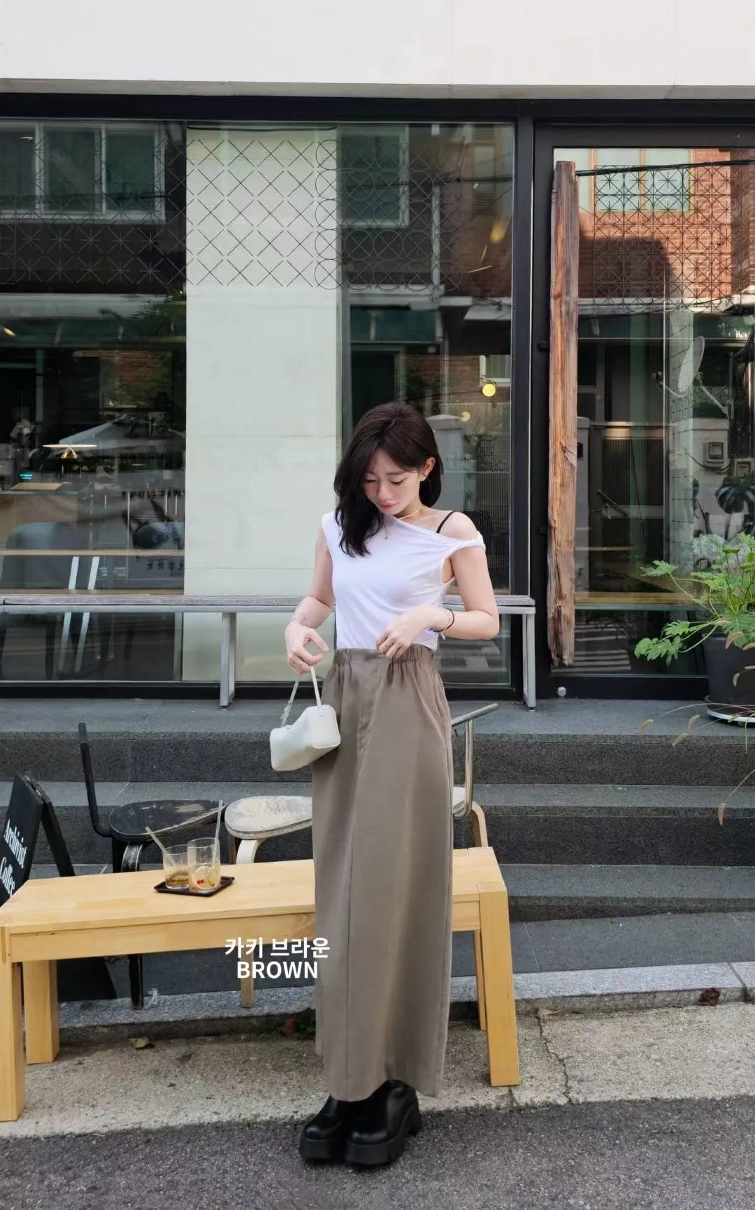 長裙有內裡,兩側口袋,後鬆緊帶。