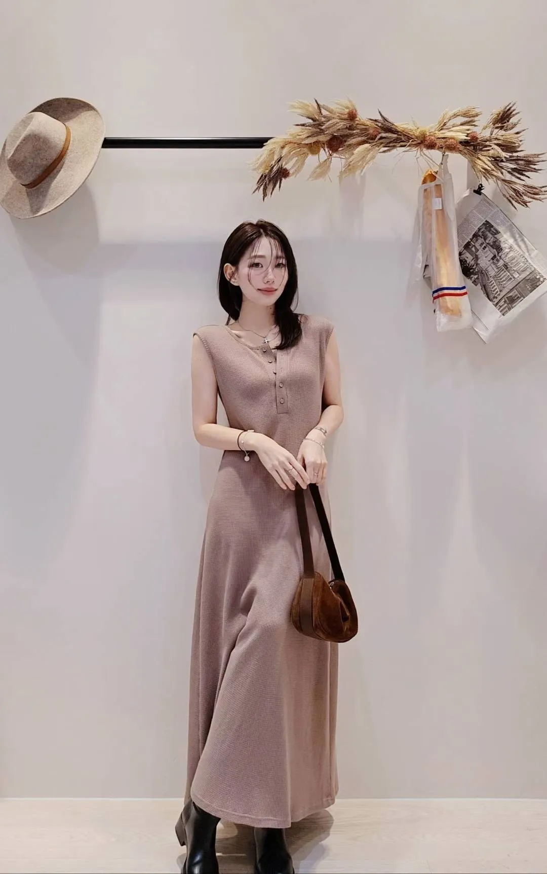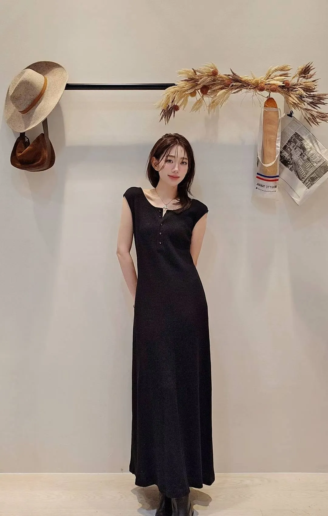布料的垂感很好,小A字身形帶一點腰身設計~