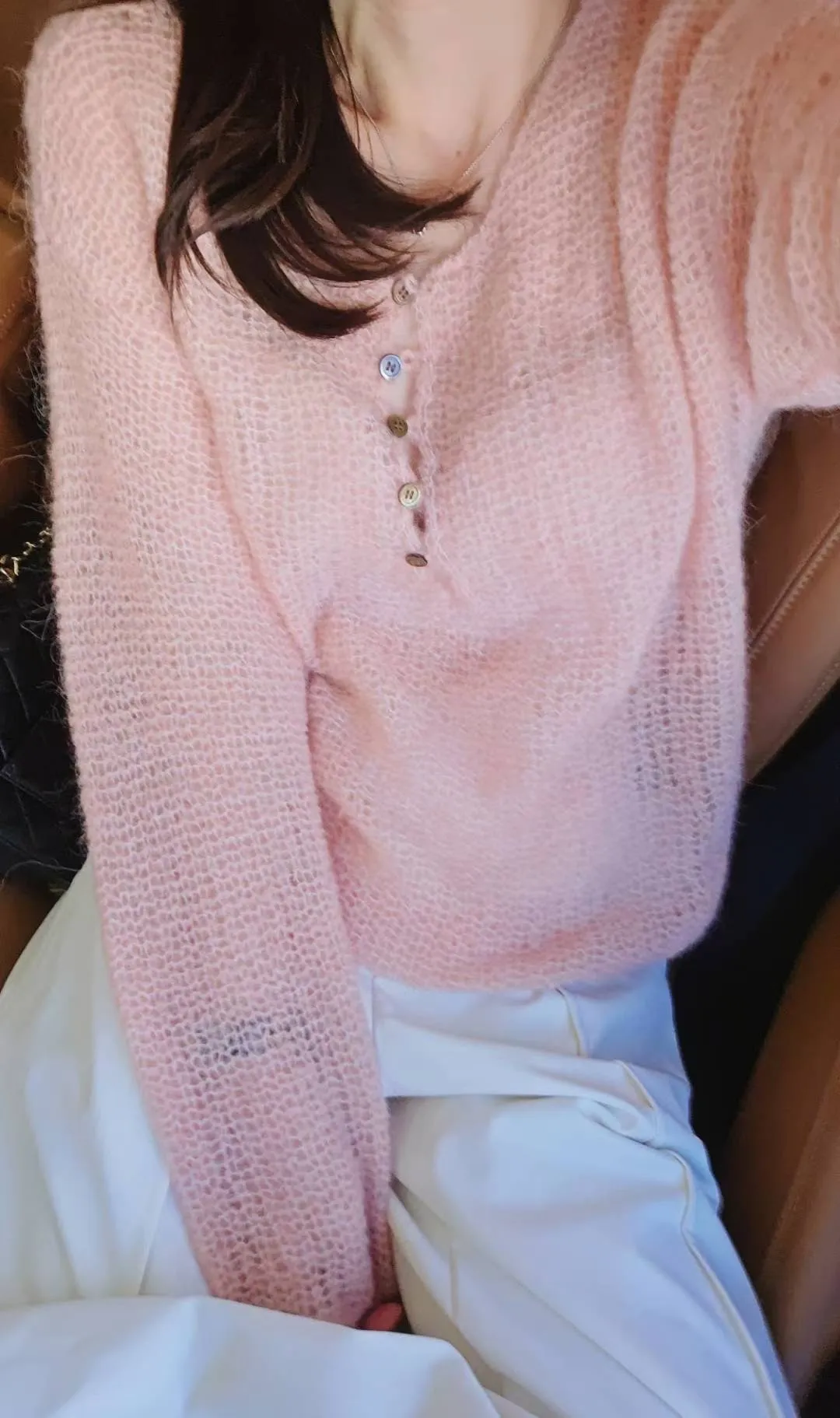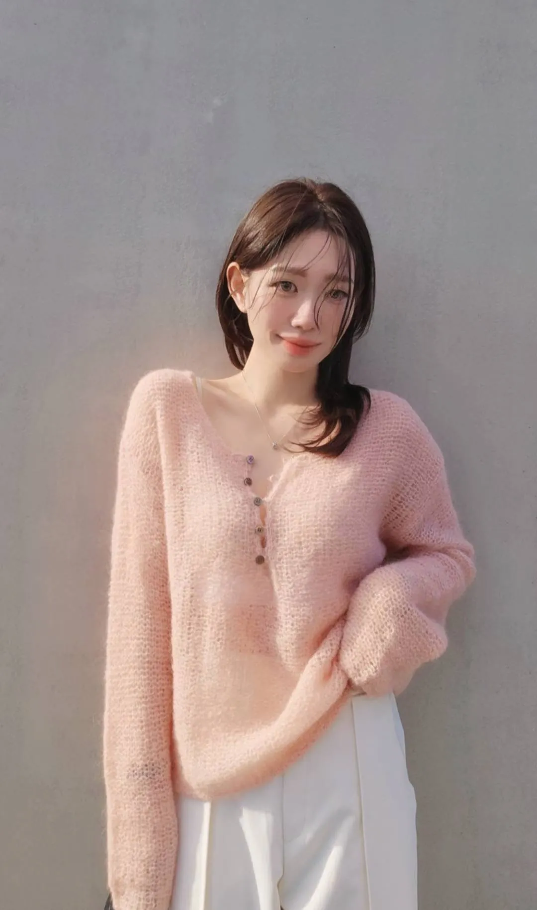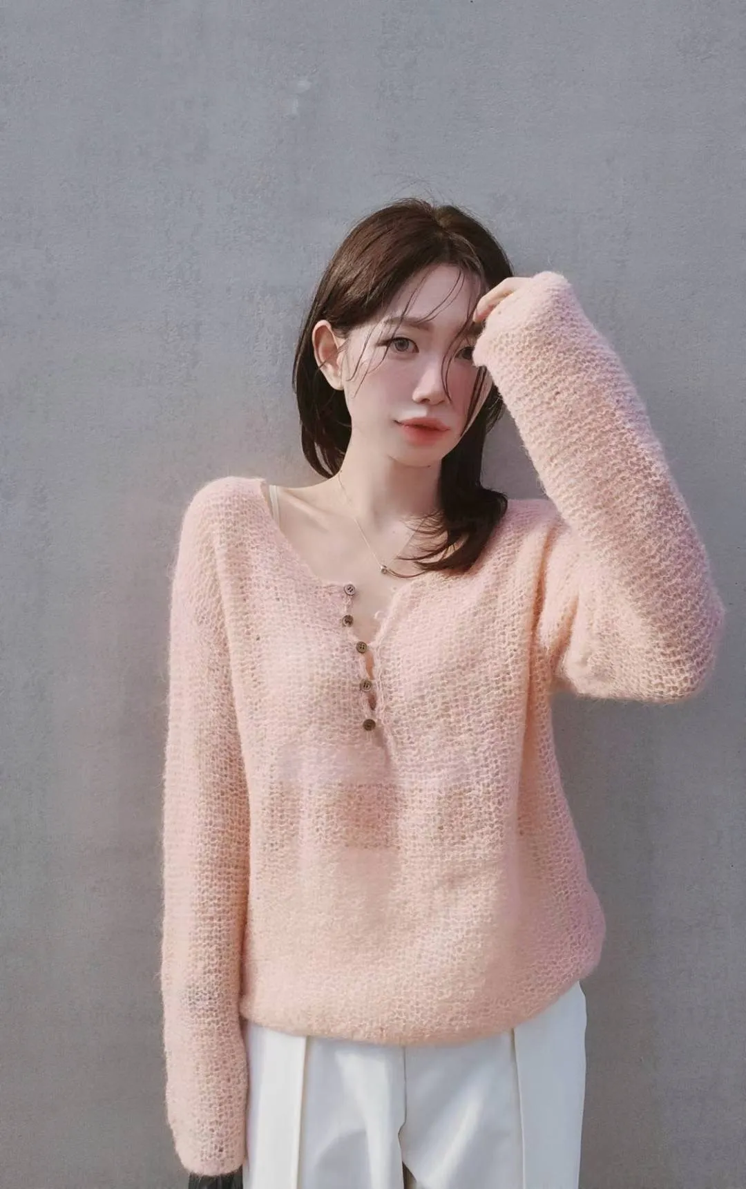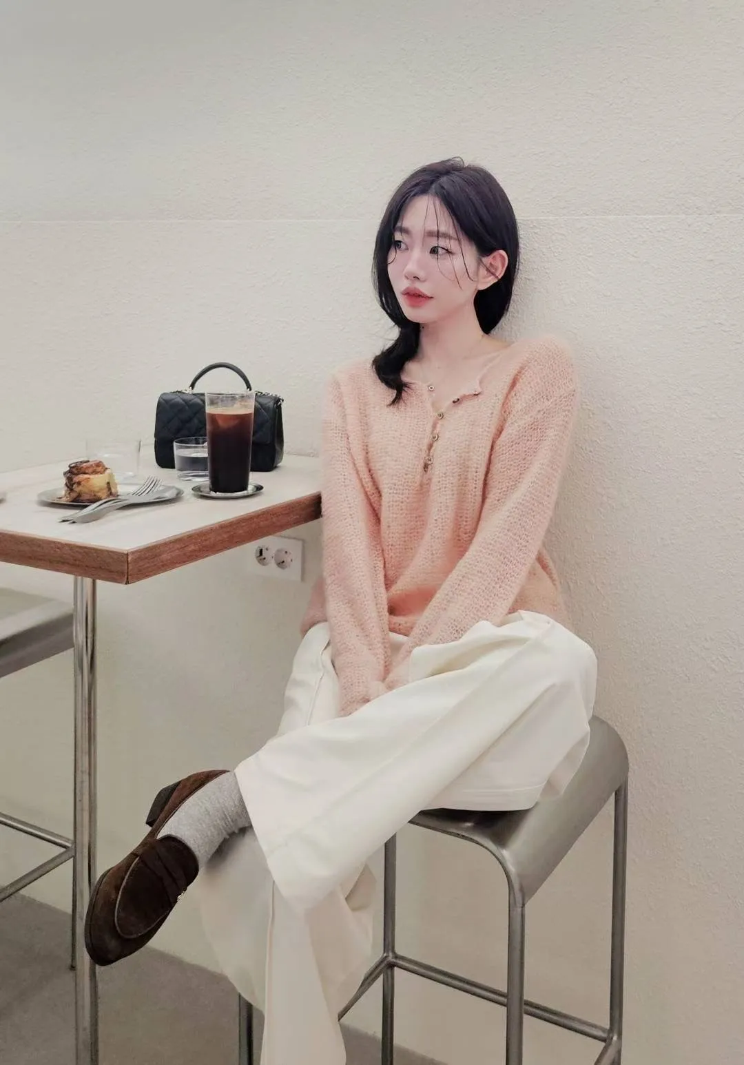 半開襟亨利領設計,單穿或是疊搭都很適合的一款毛衣