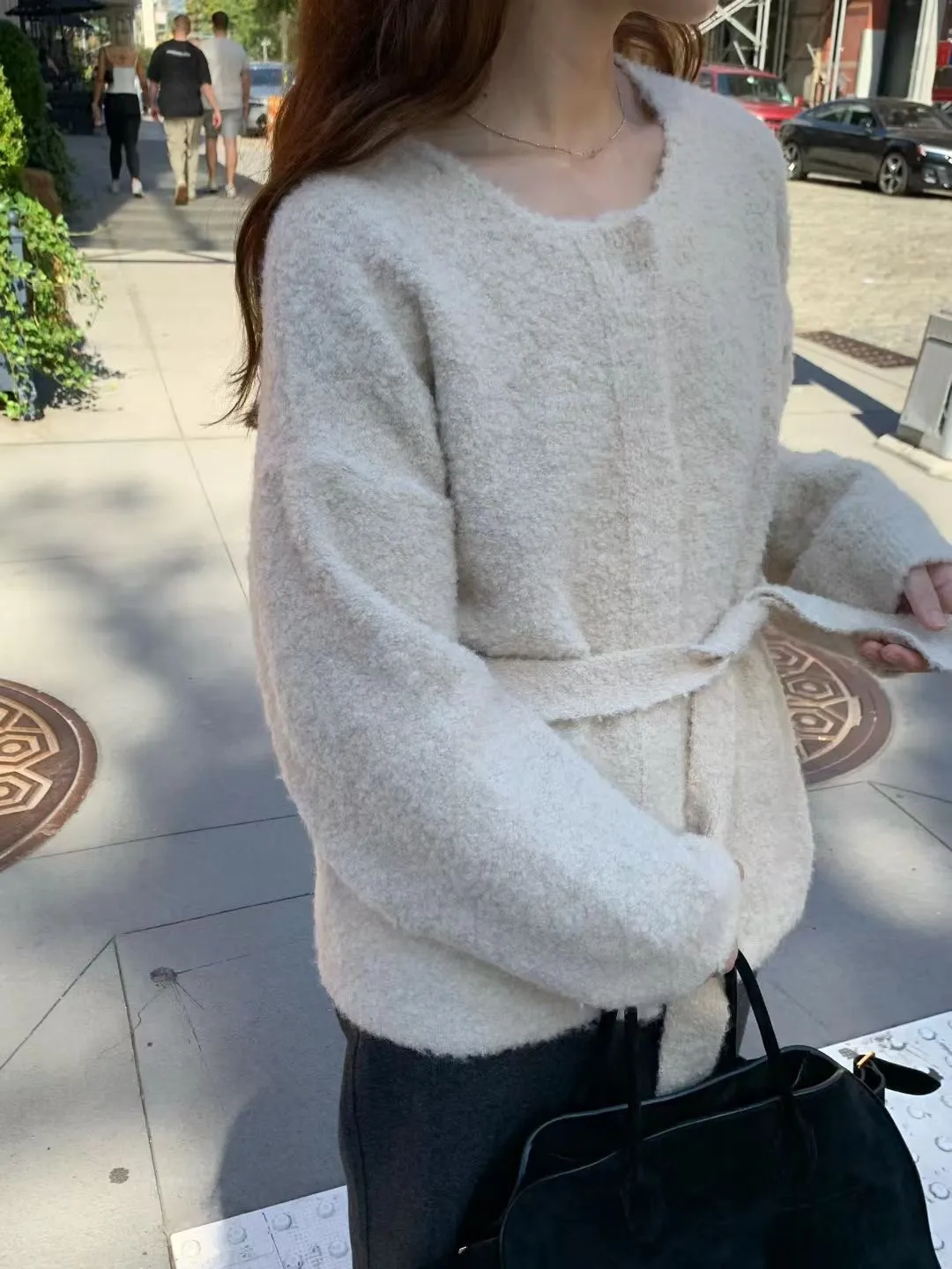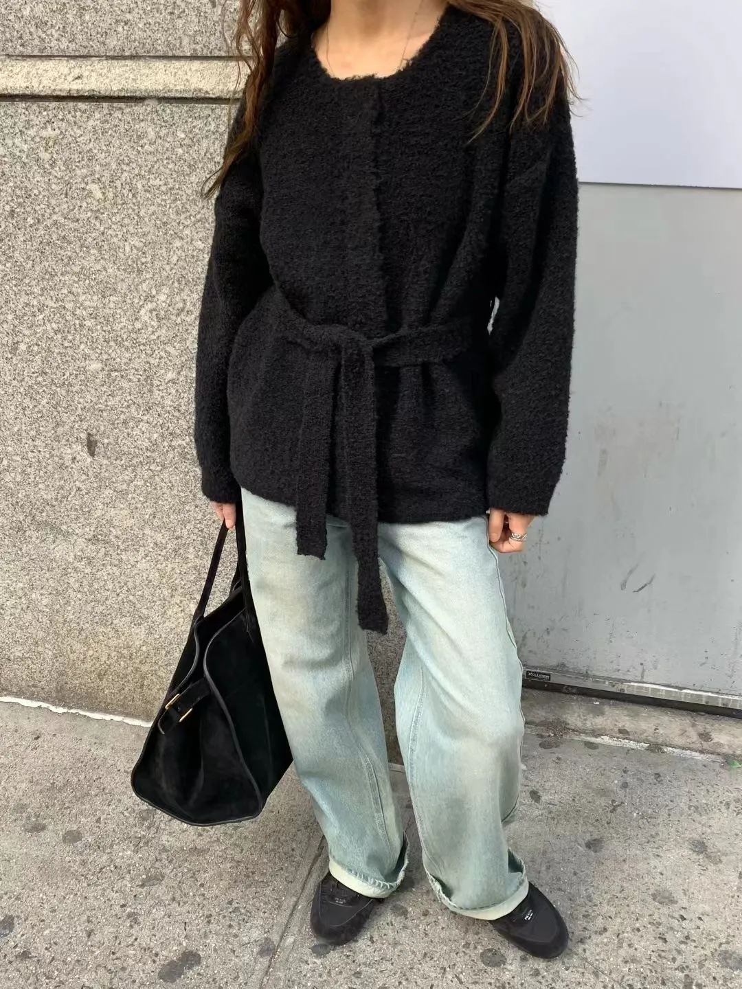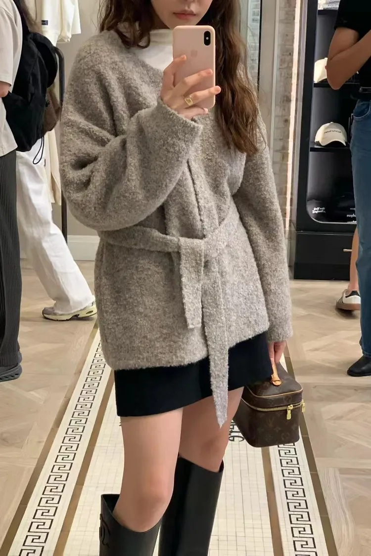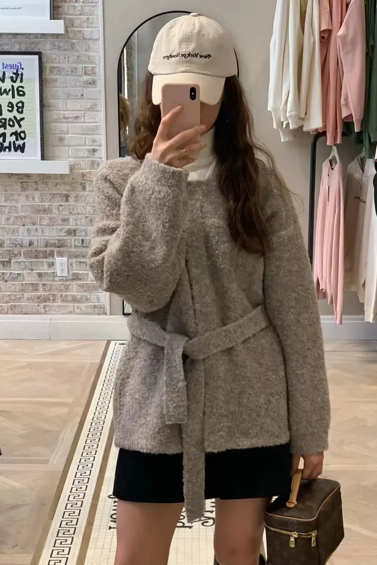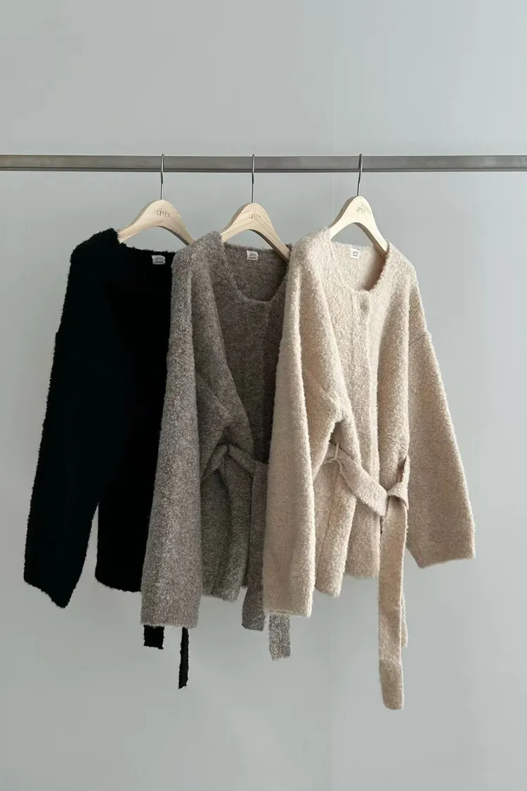 N01溫柔小姊姊綁帶羊毛開襟外套