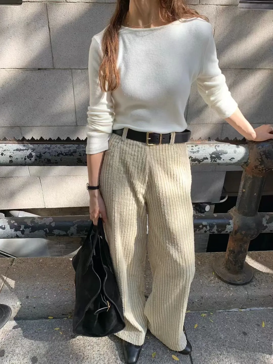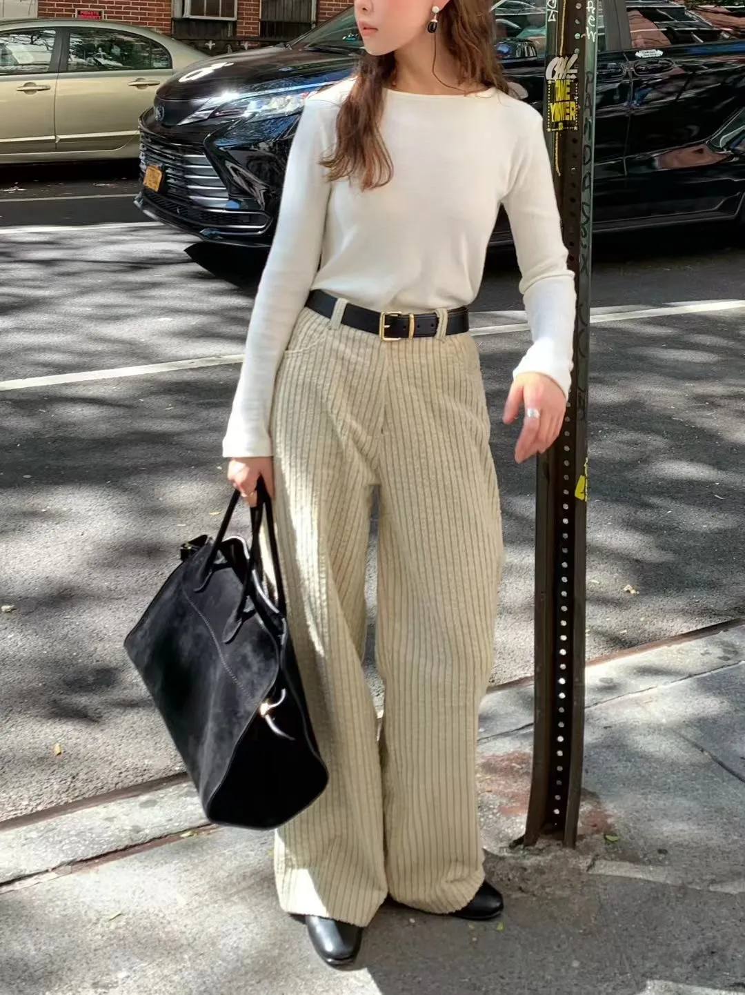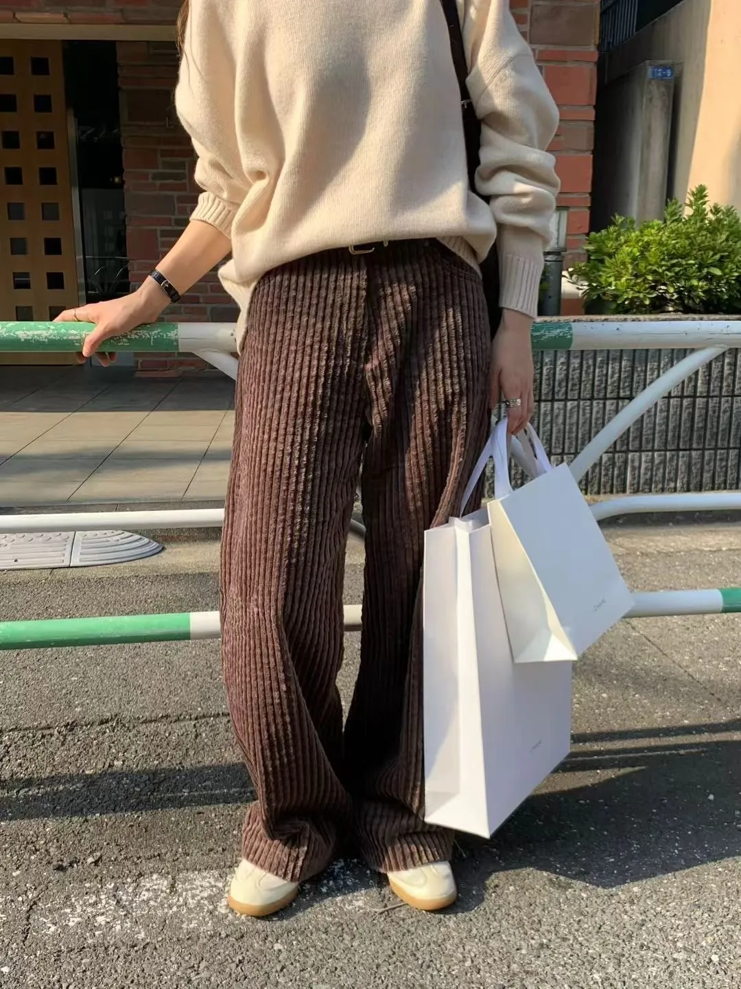 N07歐膩大推!粗燈芯絨小寬休閒長褲