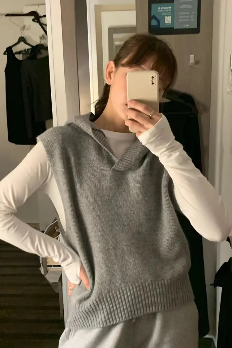 N08可單穿可當內搭的連帽針織背心