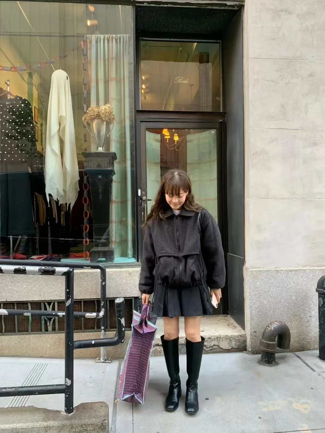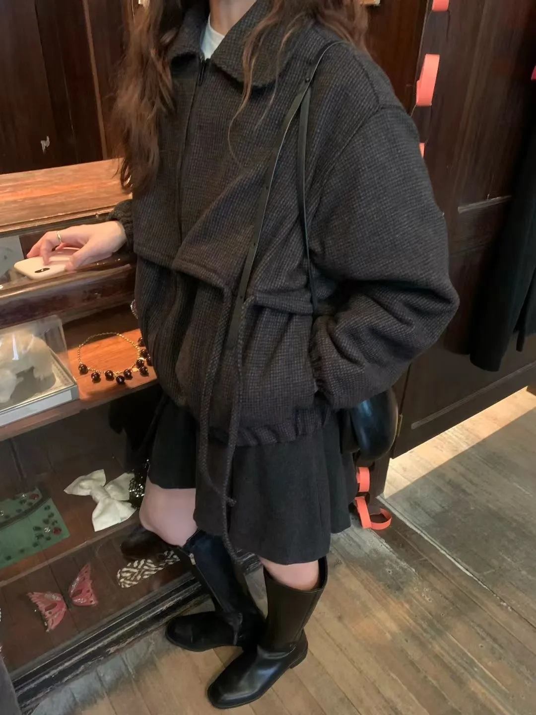 N25又甜又鹽的深巧克力色迷你格羊毛夾克外套