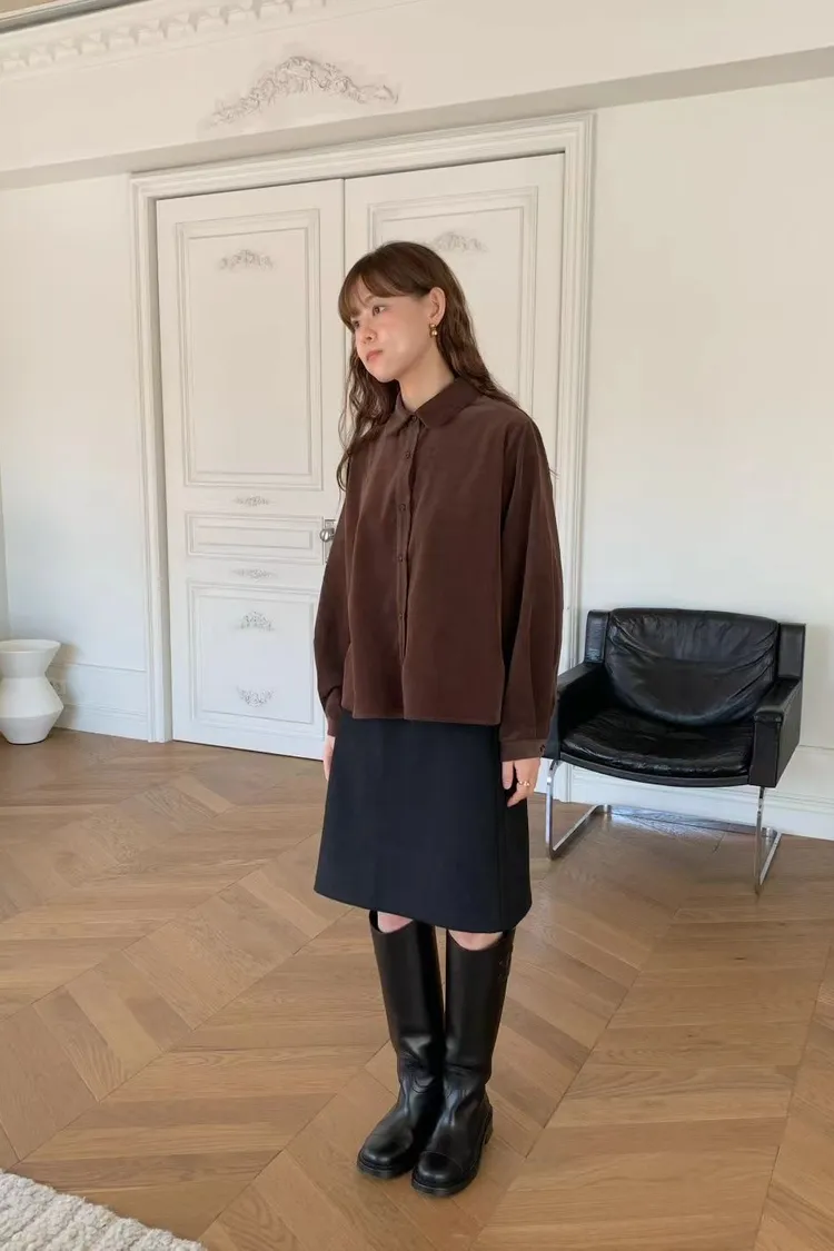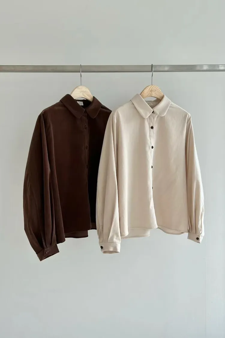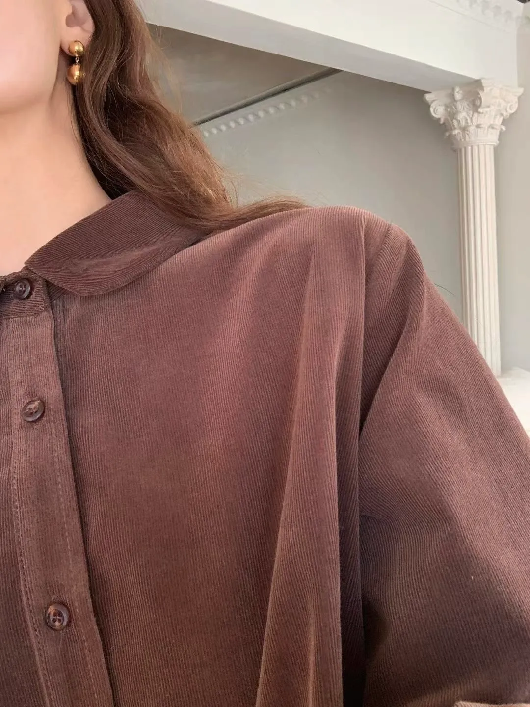N26細緻燈芯絨小圓領好質感長袖襯衫