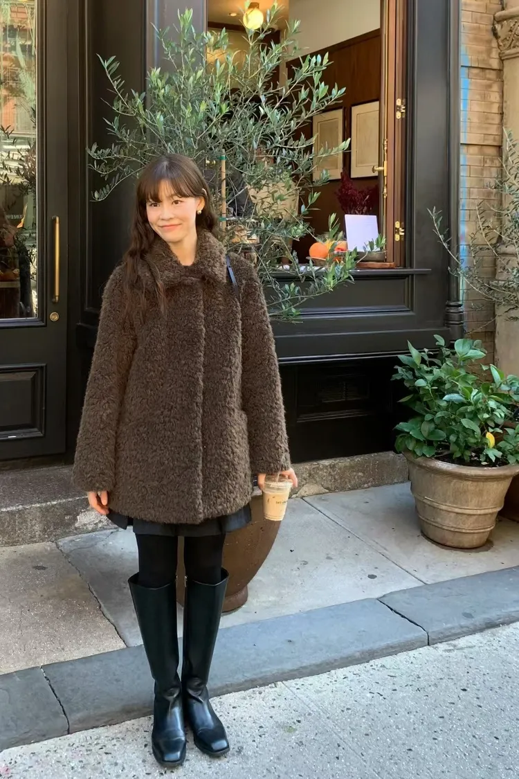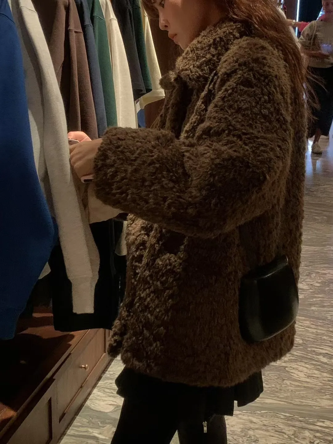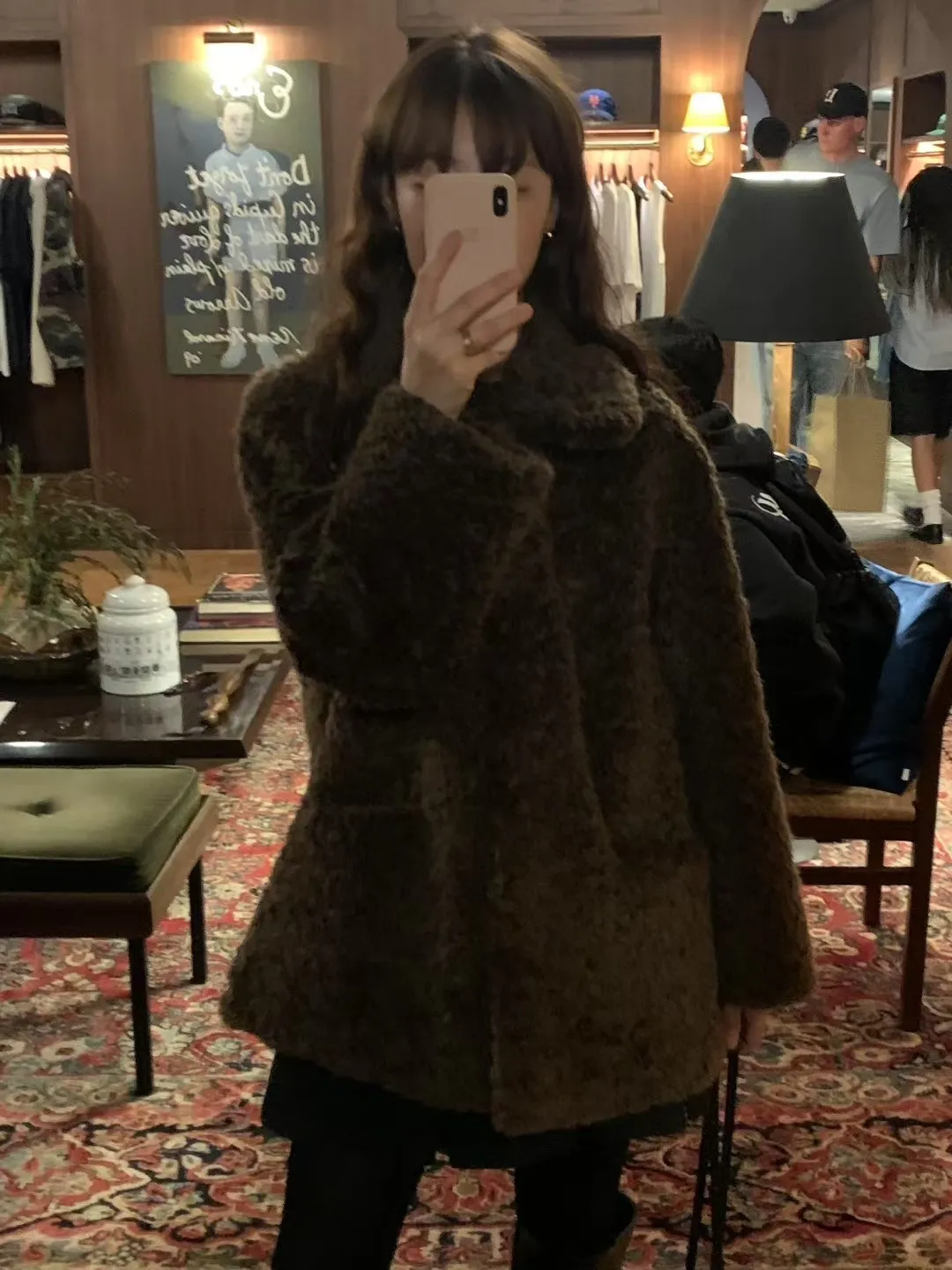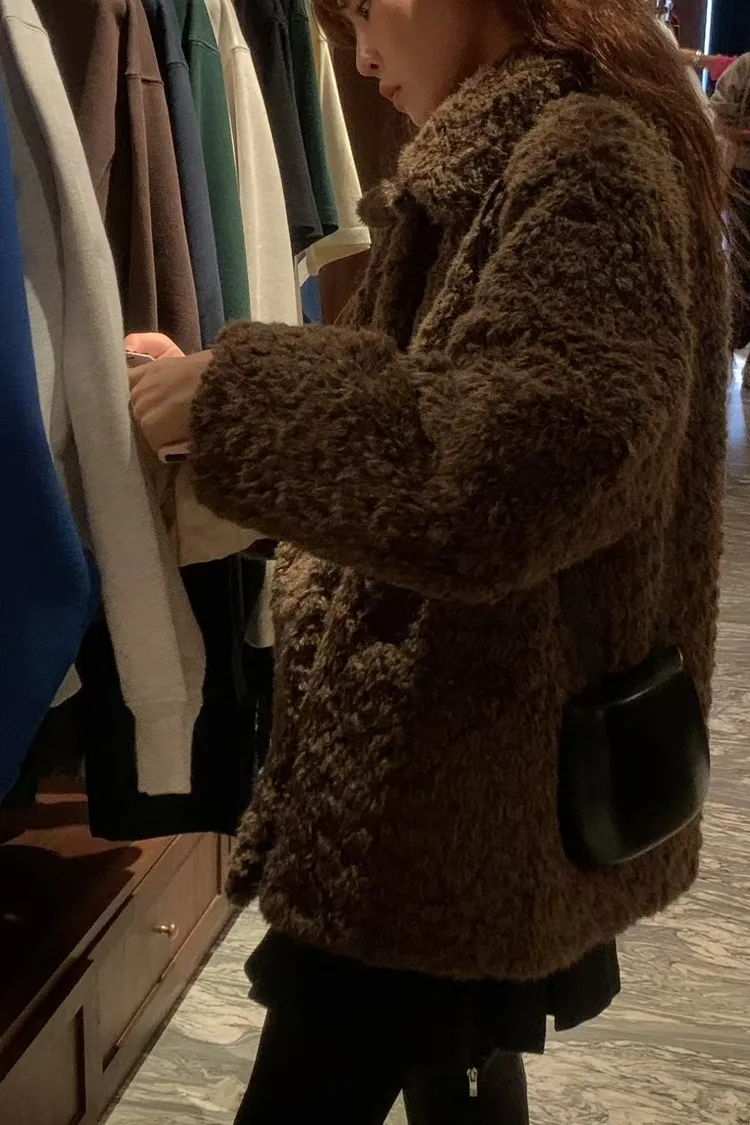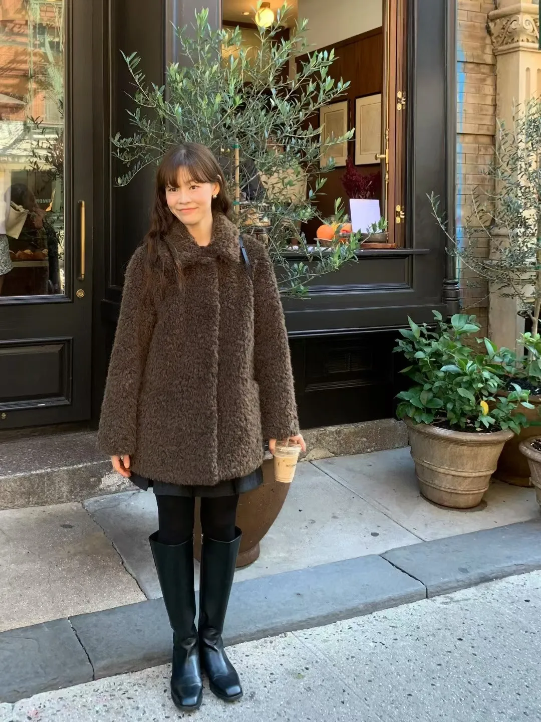 N32冬季氛圍感滿滿巧克力色熊熊大衣