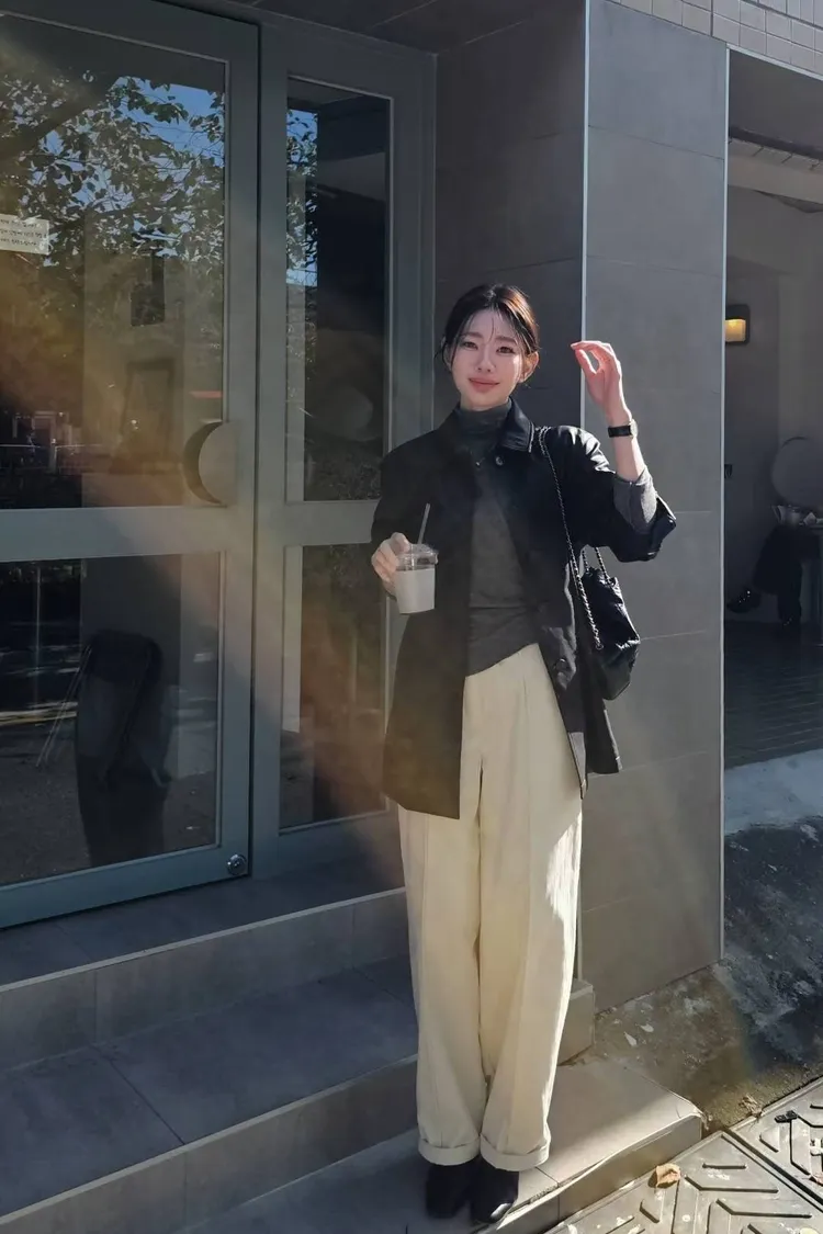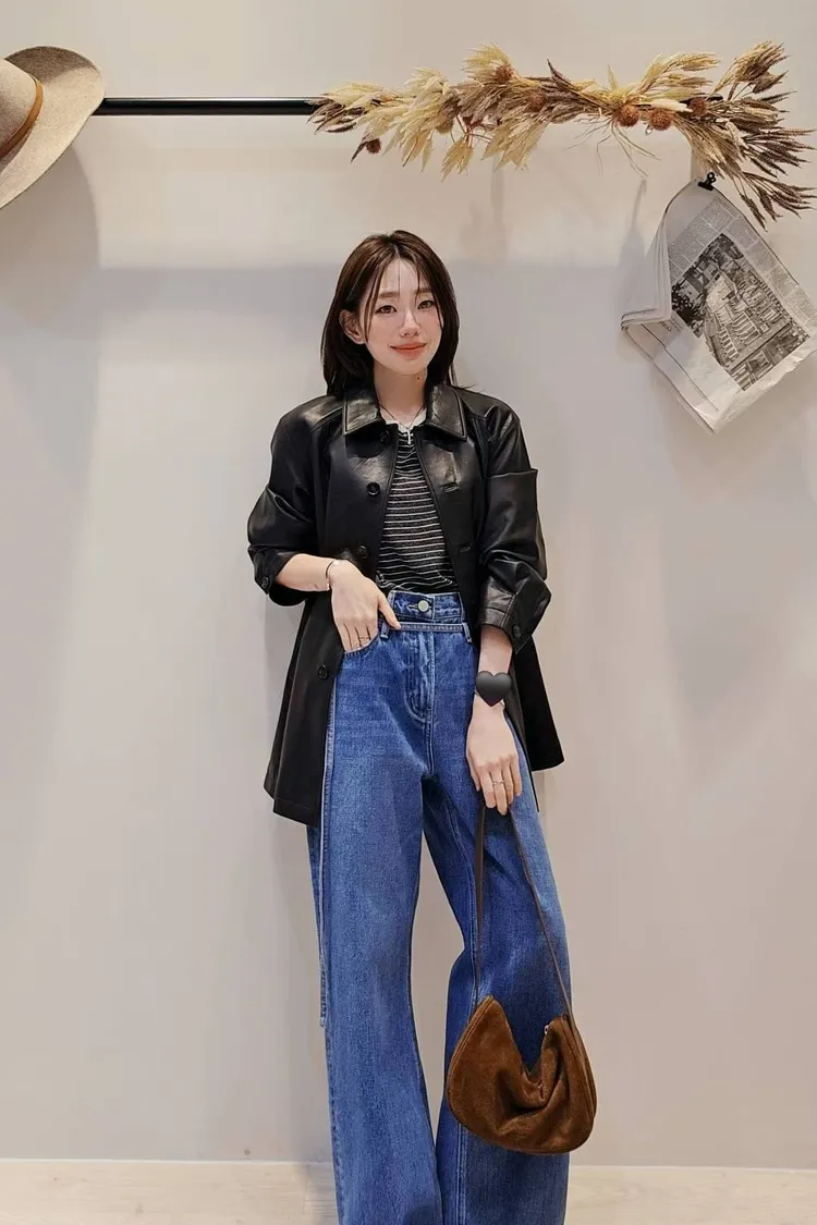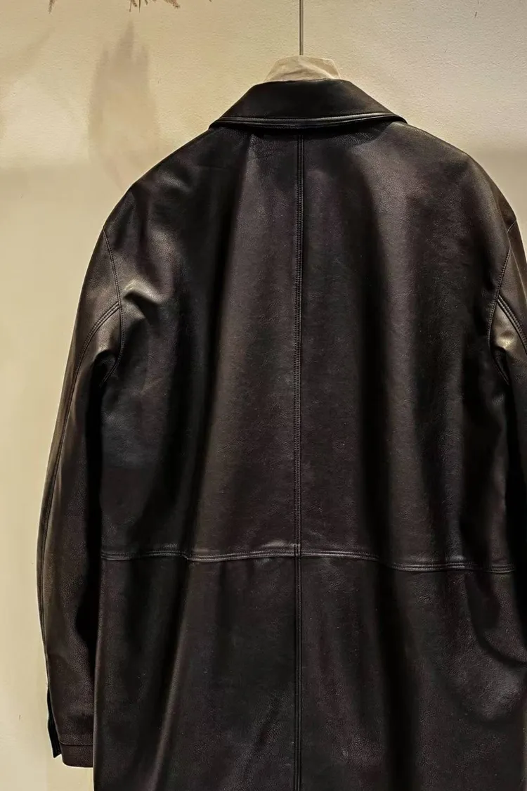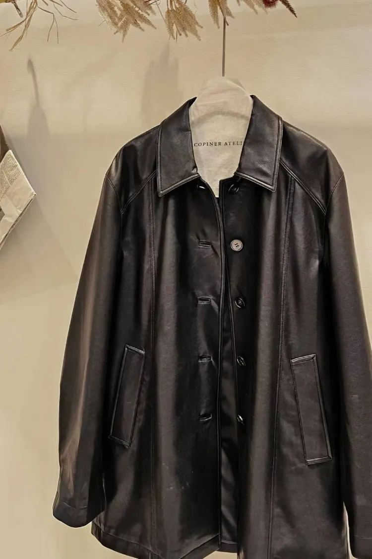 N45極簡黑率性俐落仿皮革長夾克