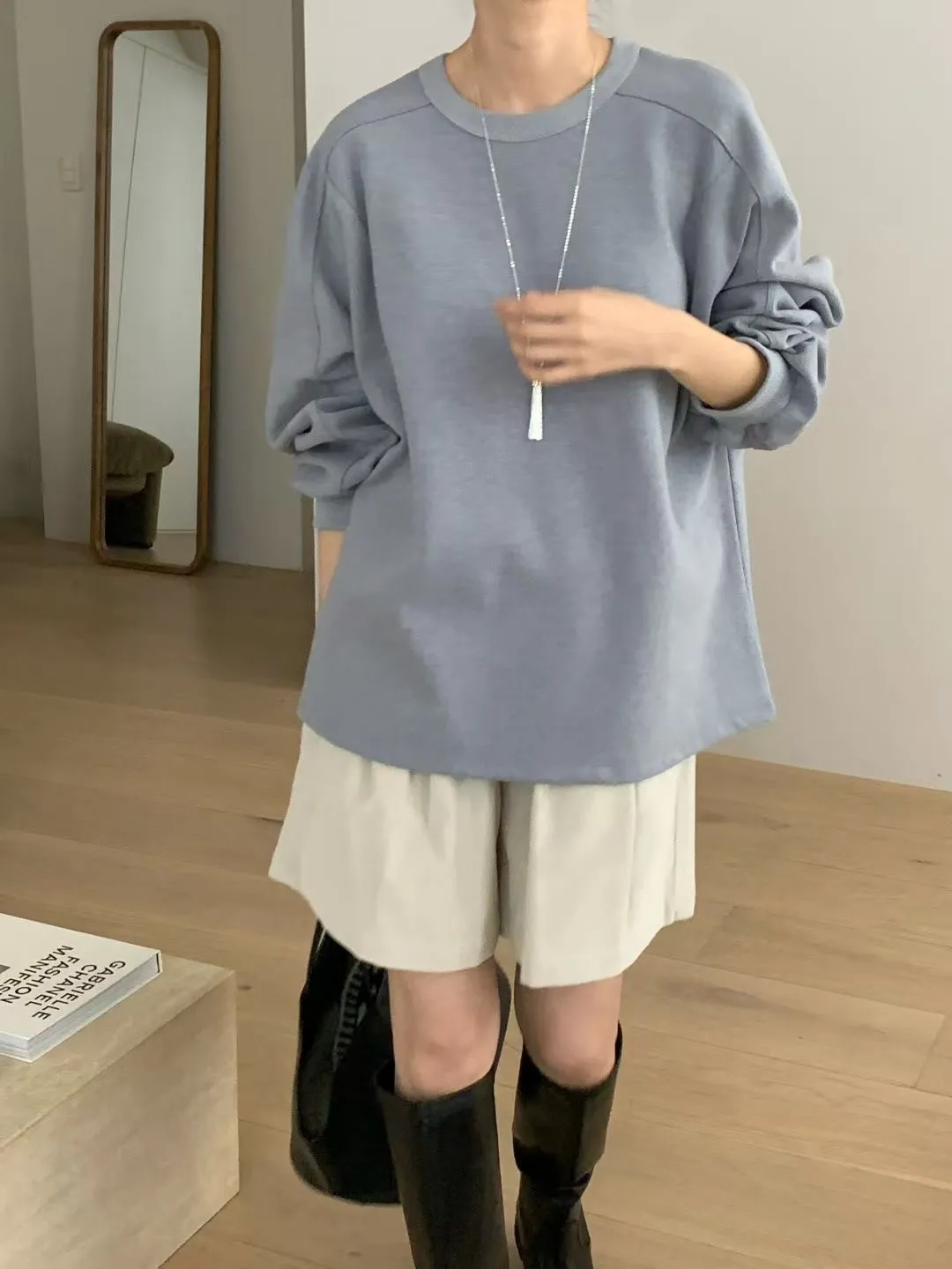 N62簡約好搭的立體袖口設計大學T上衣