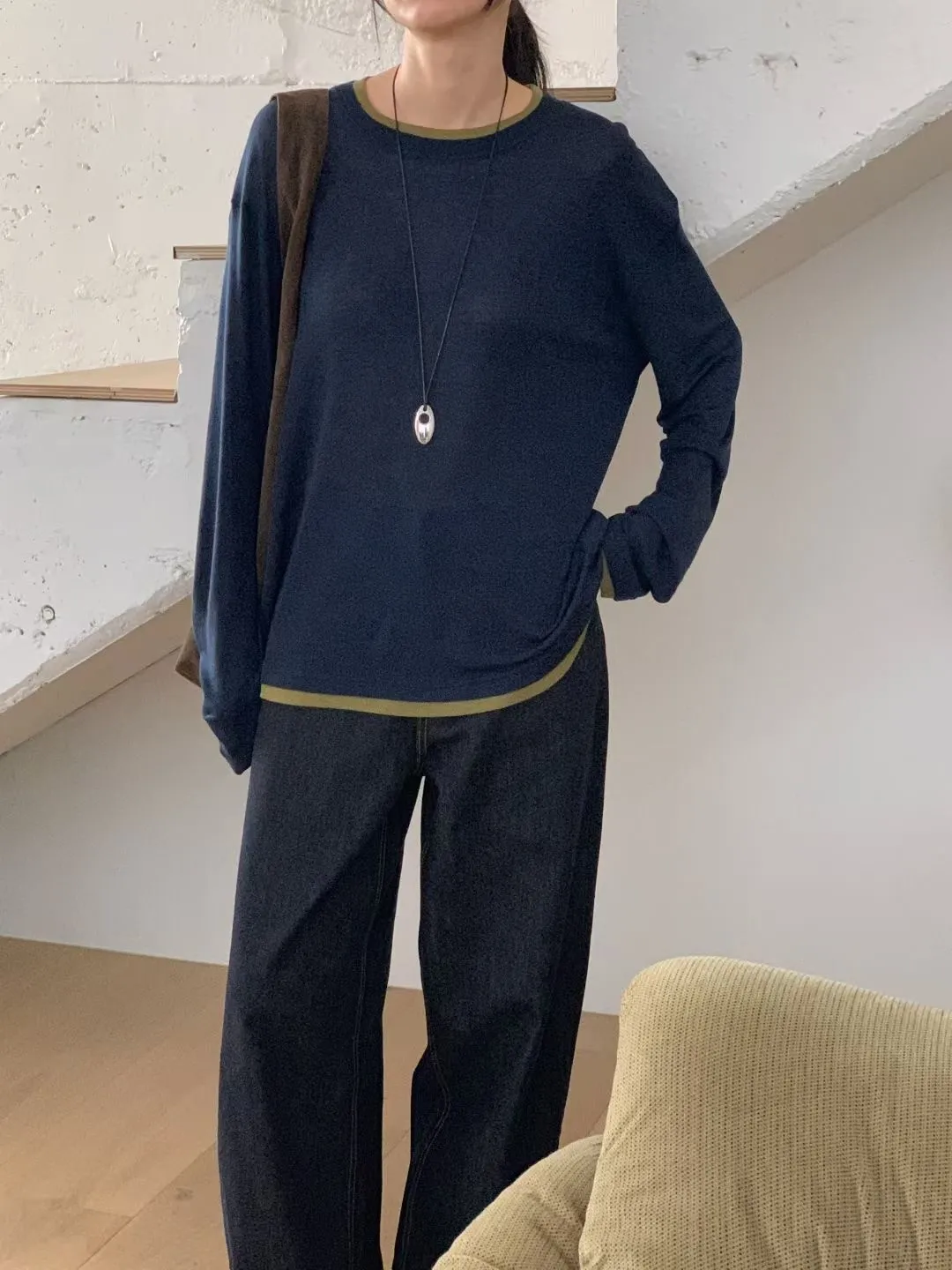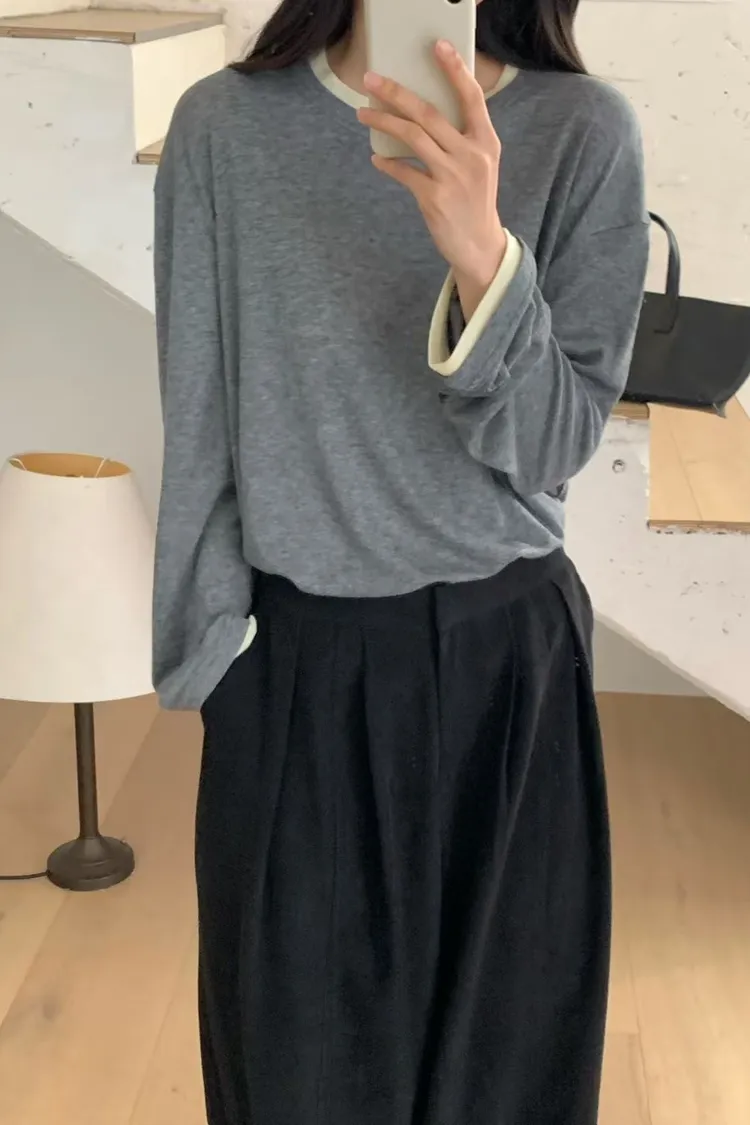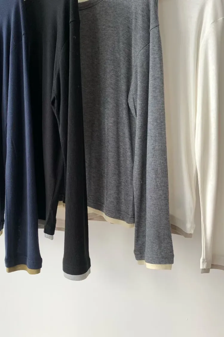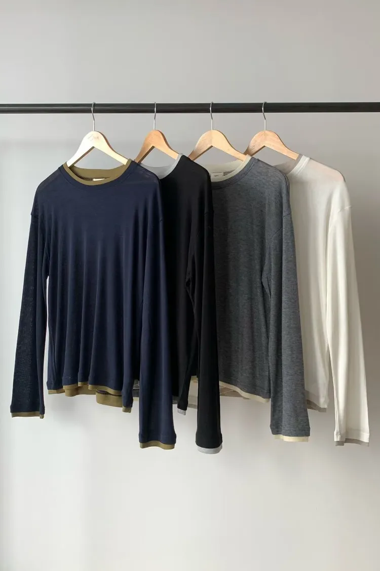N67店長大推!韓妞層次穿搭假二件天絲羊毛長T