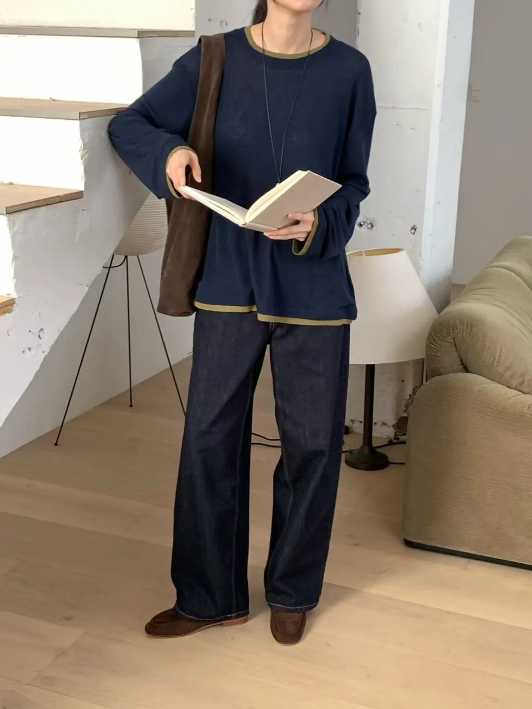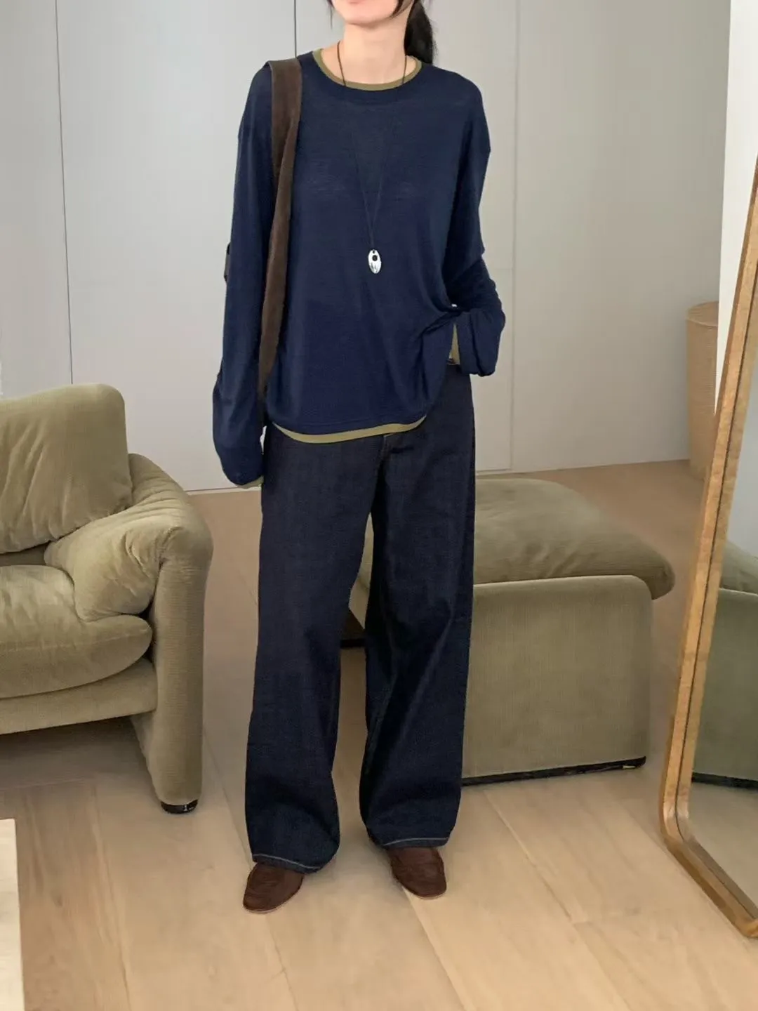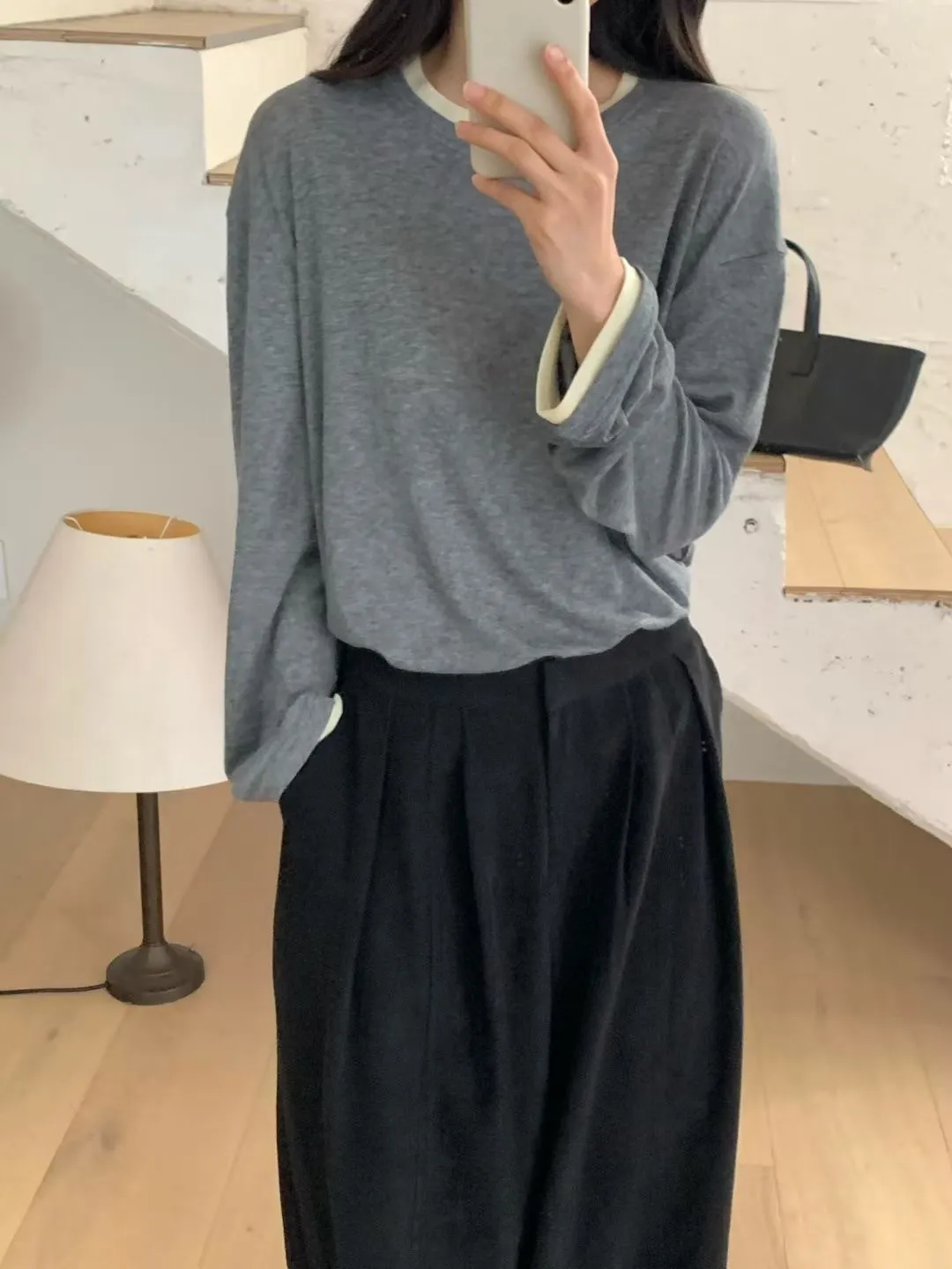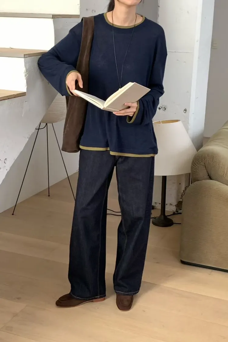 N67店長大推!韓妞層次穿搭假二件天絲羊毛長T