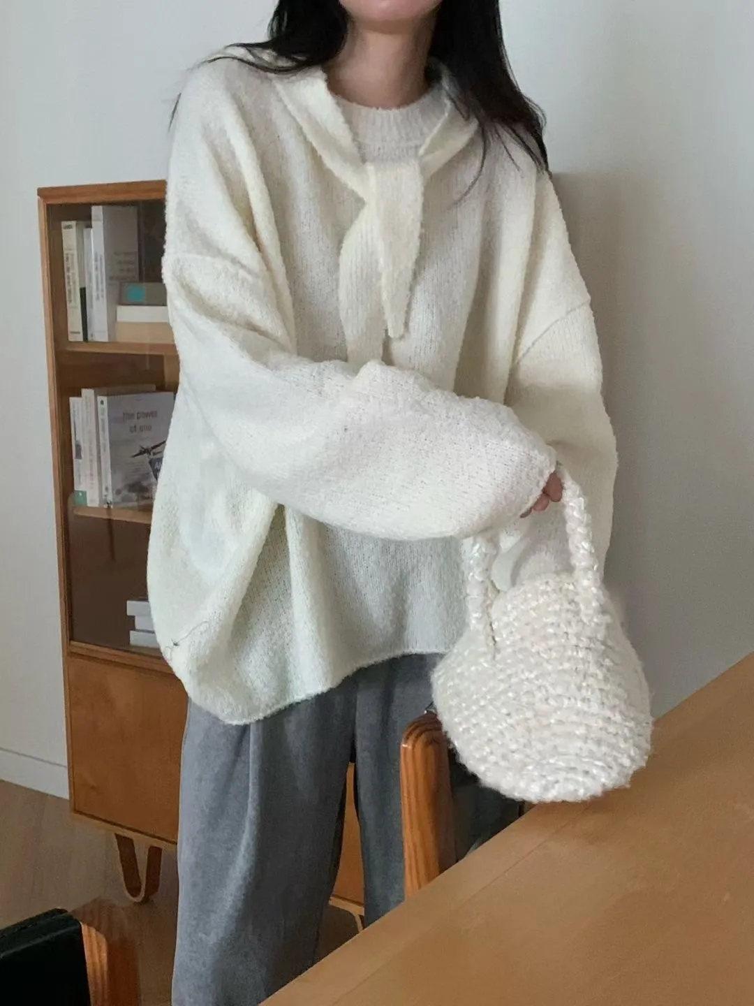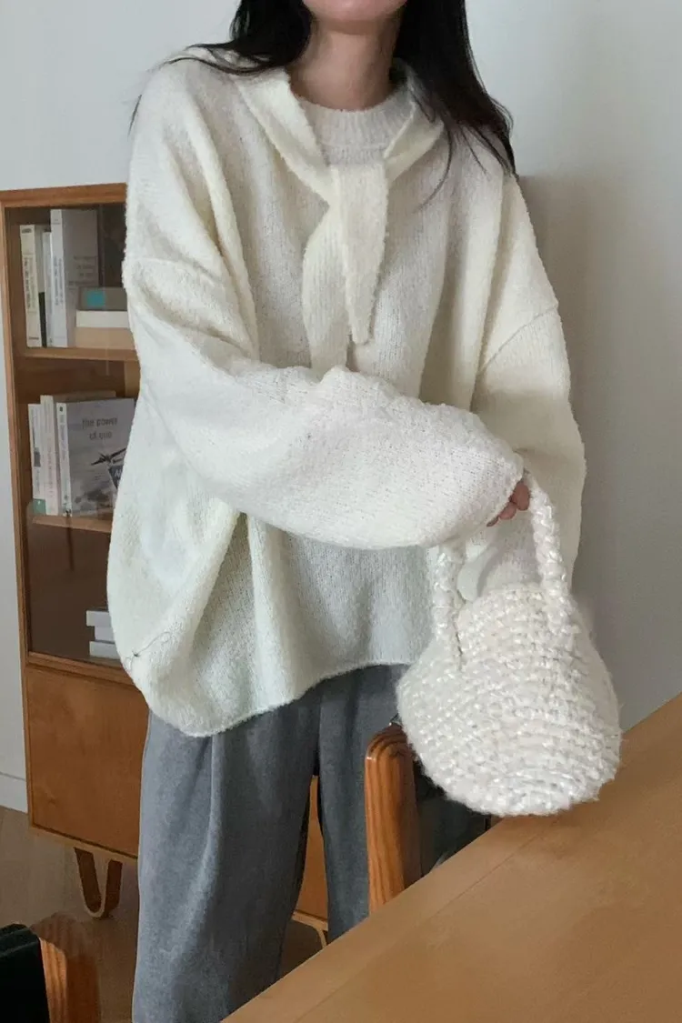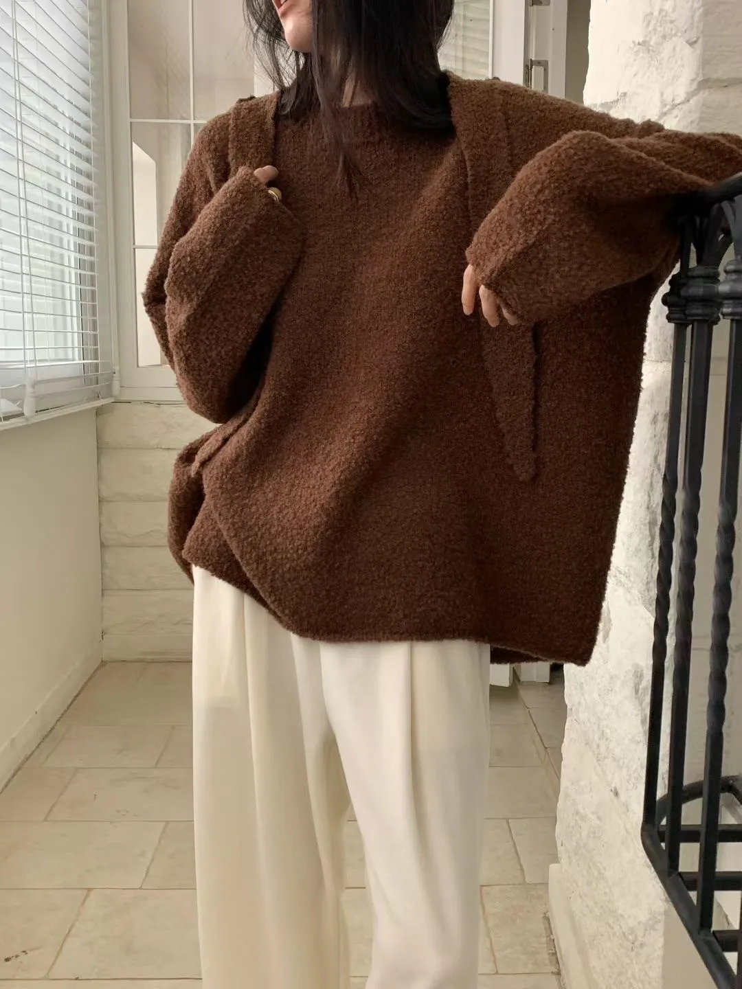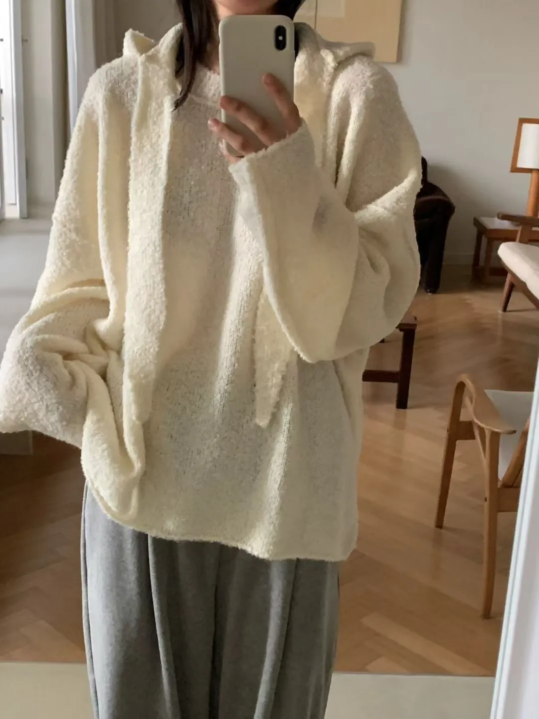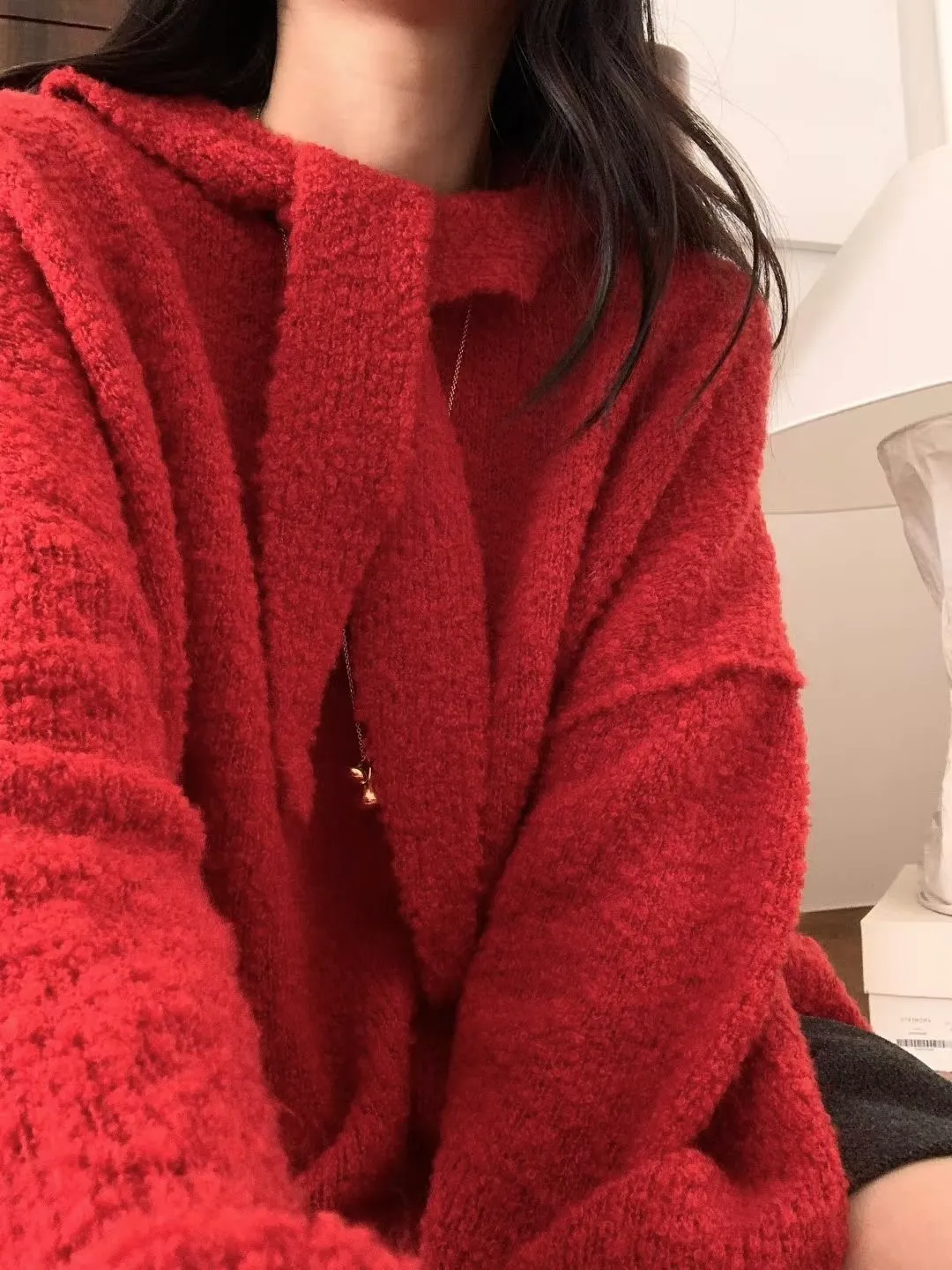 N71歐膩推薦的可愛羊毛毛衣/綁帶帽子二件套
