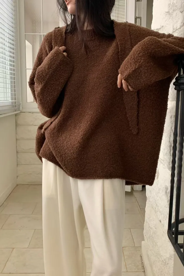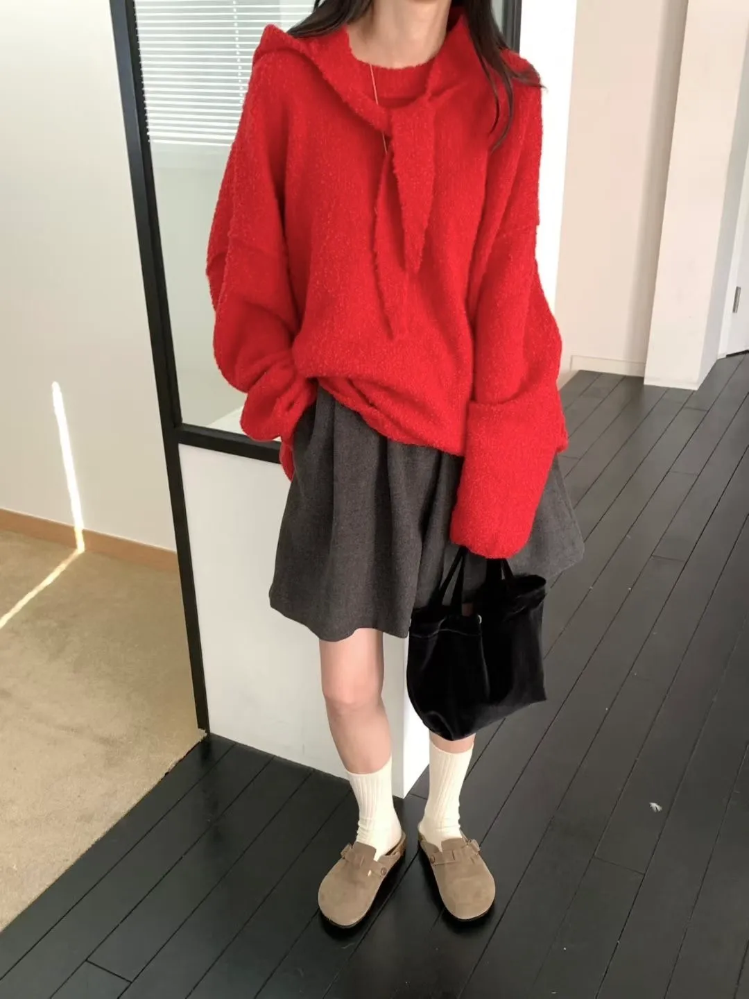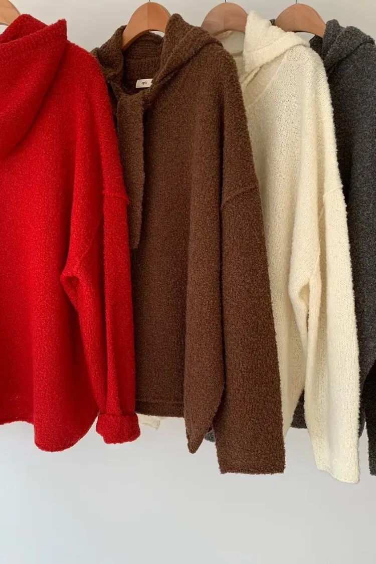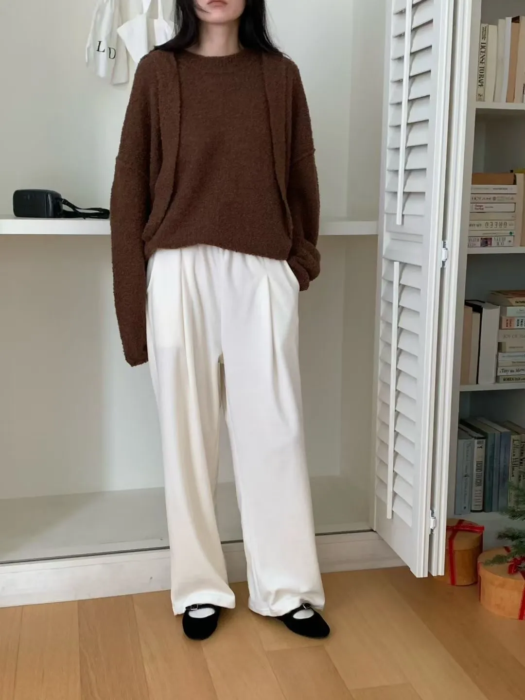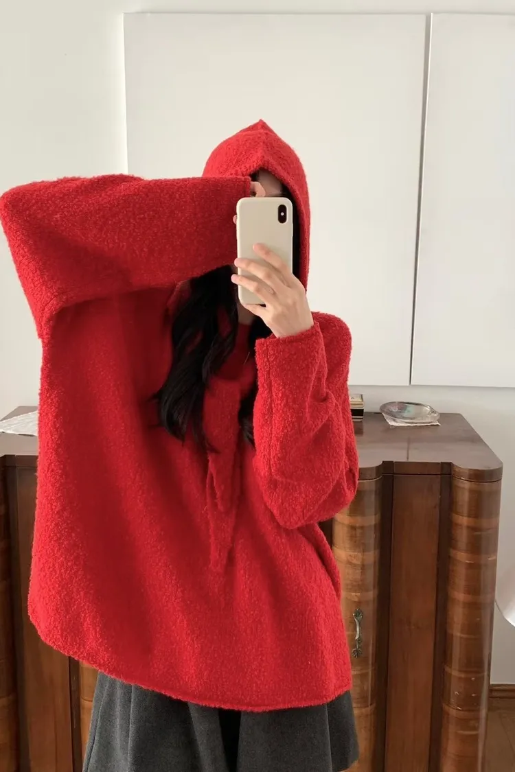 N71歐膩推薦的可愛羊毛毛衣/綁帶帽子二件套