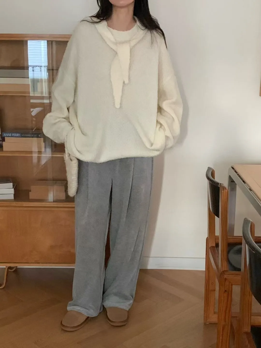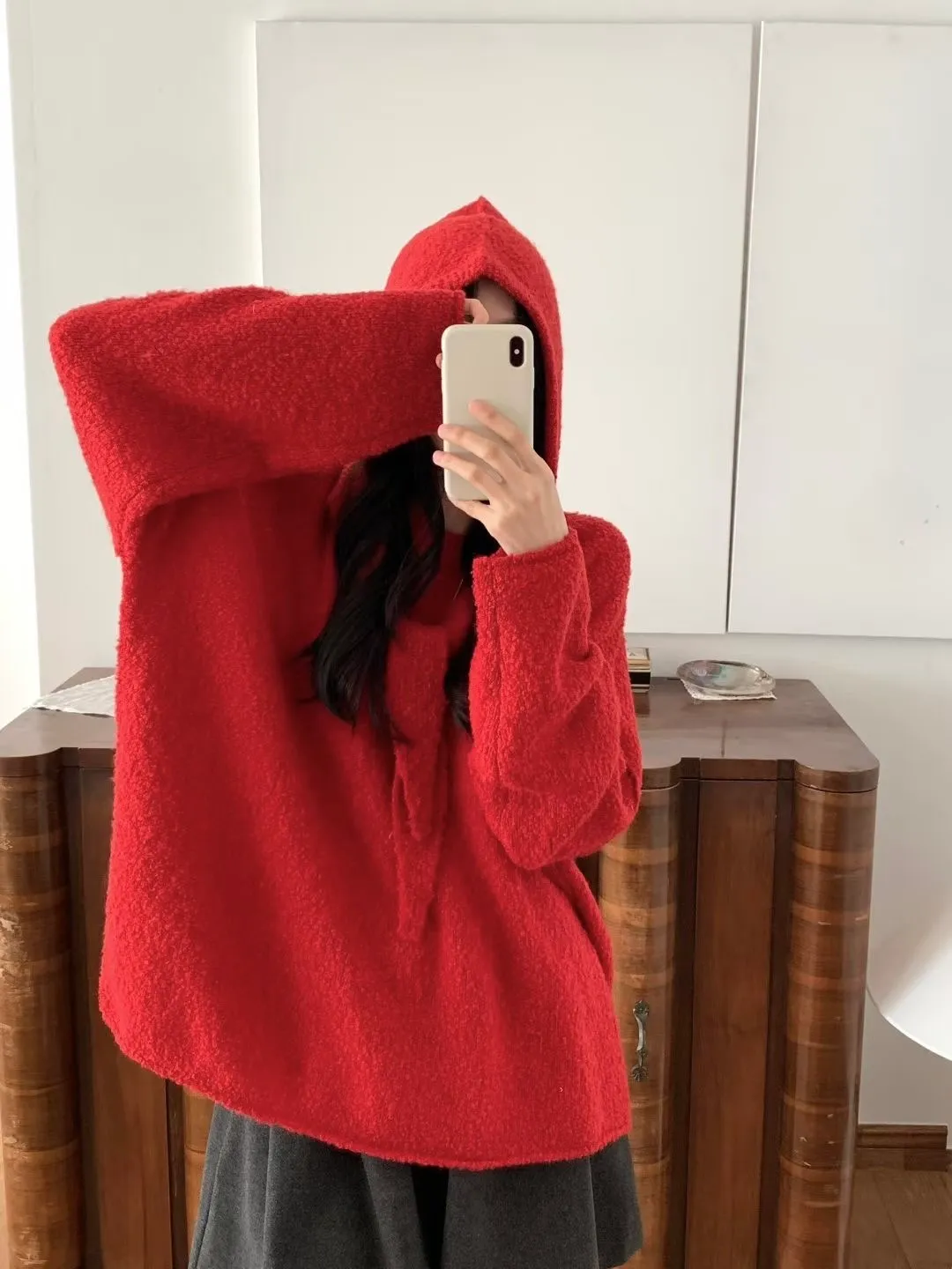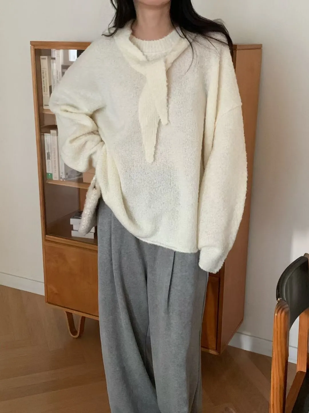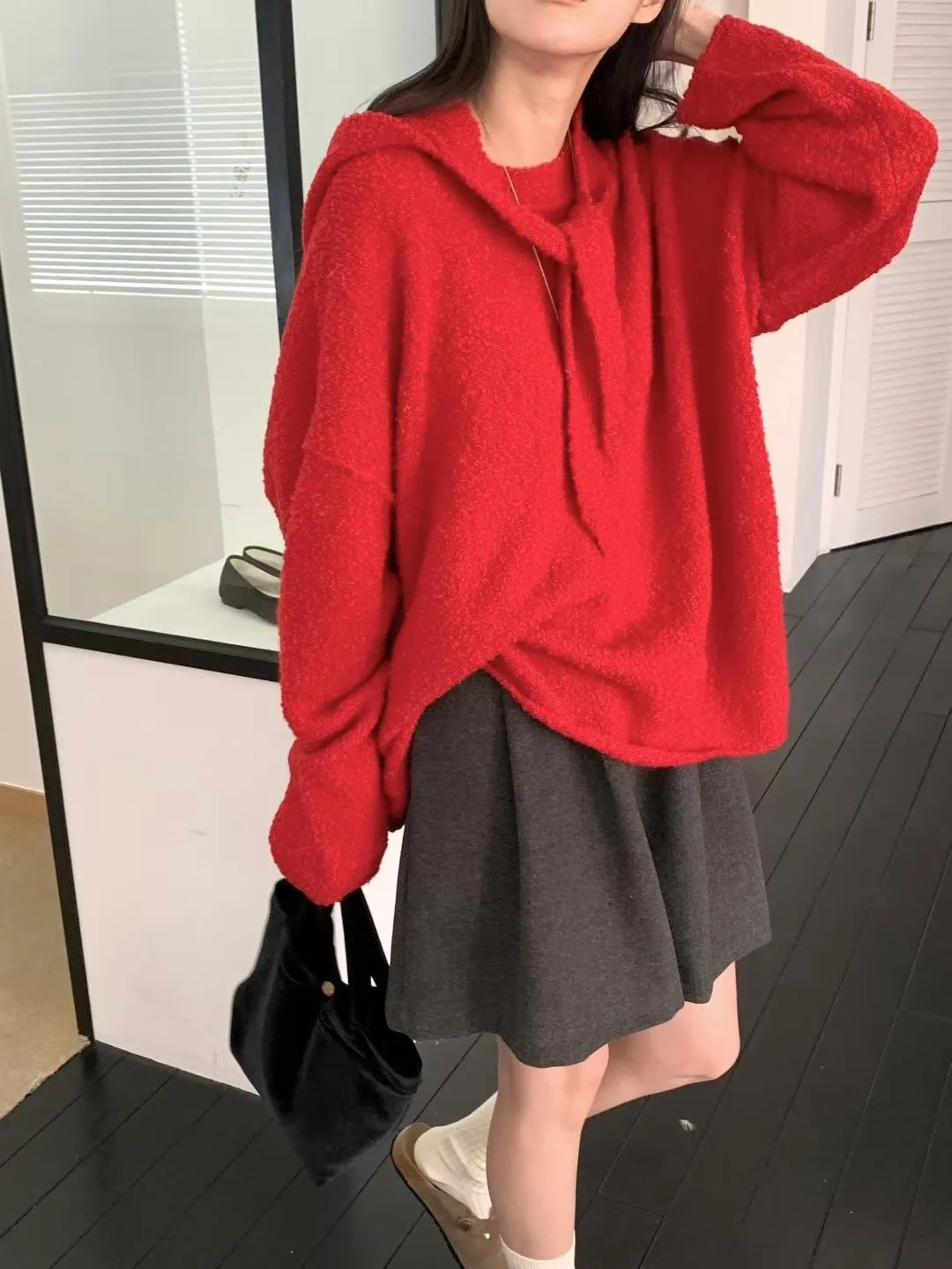 N71歐膩推薦的可愛羊毛毛衣/綁帶帽子二件套