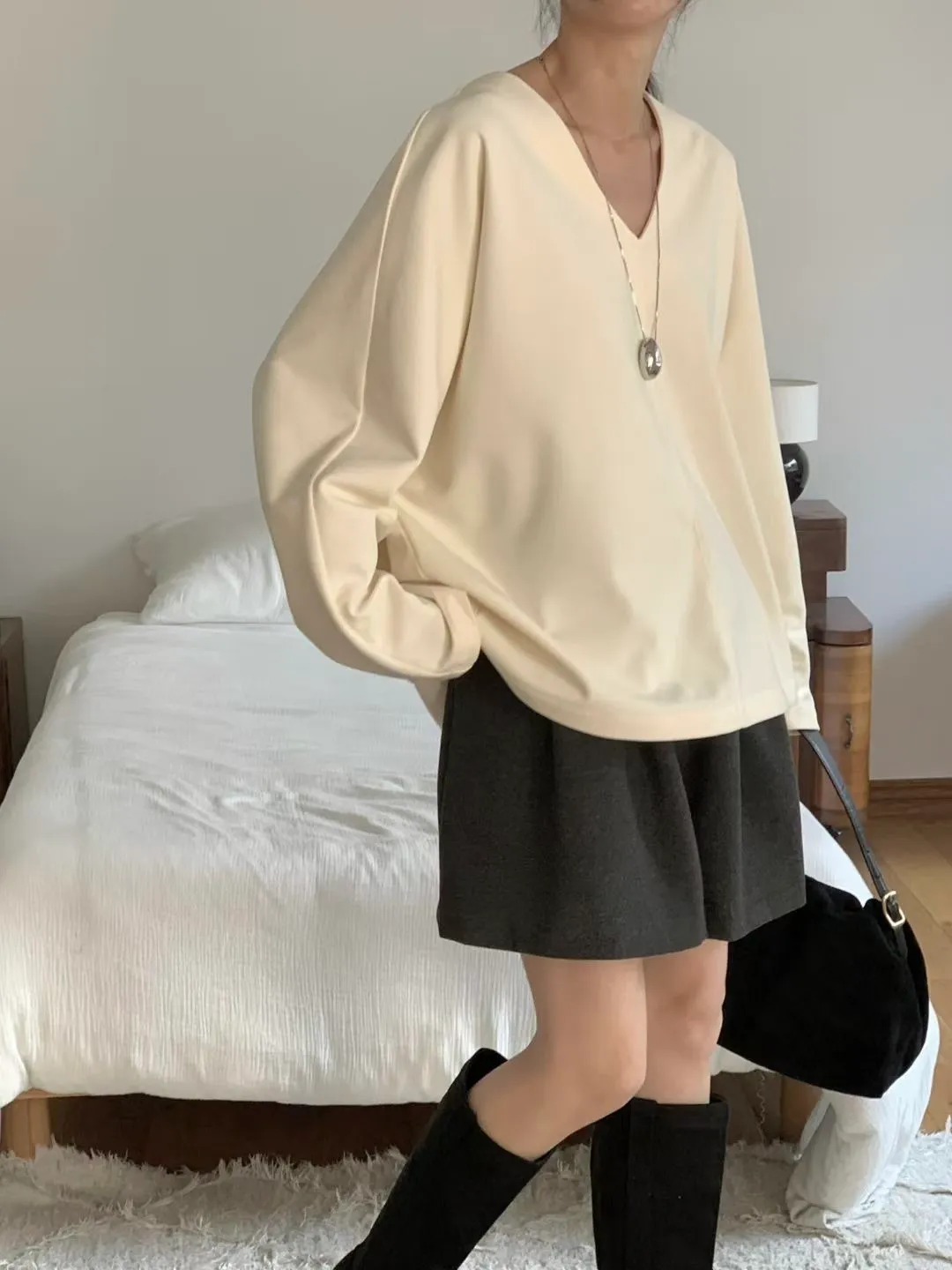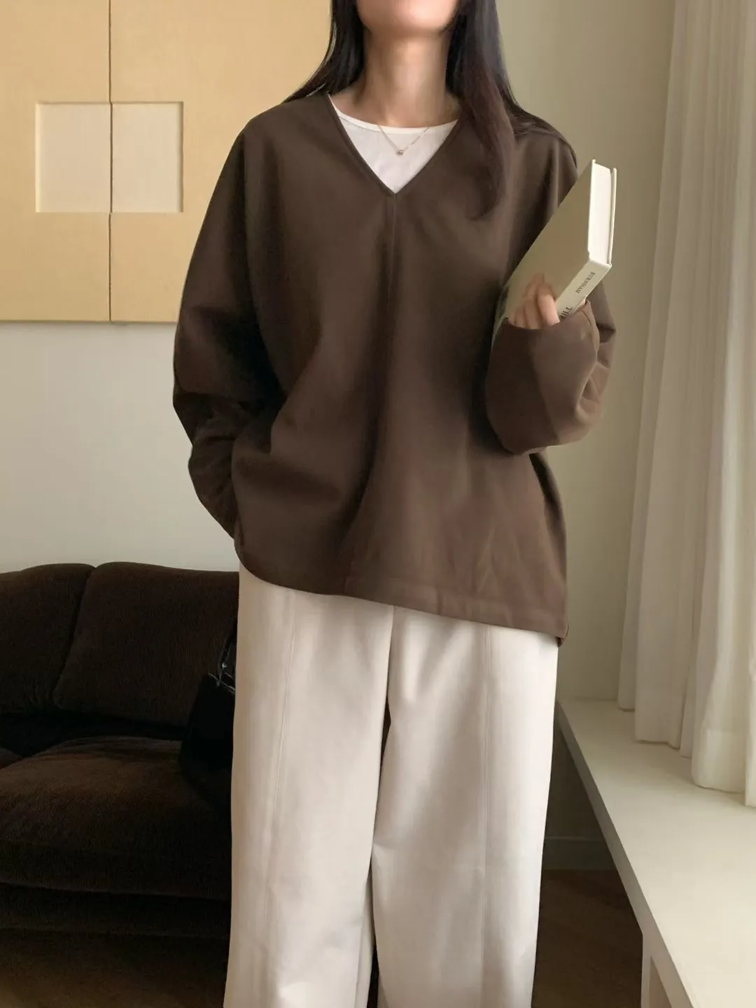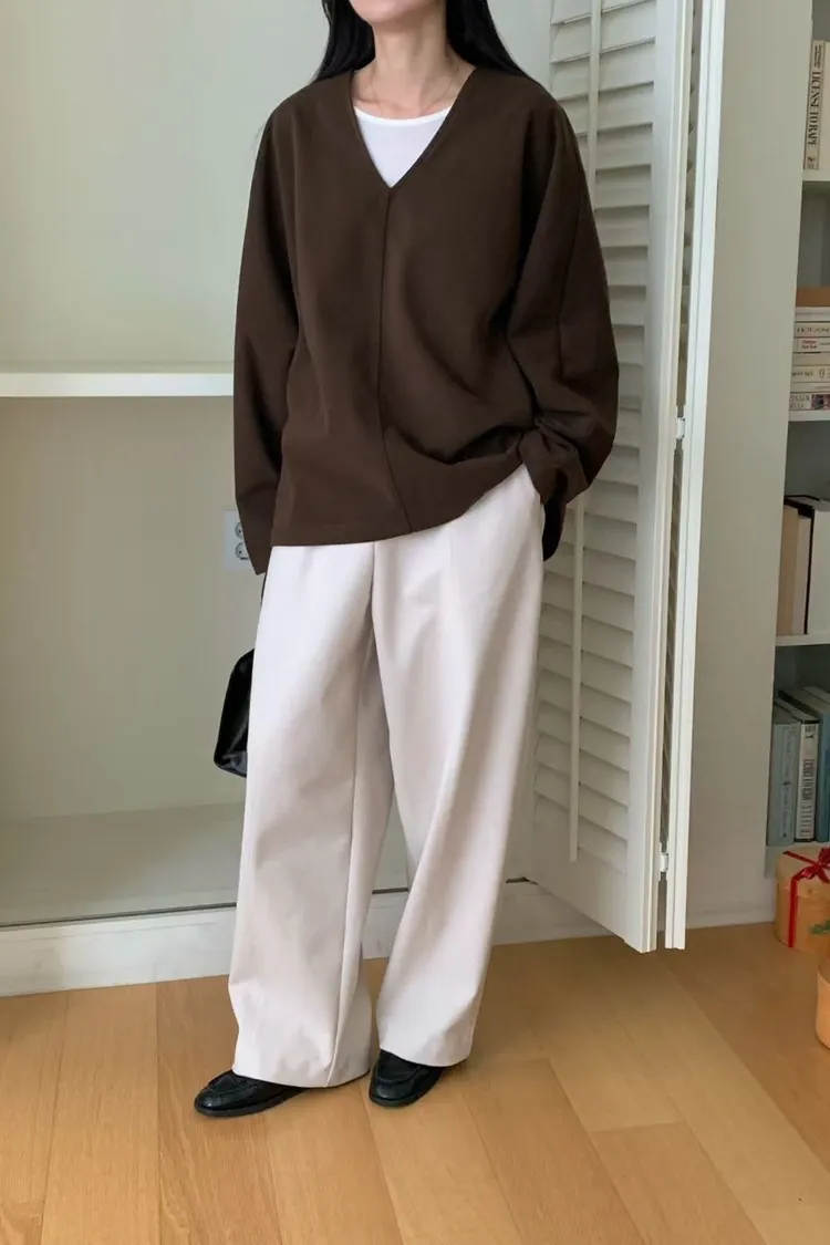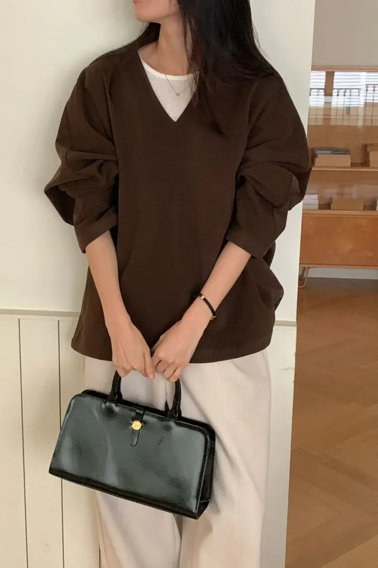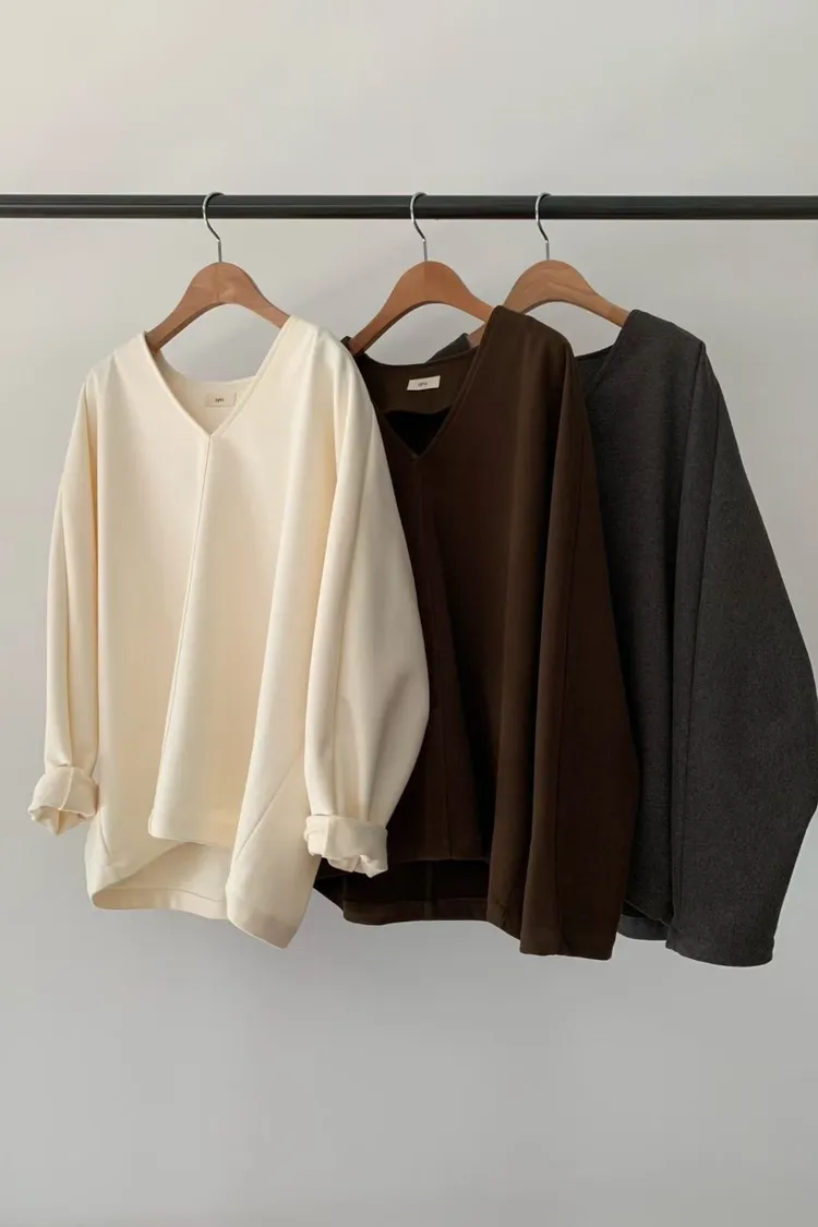 N72好質感簡約小女人V領設計長袖罩衫