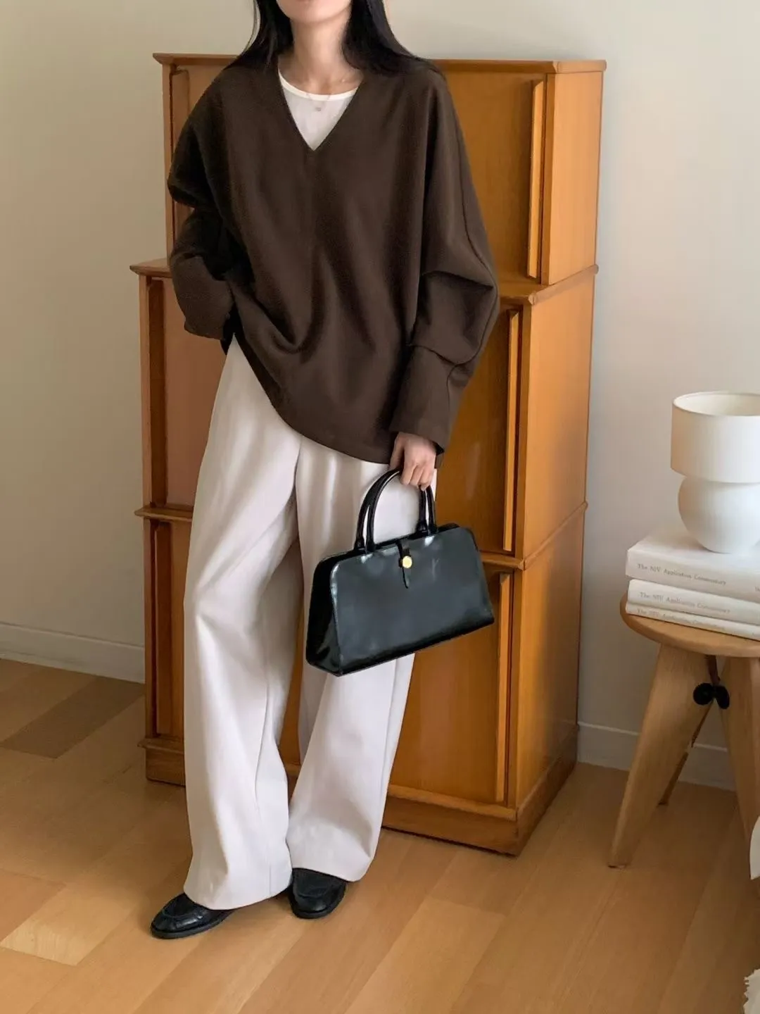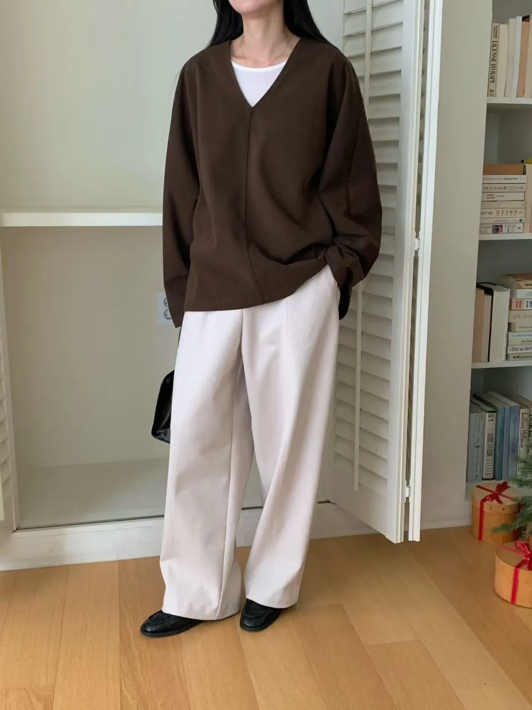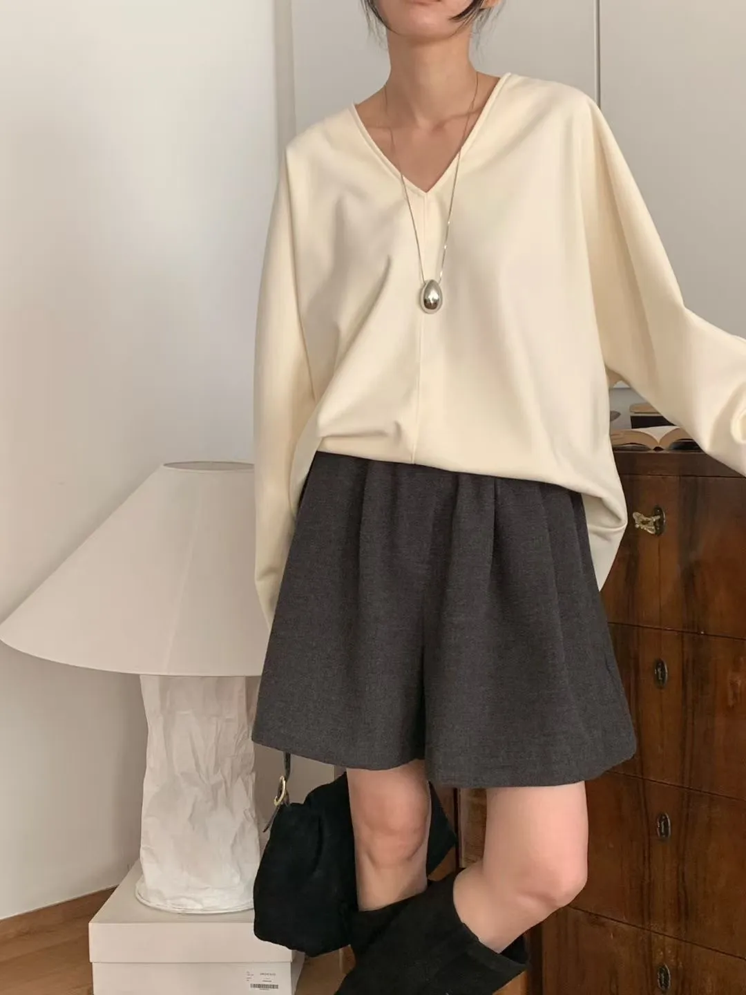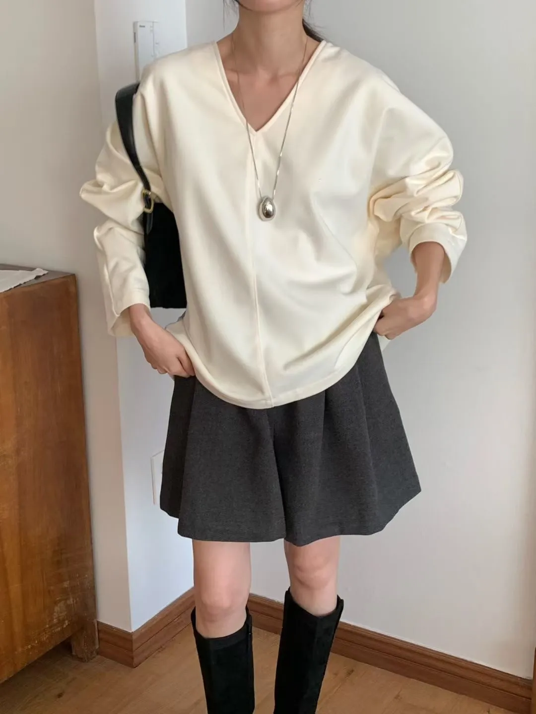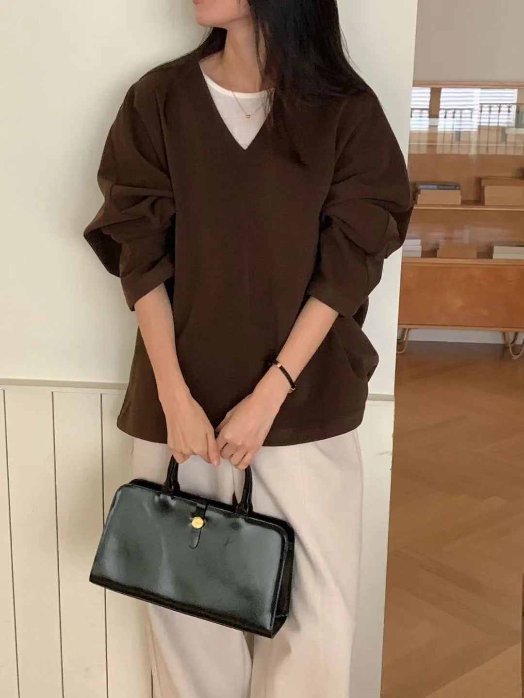 N72好質感簡約小女人V領設計長袖罩衫