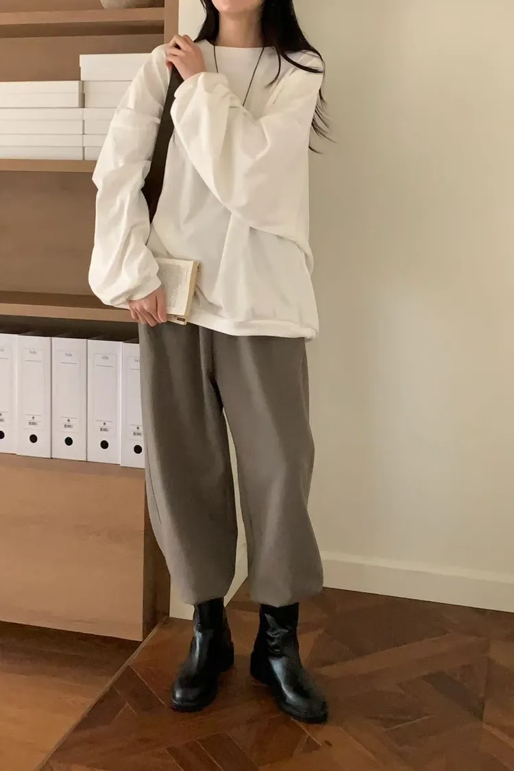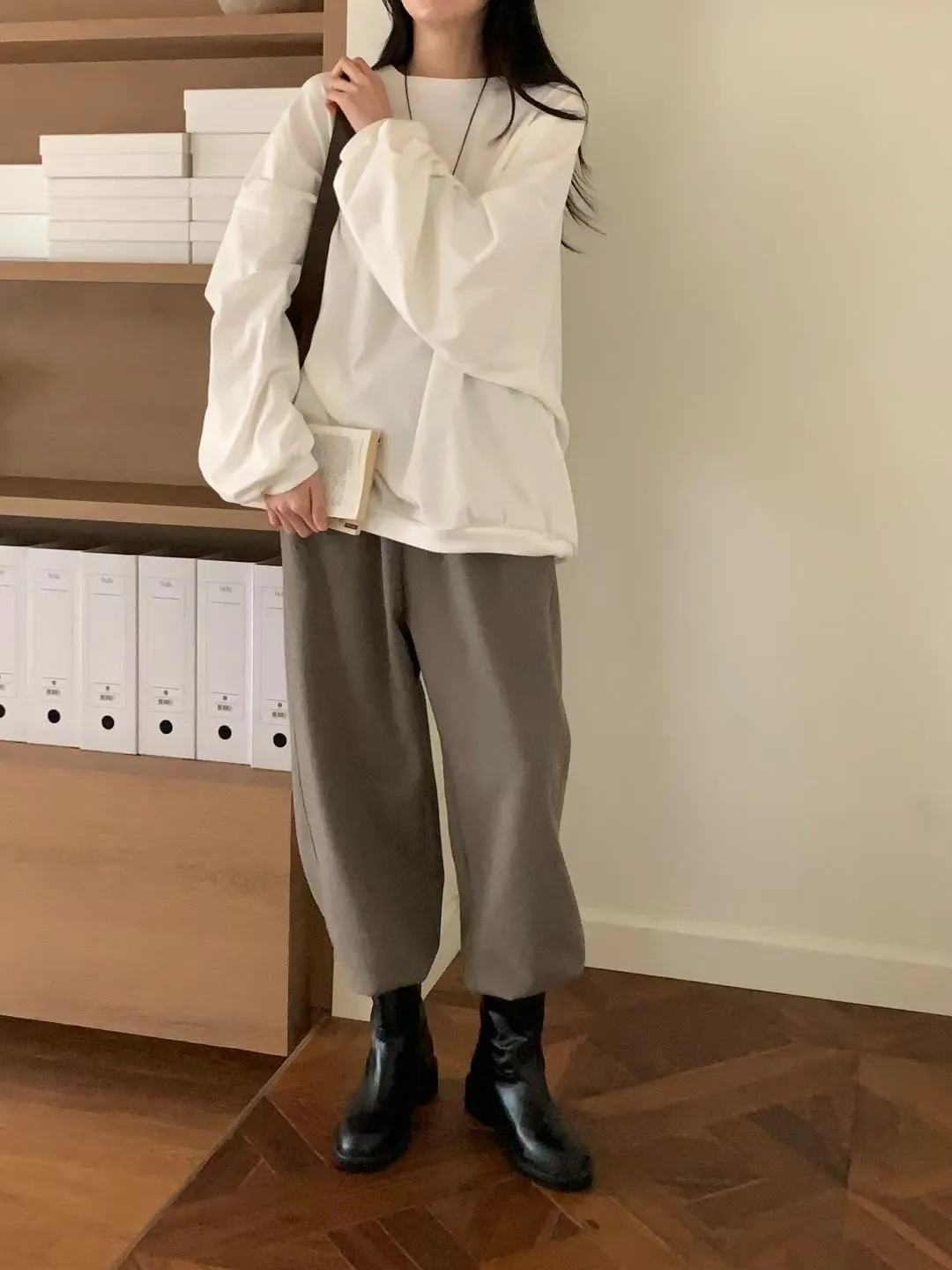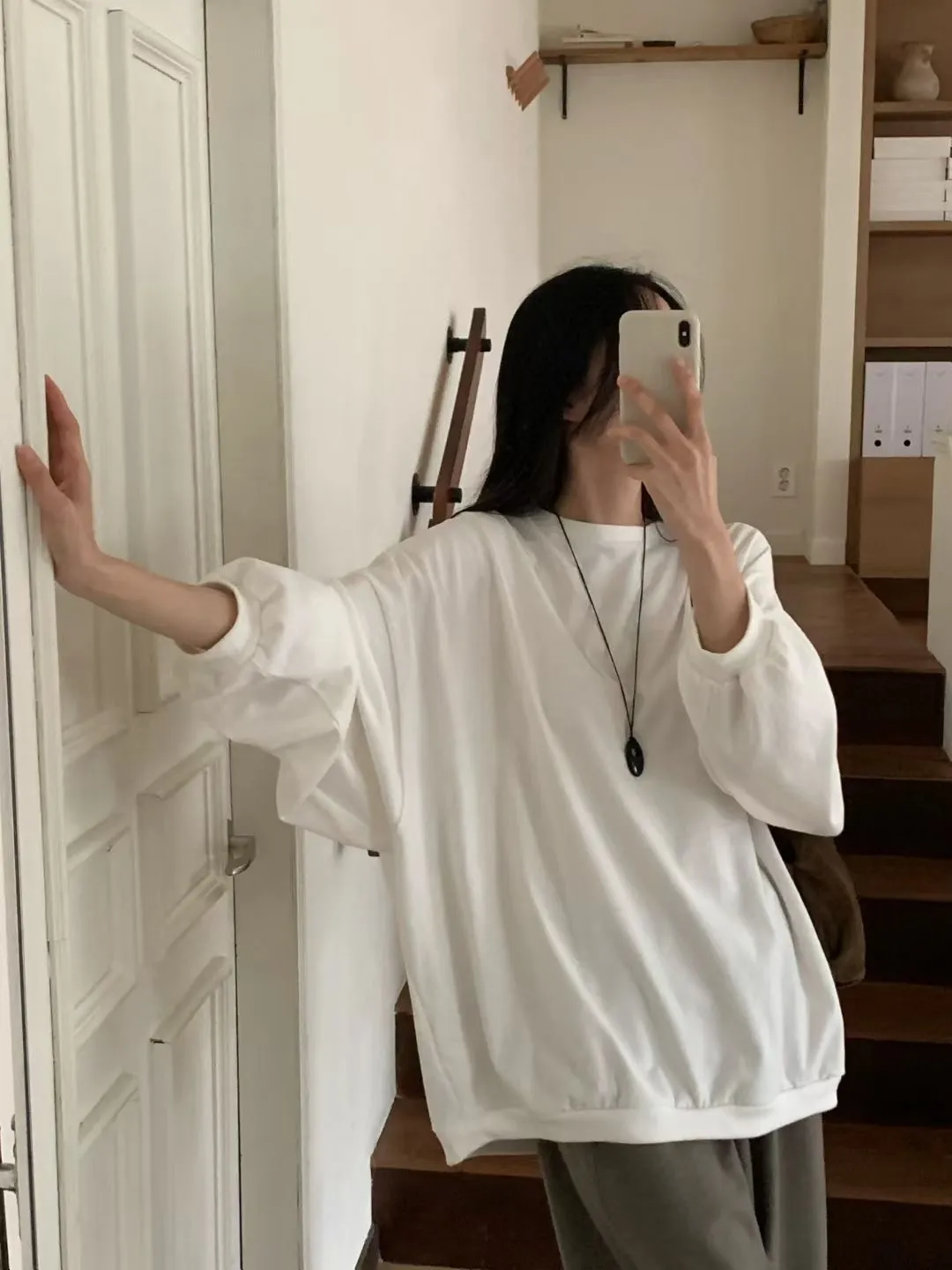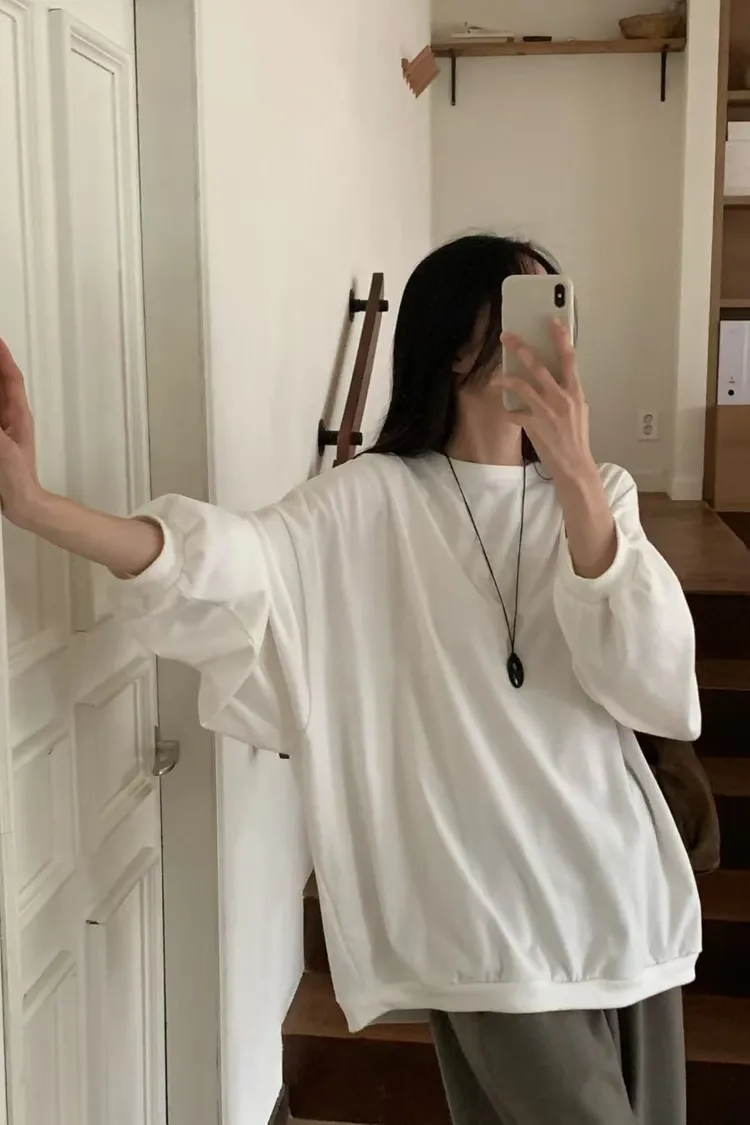 N80冬日氛圍感小抓皺長袖圓領微刷毛薄款大學T