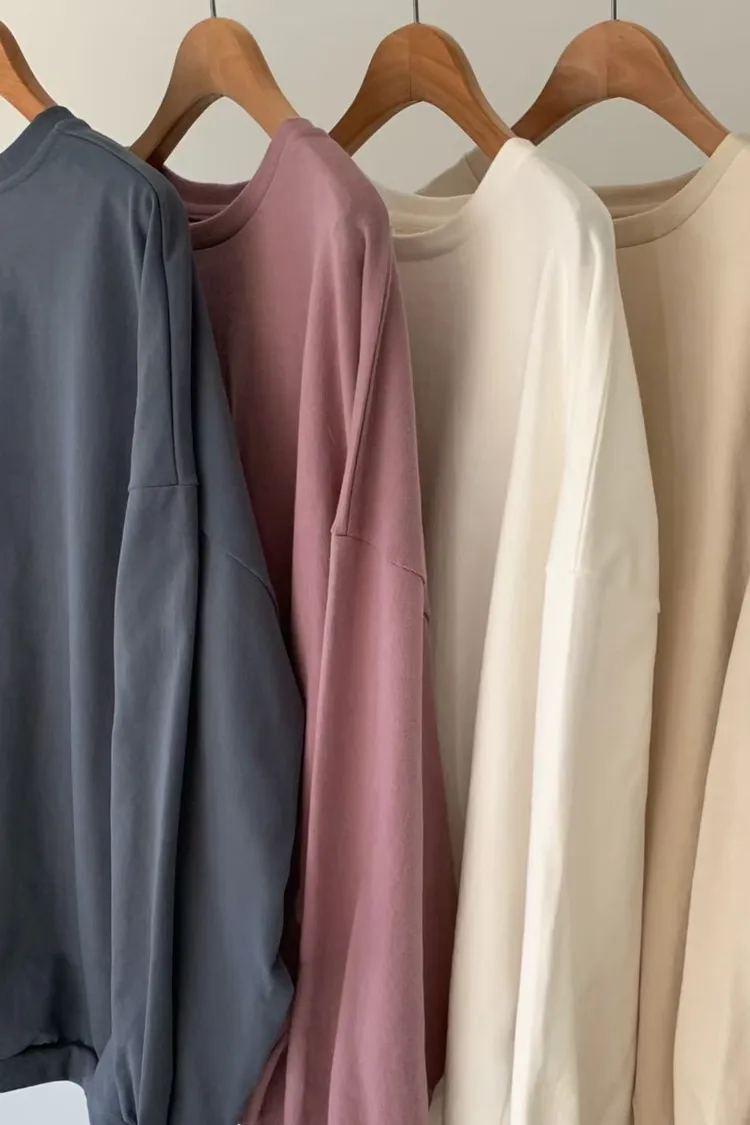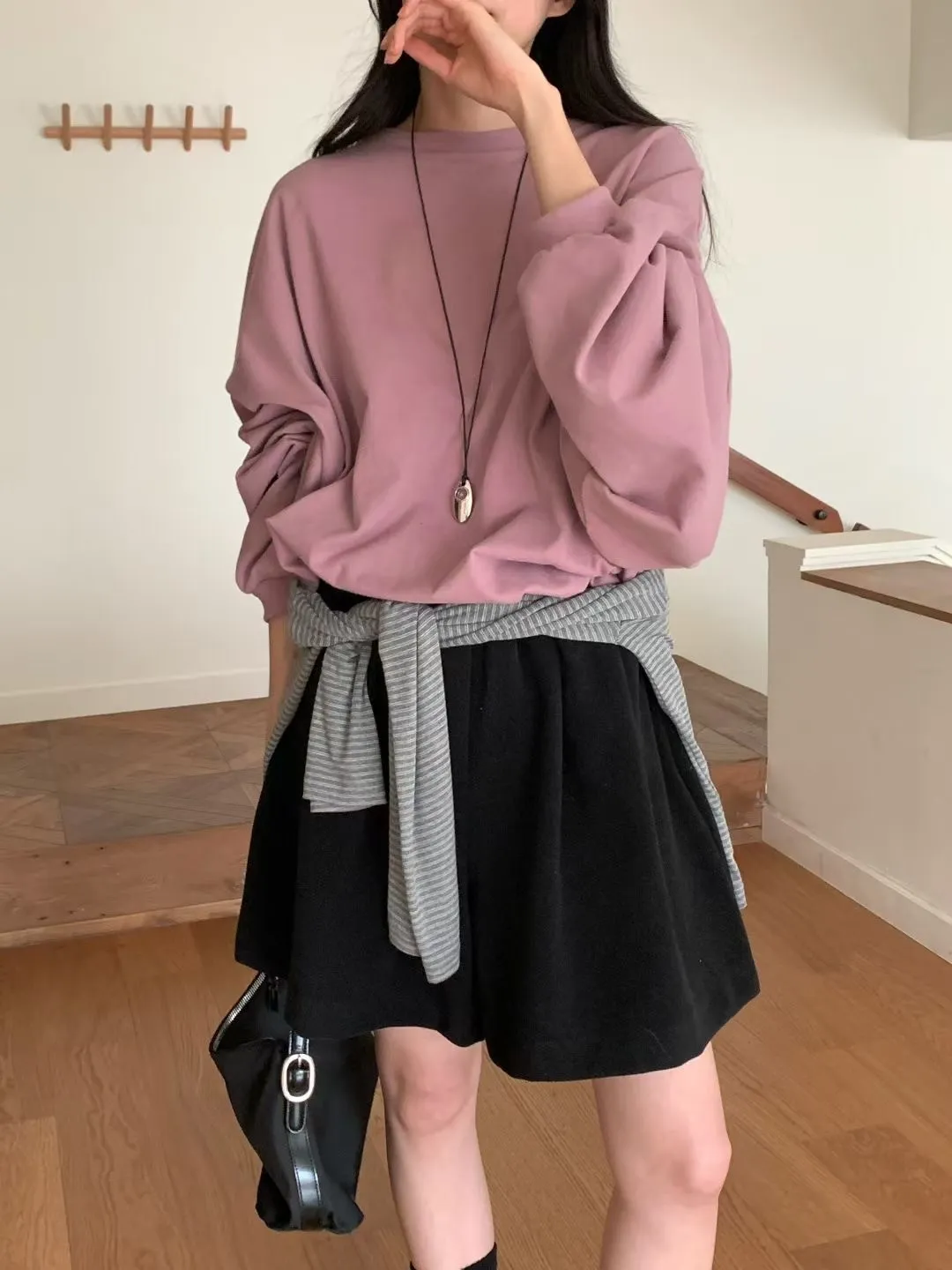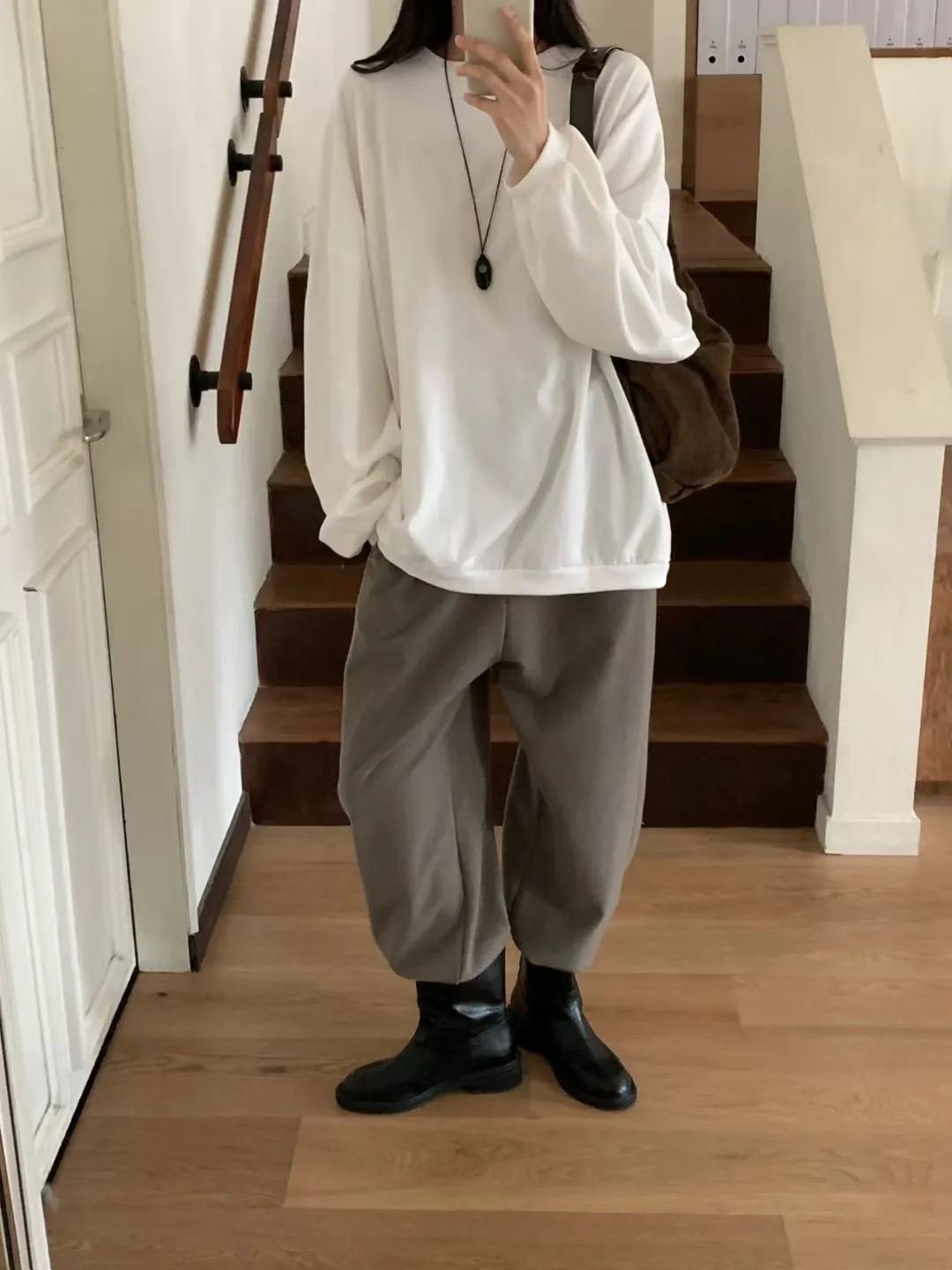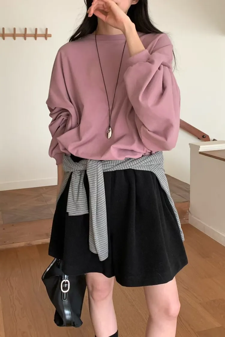 N80冬日氛圍感小抓皺長袖圓領微刷毛薄款大學T