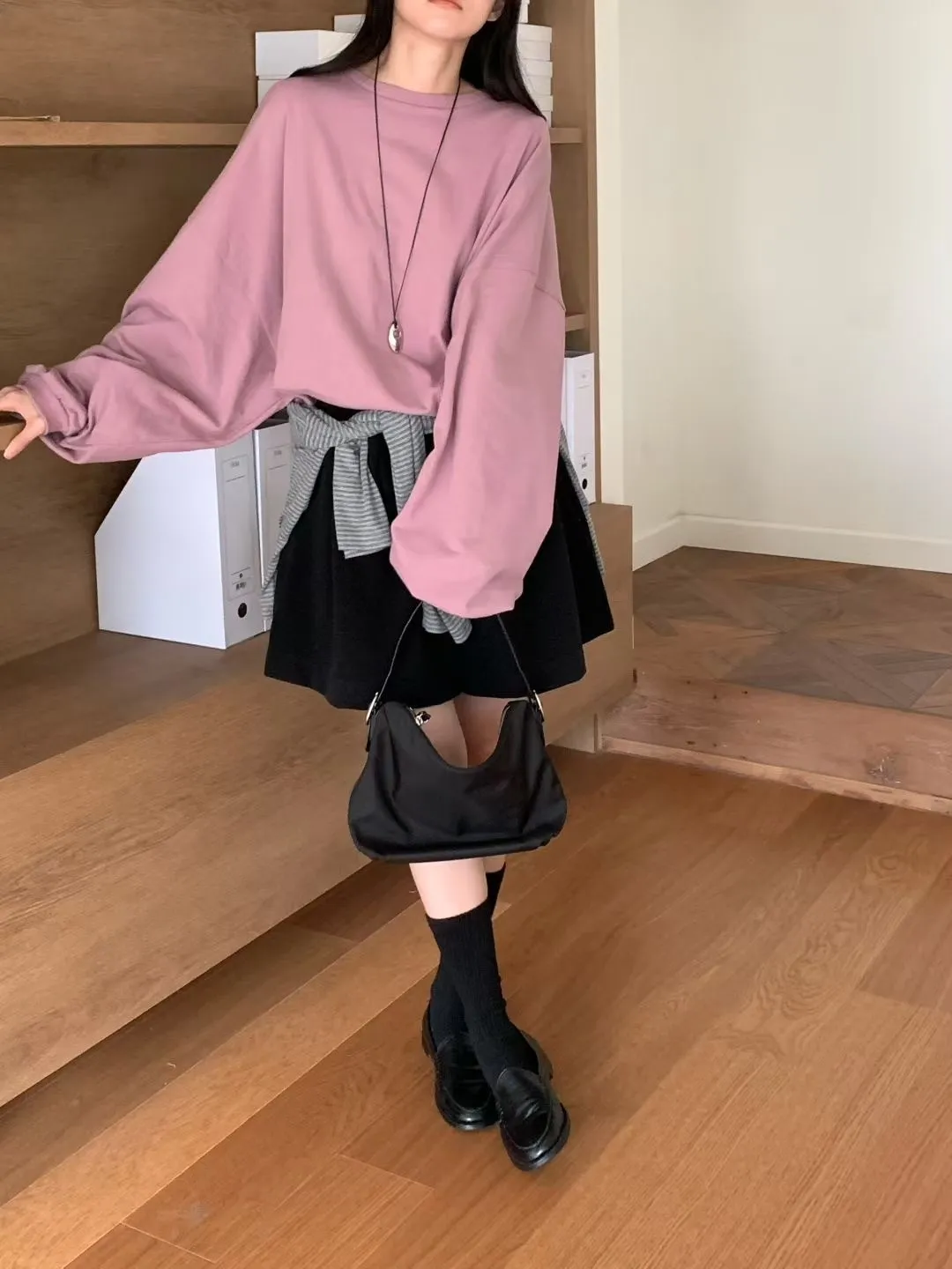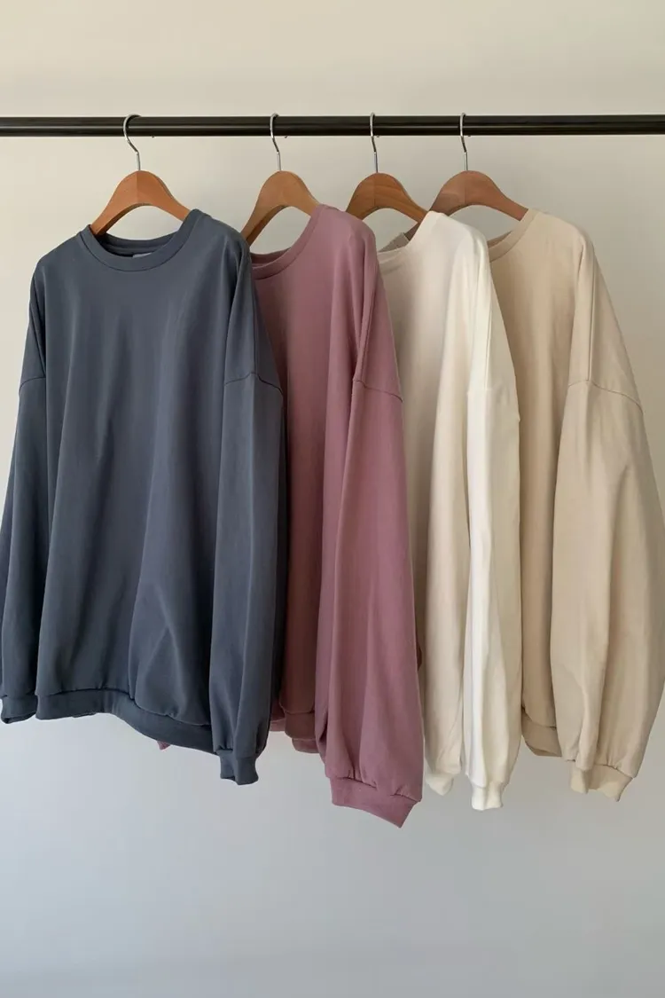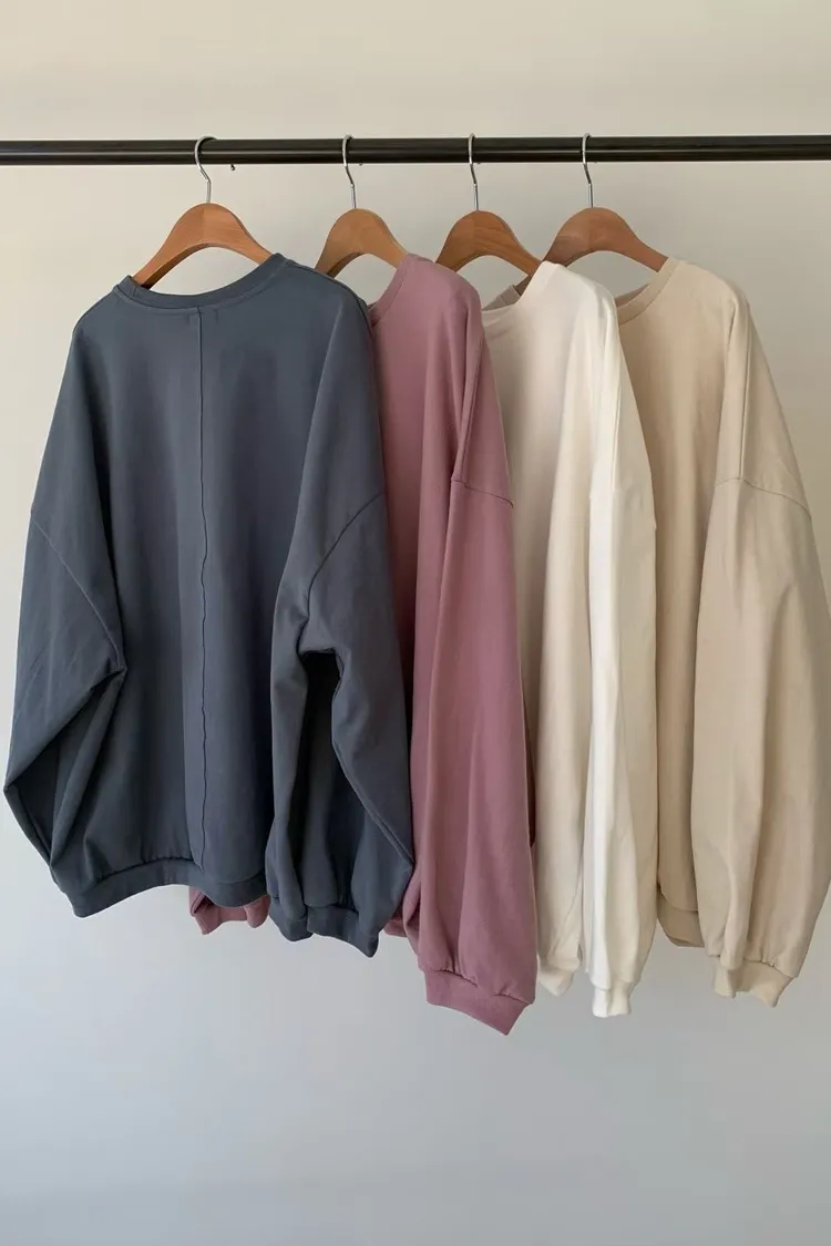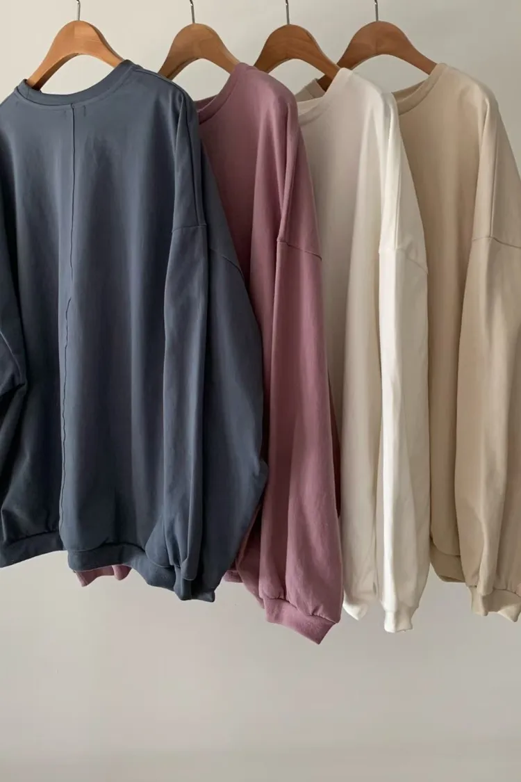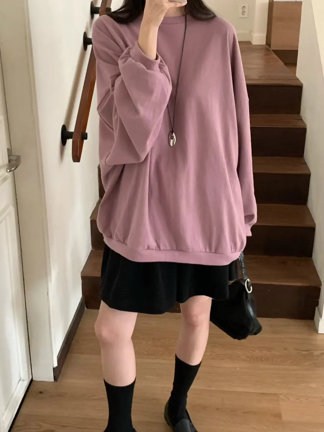N80冬日氛圍感小抓皺長袖圓領微刷毛薄款大學T