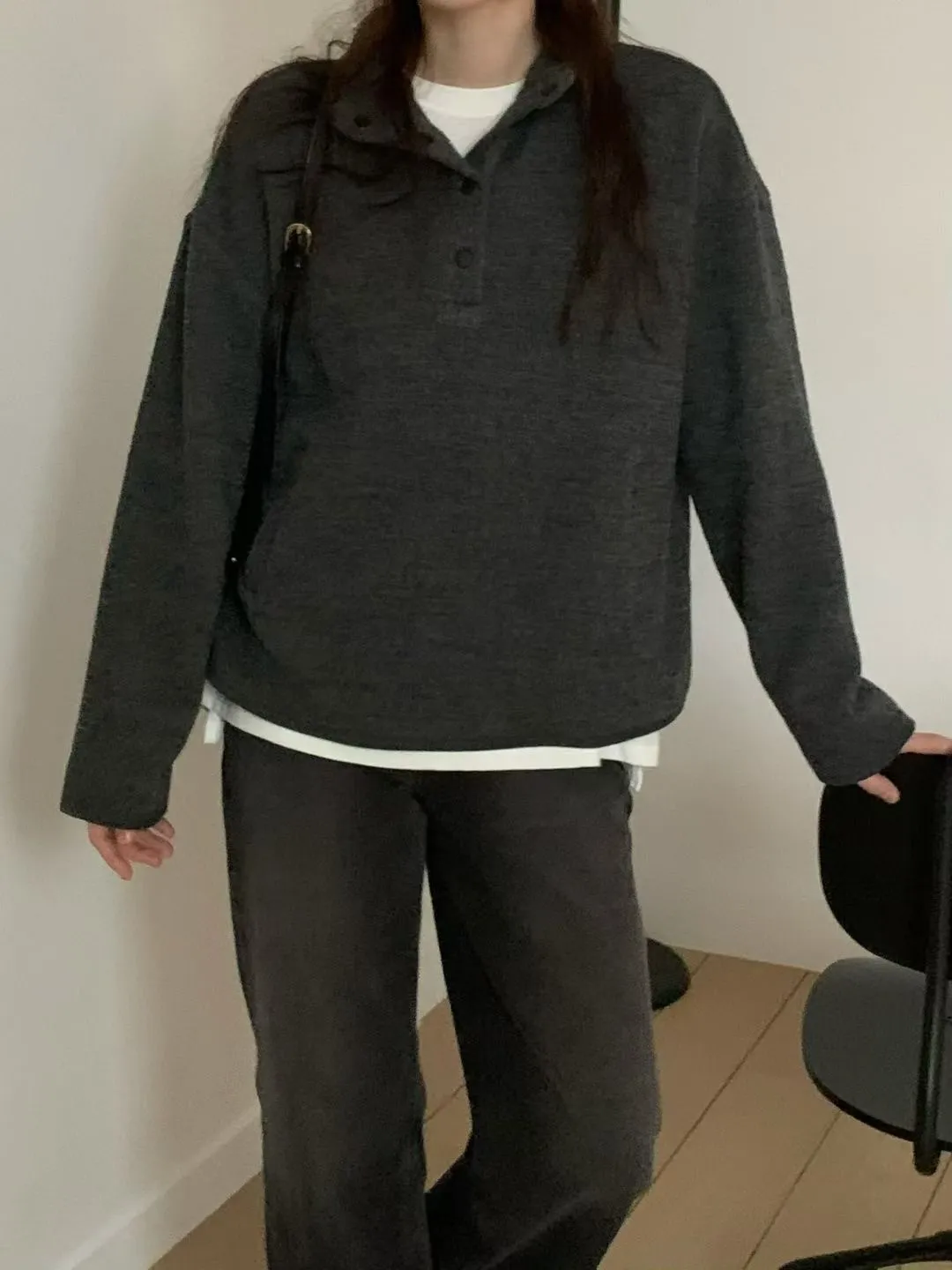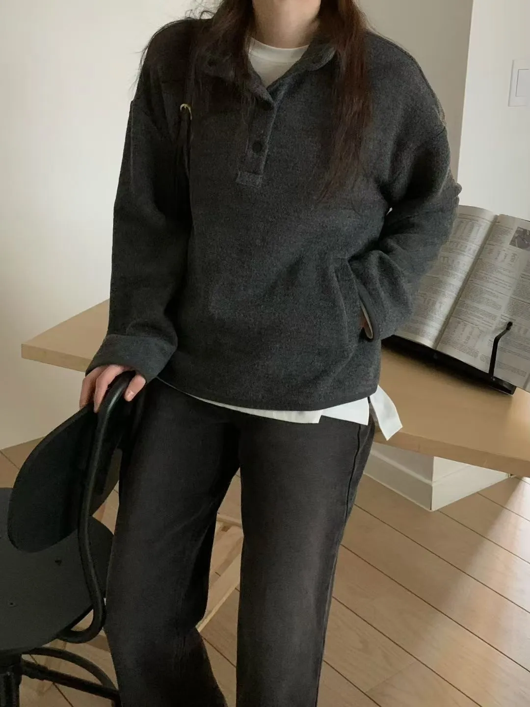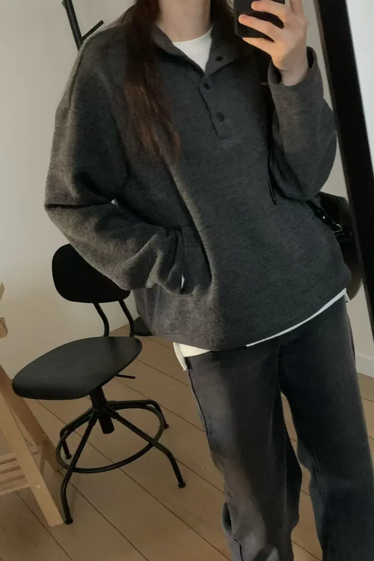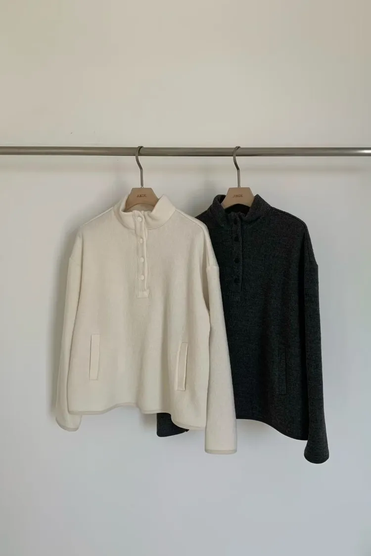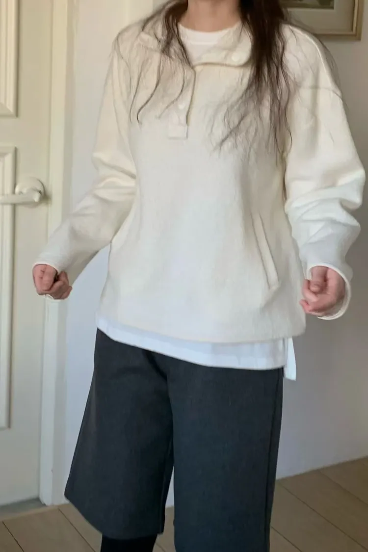 D06可愛圓釦小立領設計75%羊毛溫暖大學T上衣
