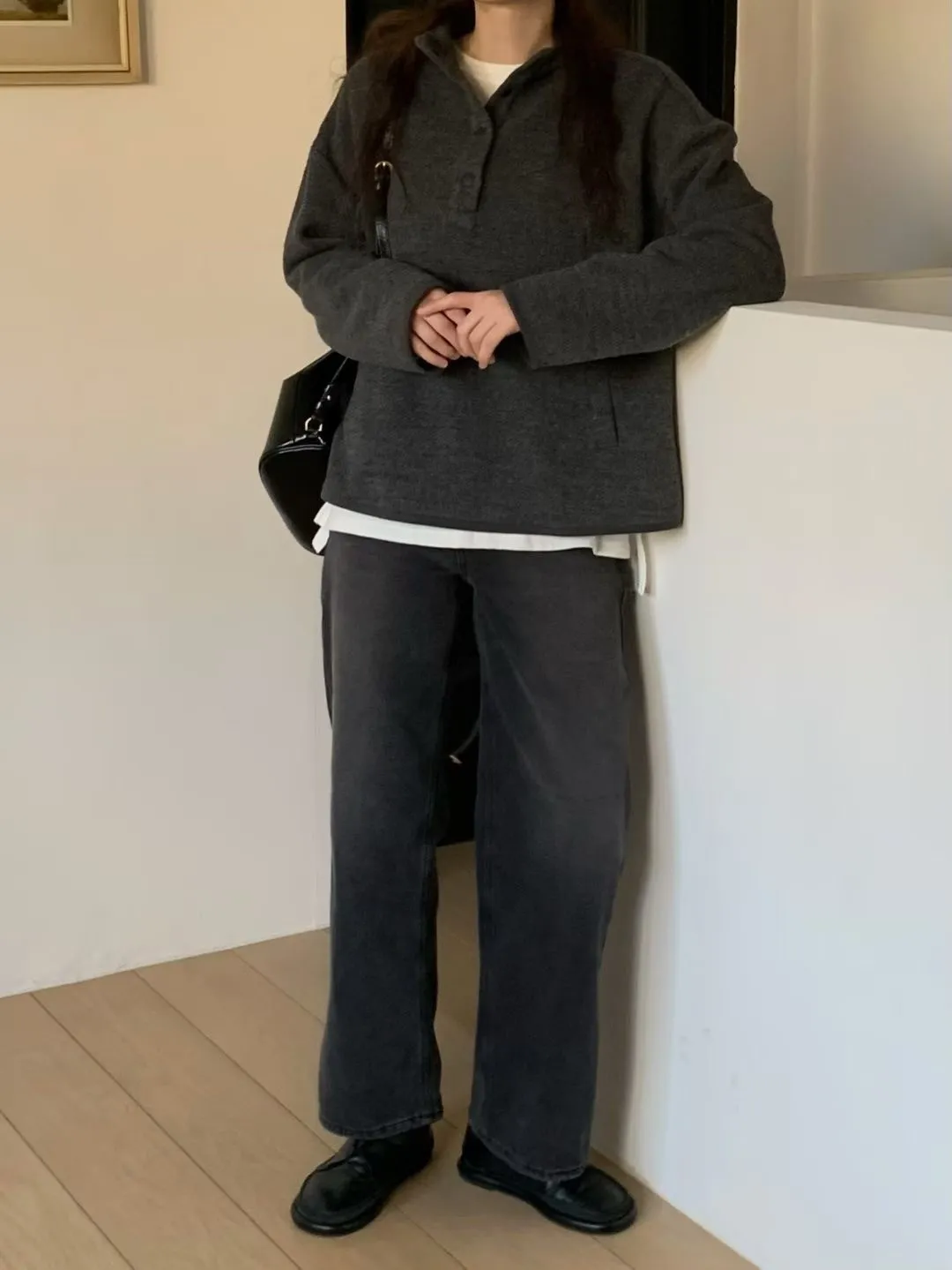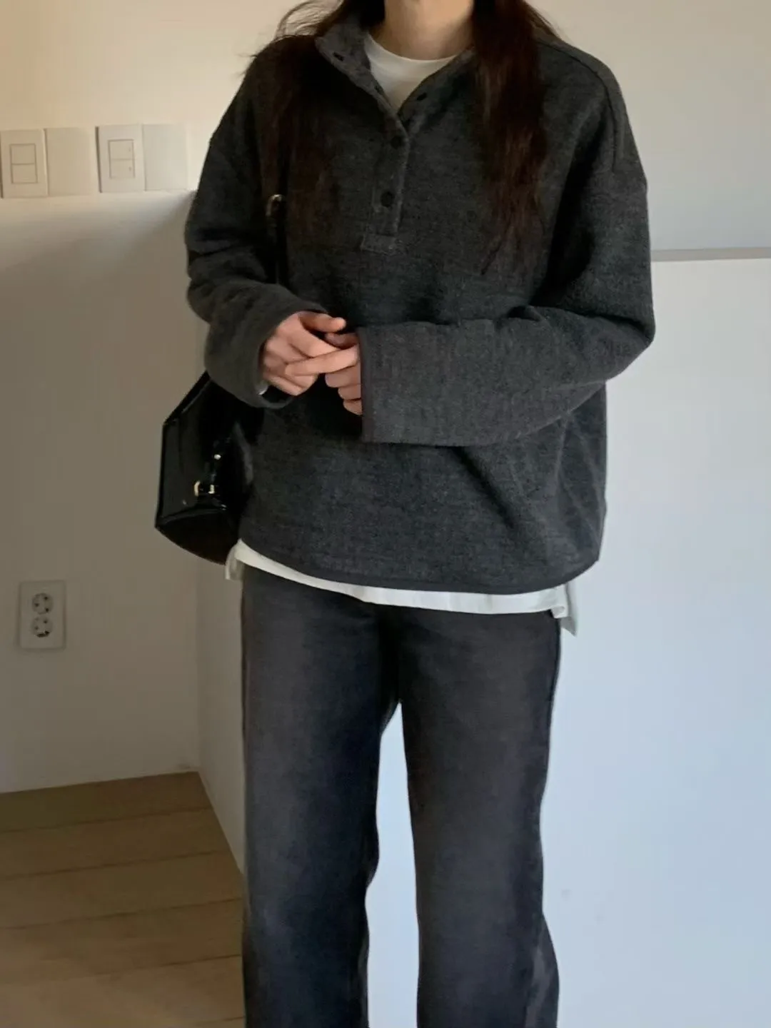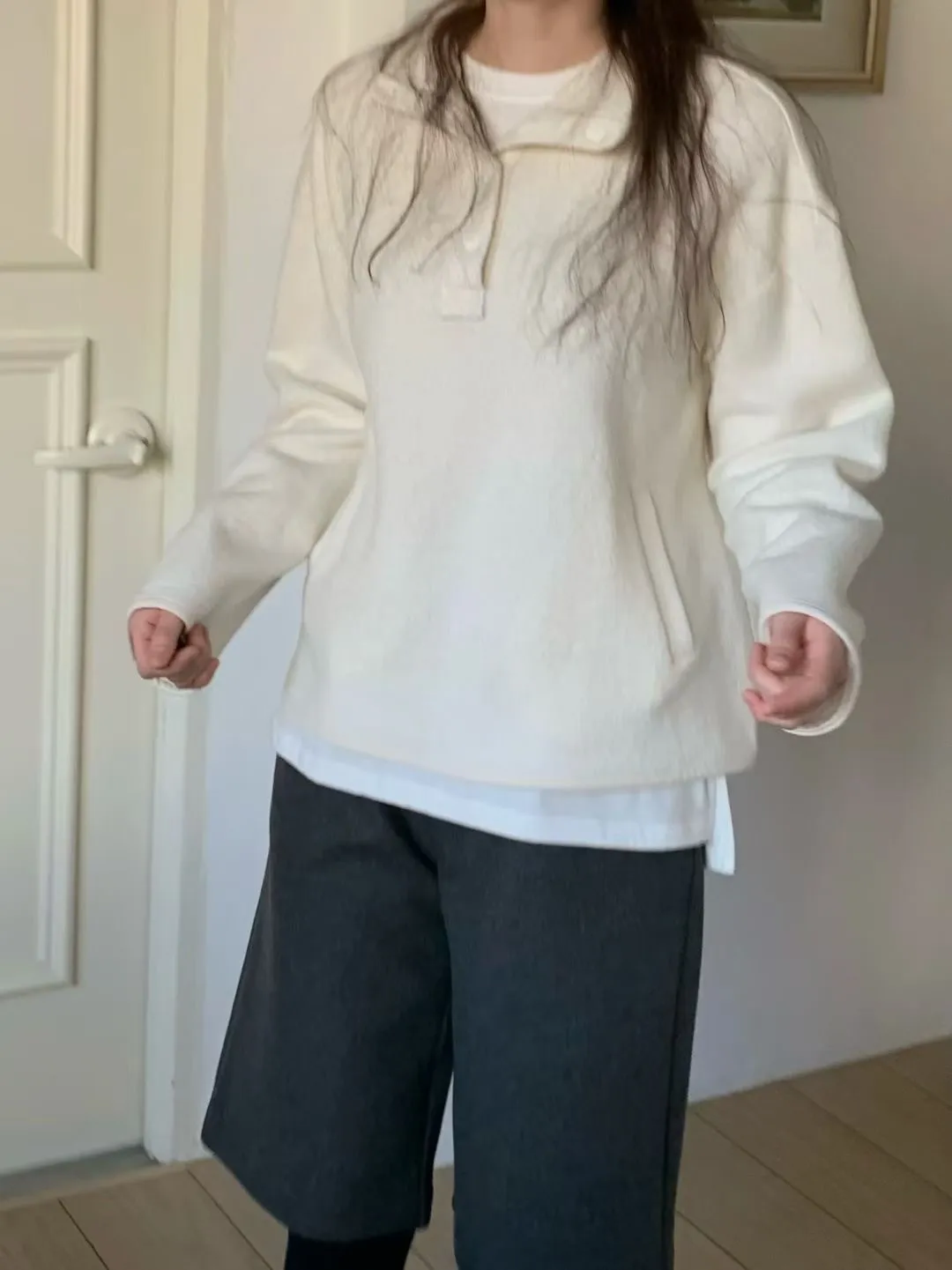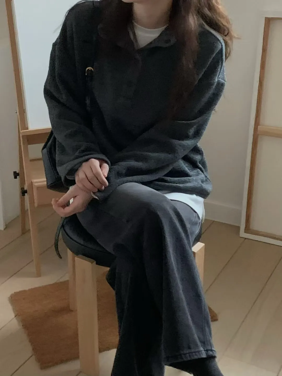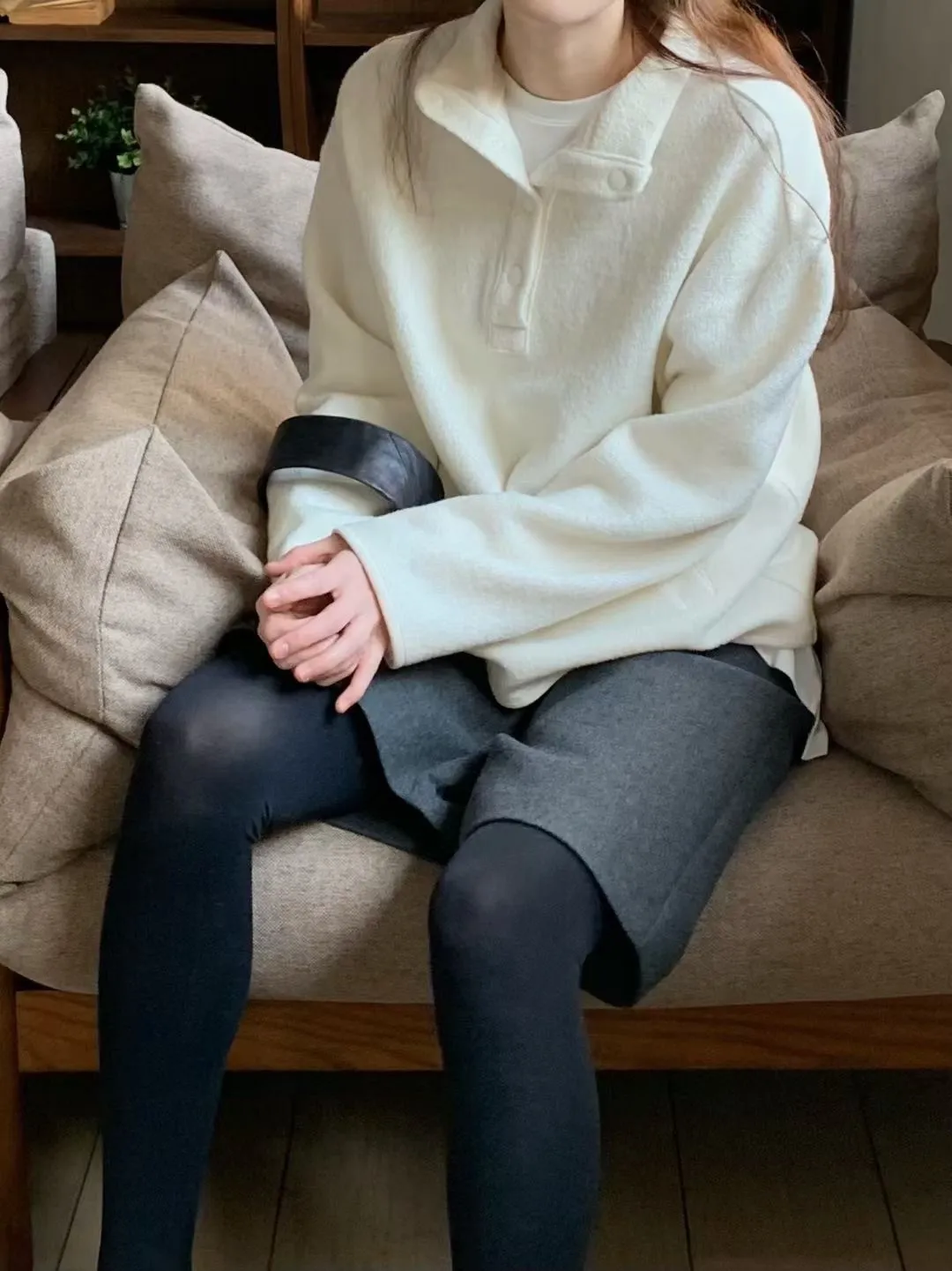 D06可愛圓釦小立領設計75%羊毛溫暖大學T上衣