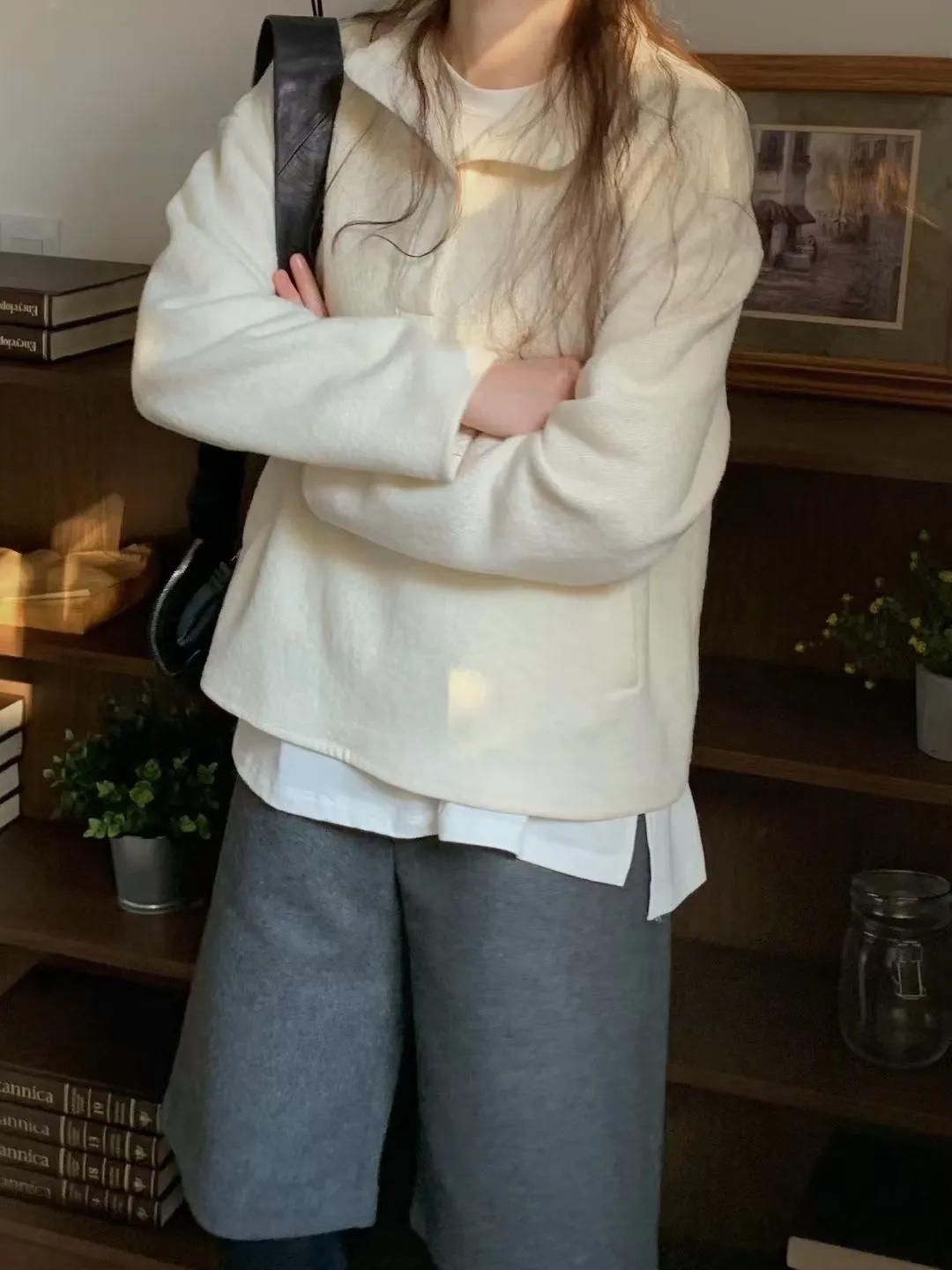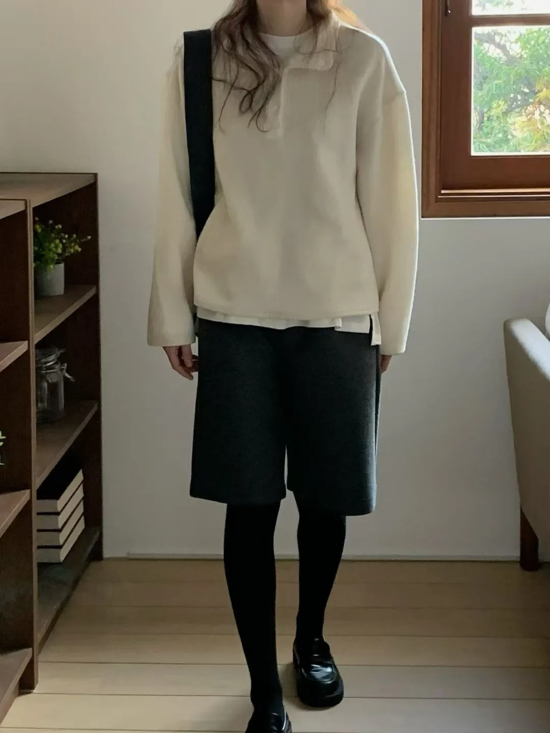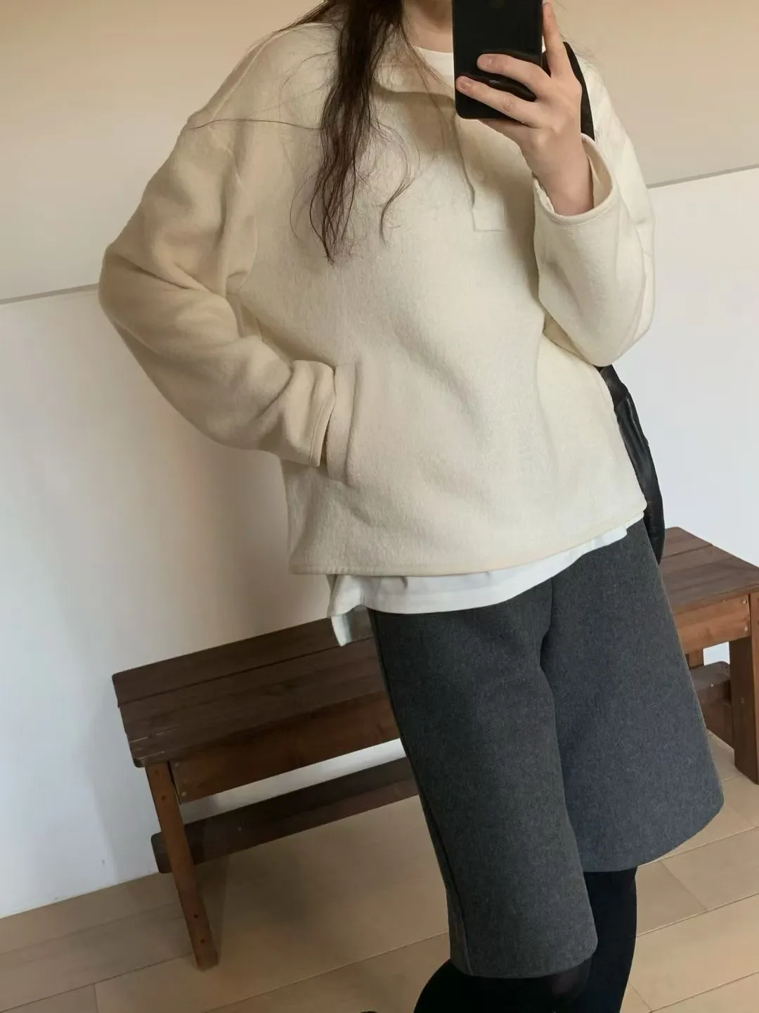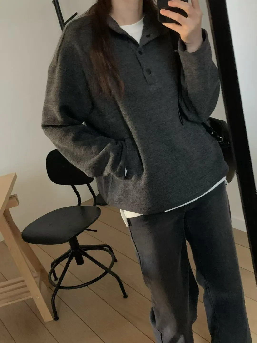 D06可愛圓釦小立領設計75%羊毛溫暖大學T上衣